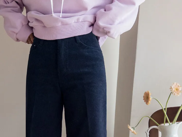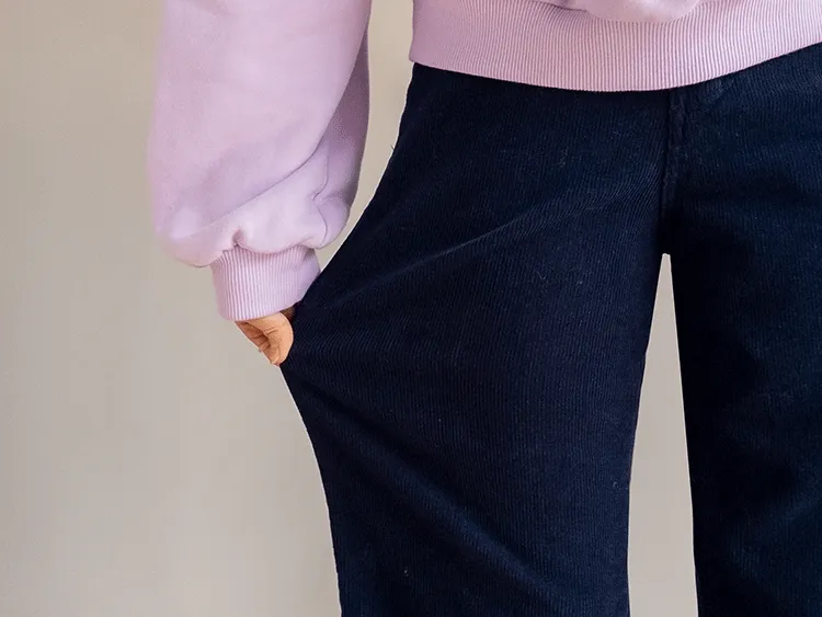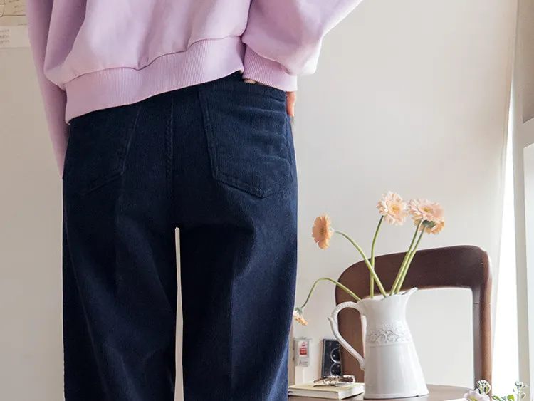冬季舒適保暖修身直筒燈芯絨休閒褲