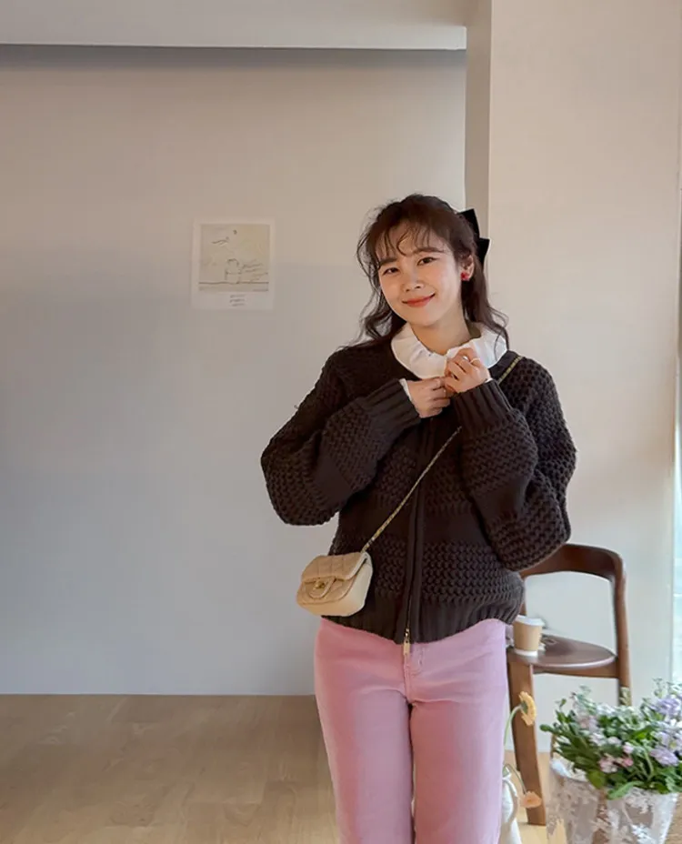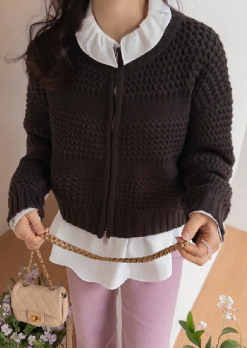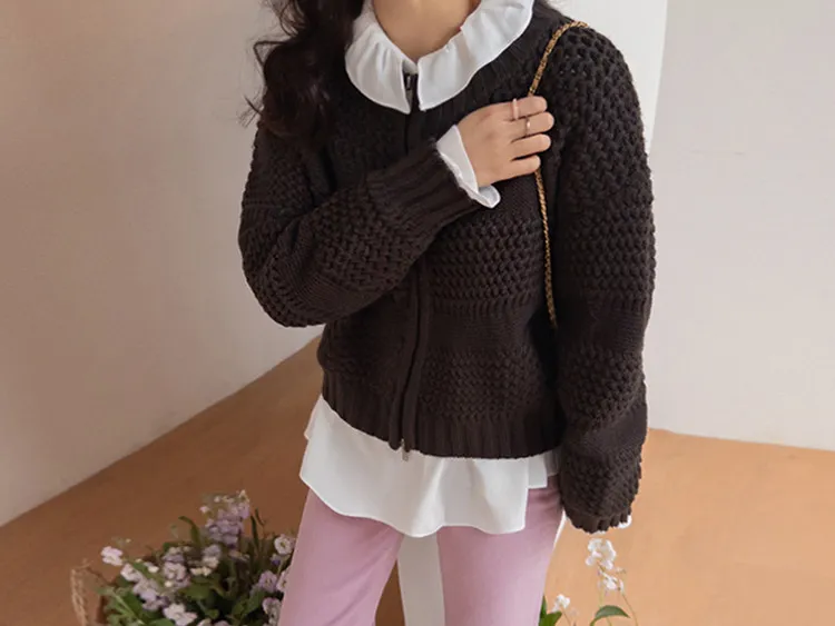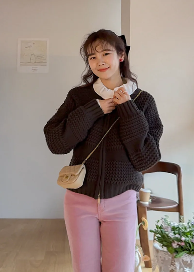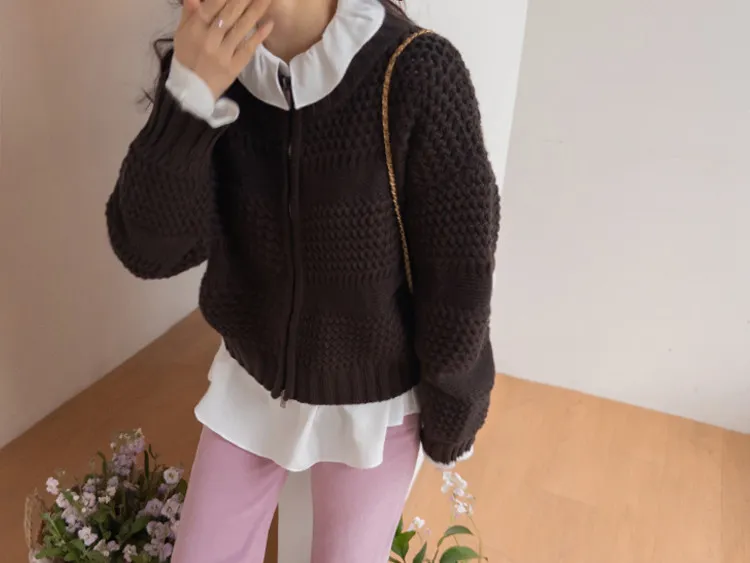 獨特冬日氛圍雙向拉鍊針織開衫