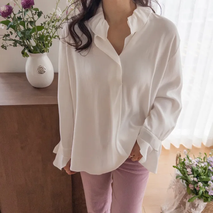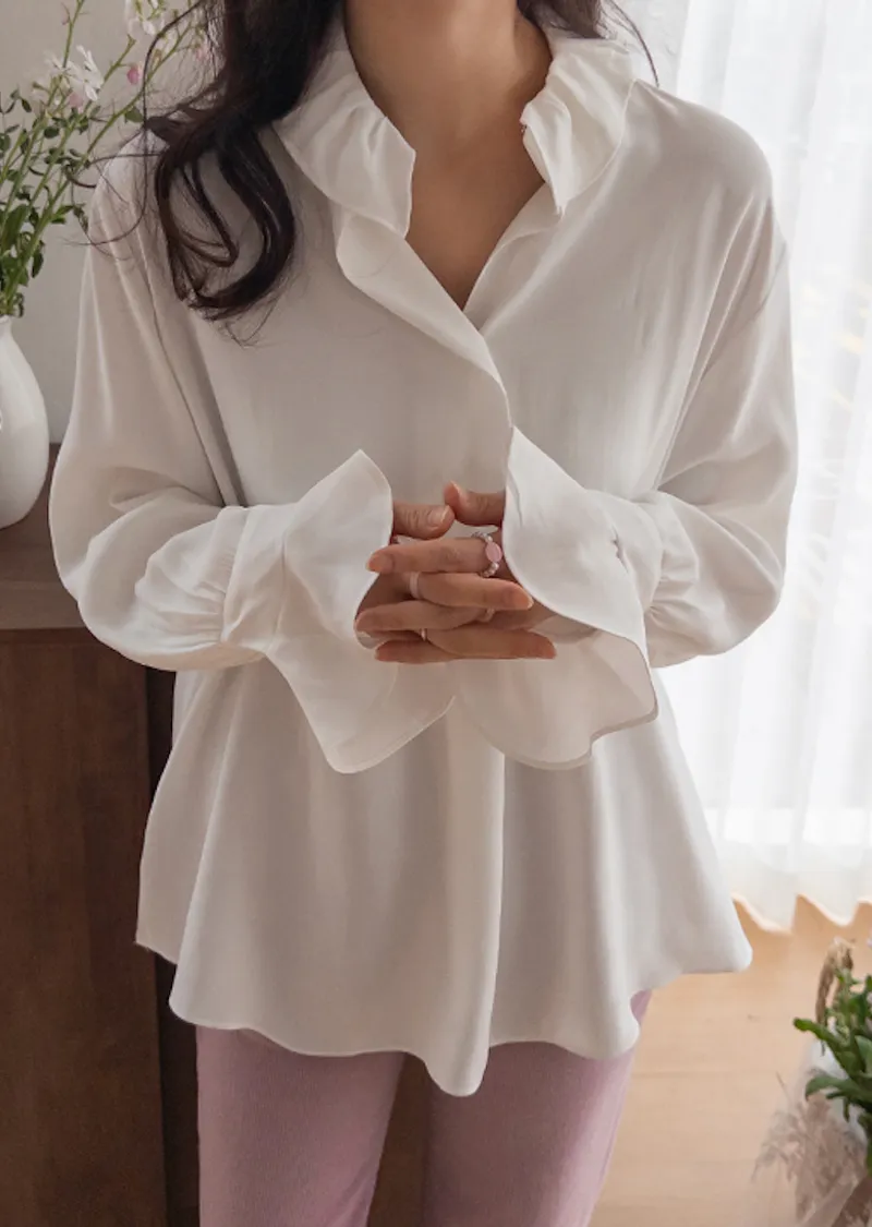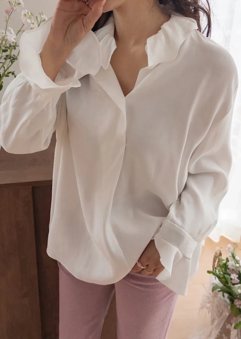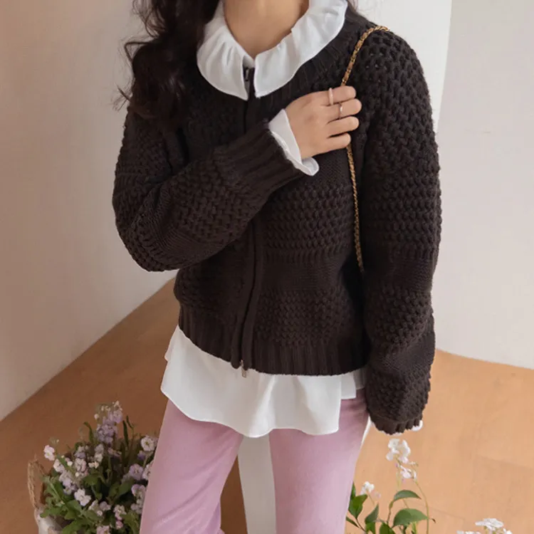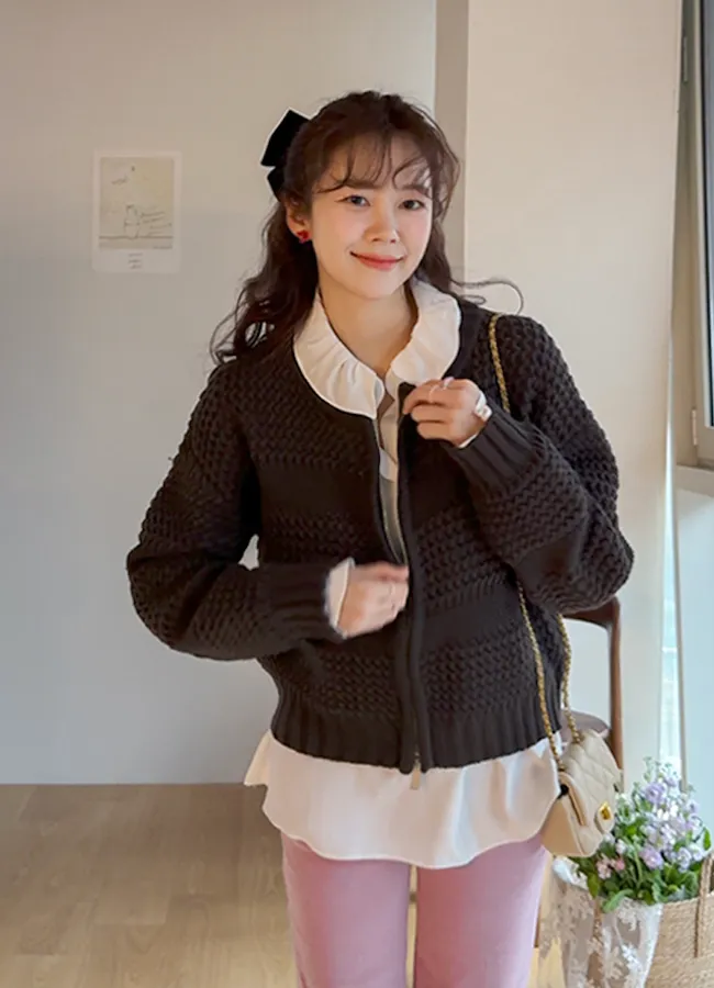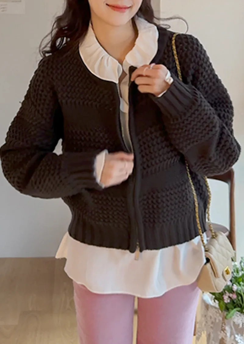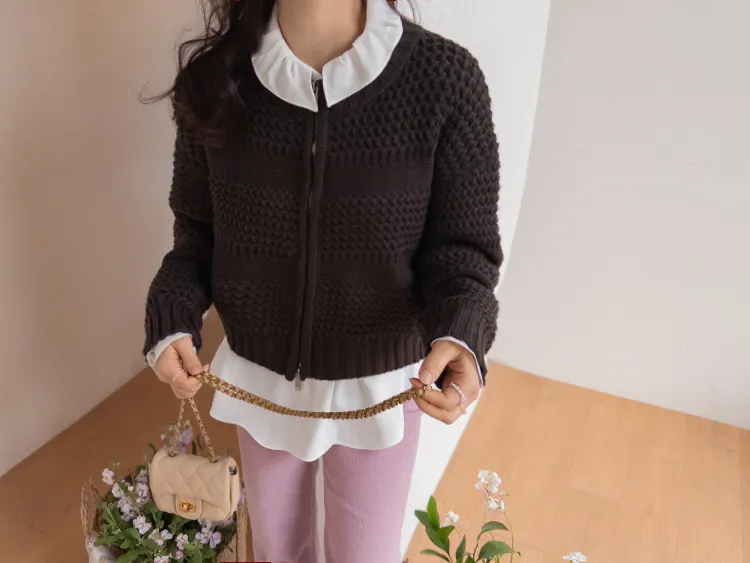 【充滿甜美氣息的荷葉邊領口♥】【寬鬆版型,修飾纖細身材! 】【結實布料,穿著舒適】【穿搭針織衫,更顯時尚造型】
