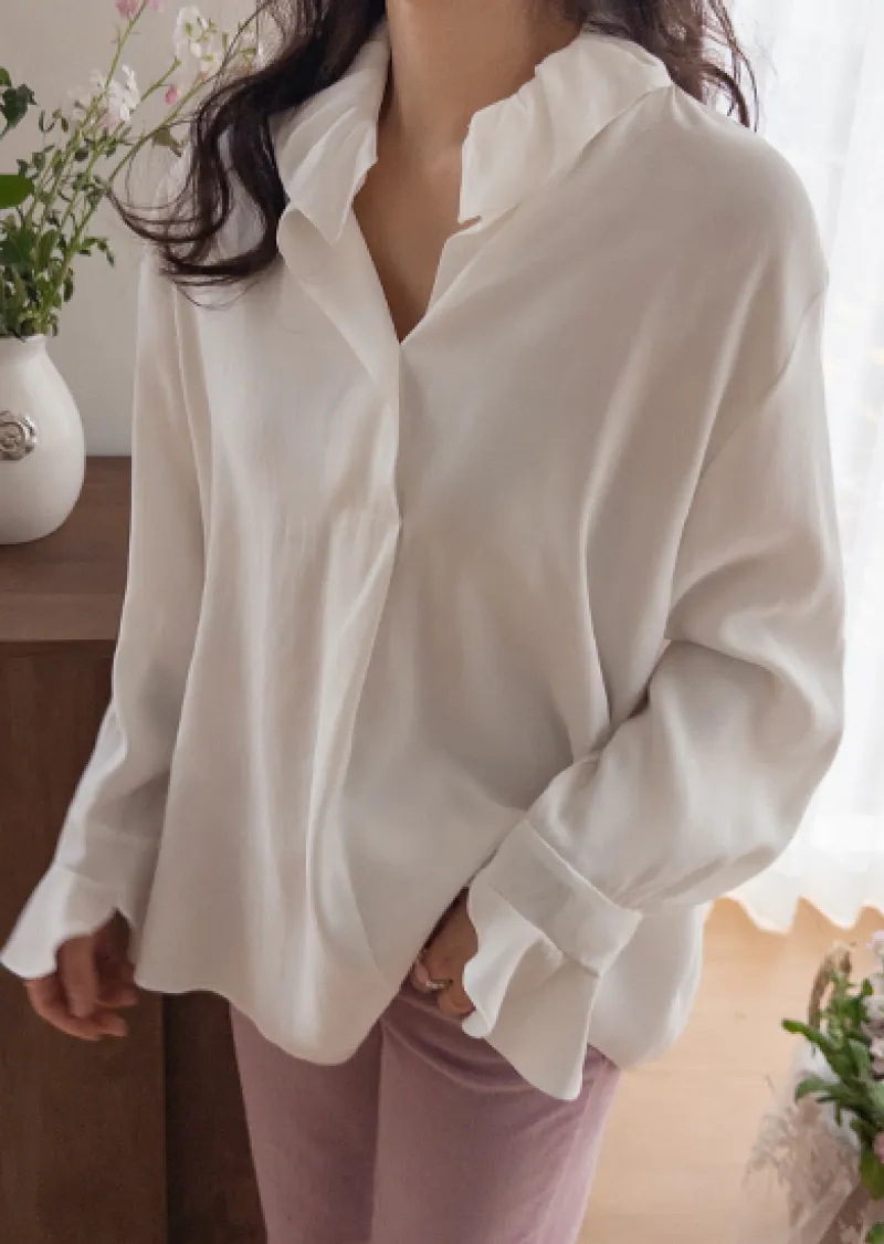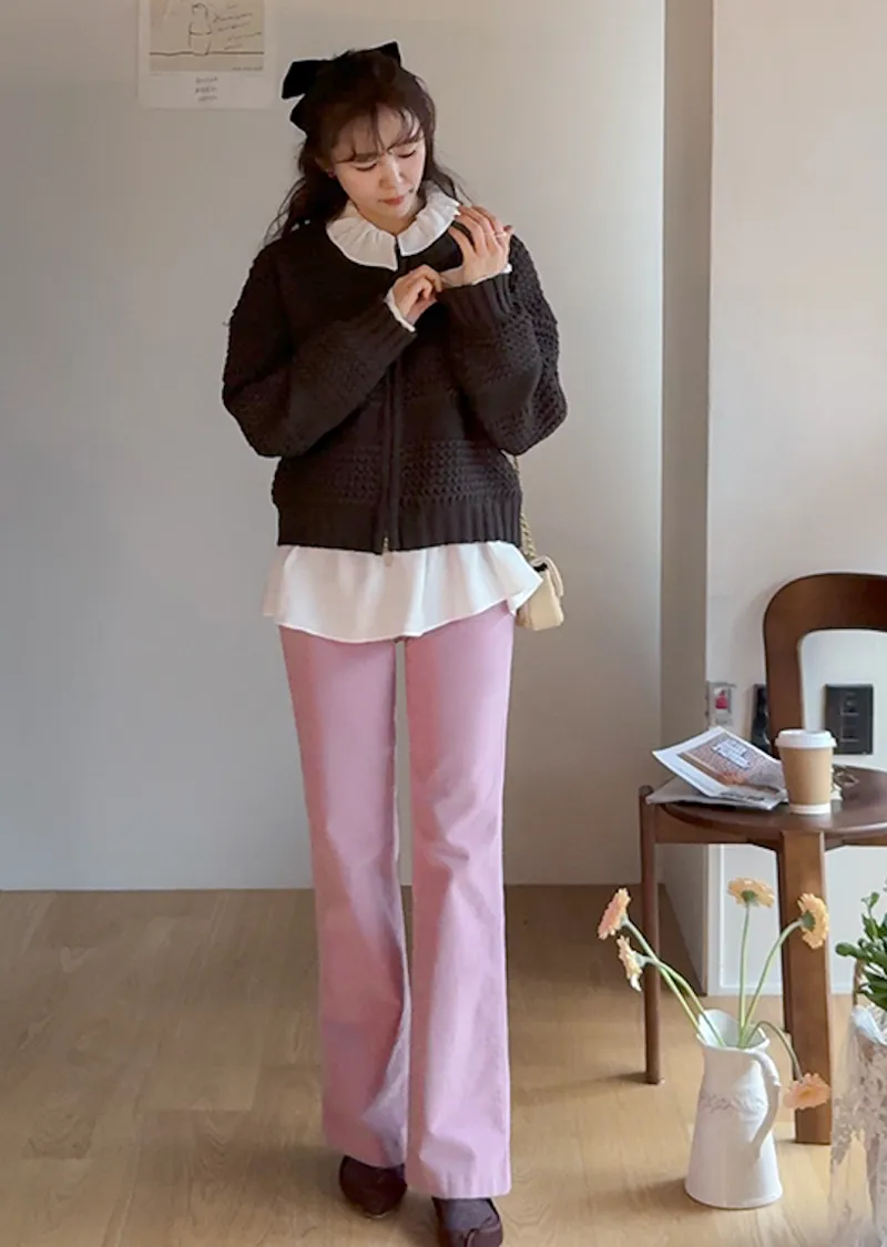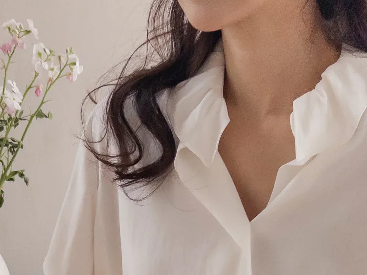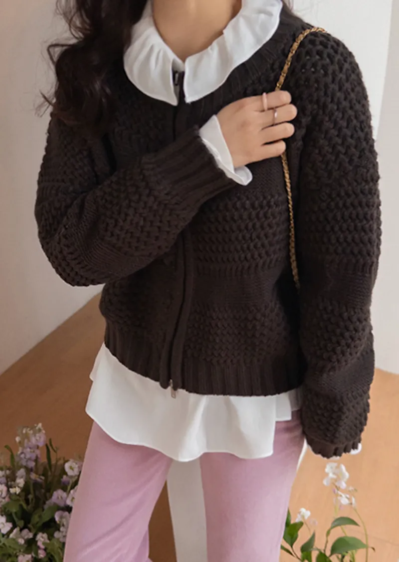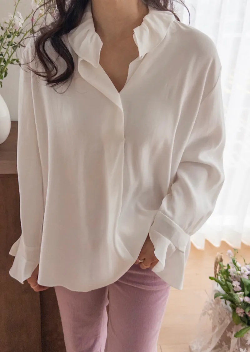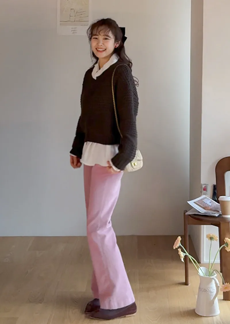 【充滿甜美氣息的荷葉邊領口♥】【寬鬆版型,修飾纖細身材! 】【結實布料,穿著舒適】【穿搭針織衫,更顯時尚造型】