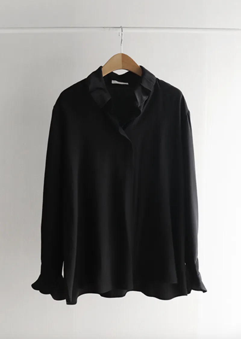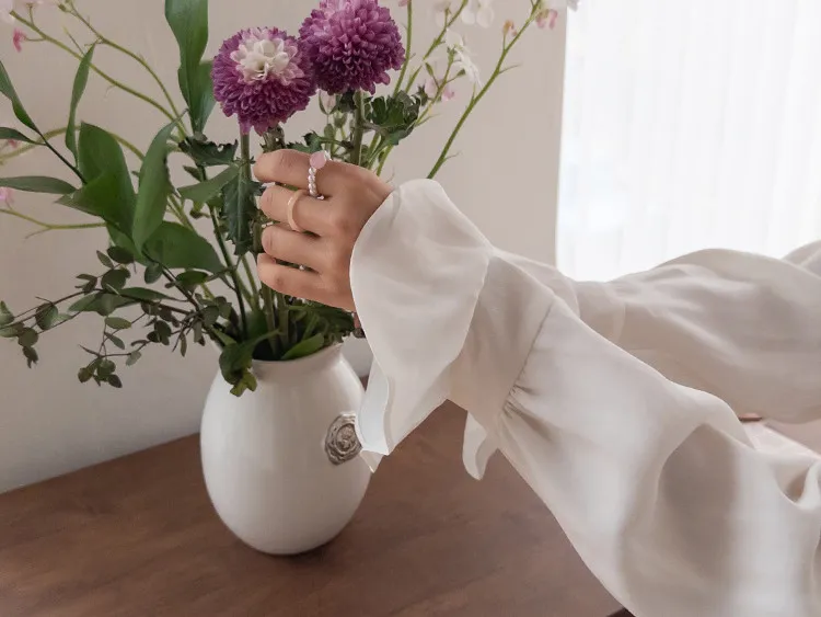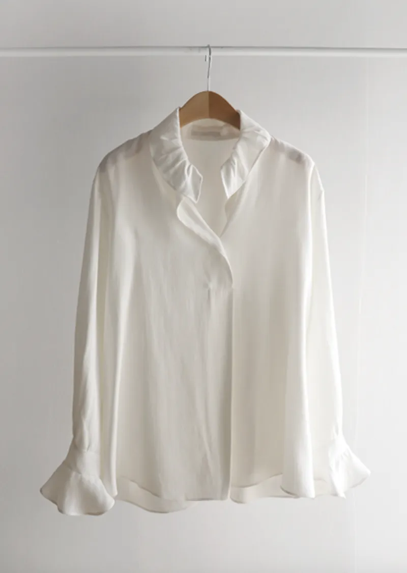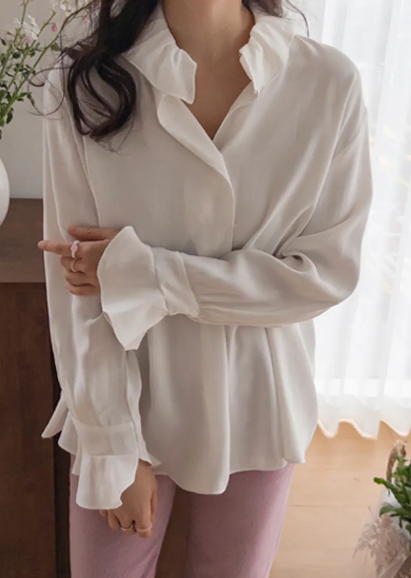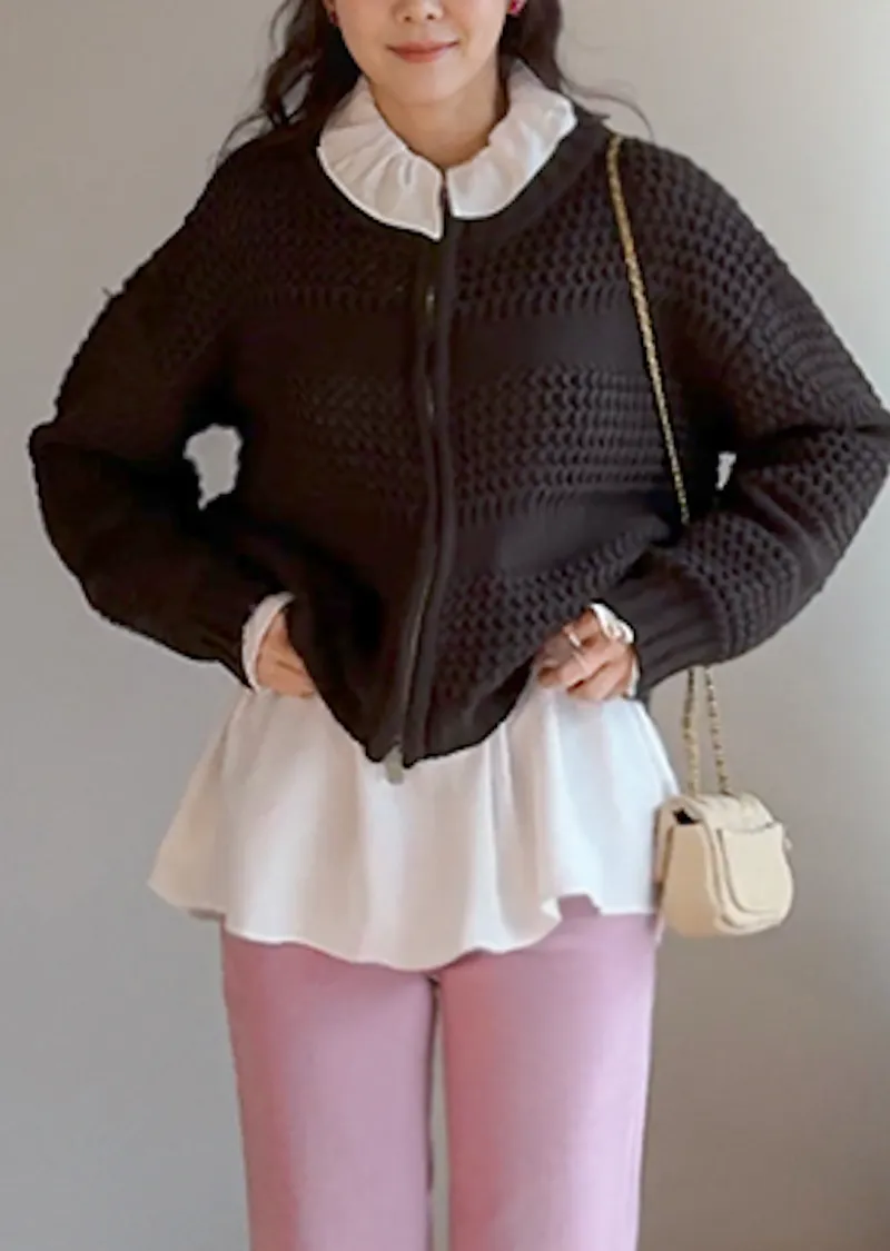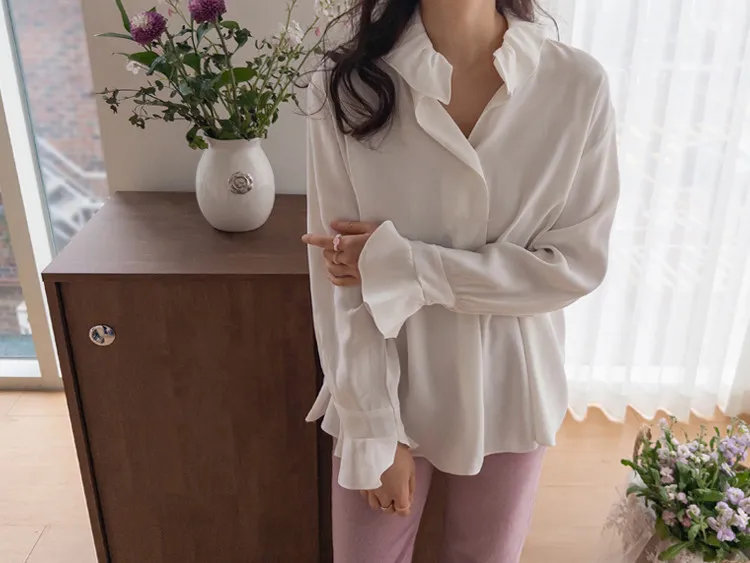 【充滿甜美氣息的荷葉邊領口♥】【寬鬆版型,修飾纖細身材! 】【結實布料,穿著舒適】【穿搭針織衫,更顯時尚造型】