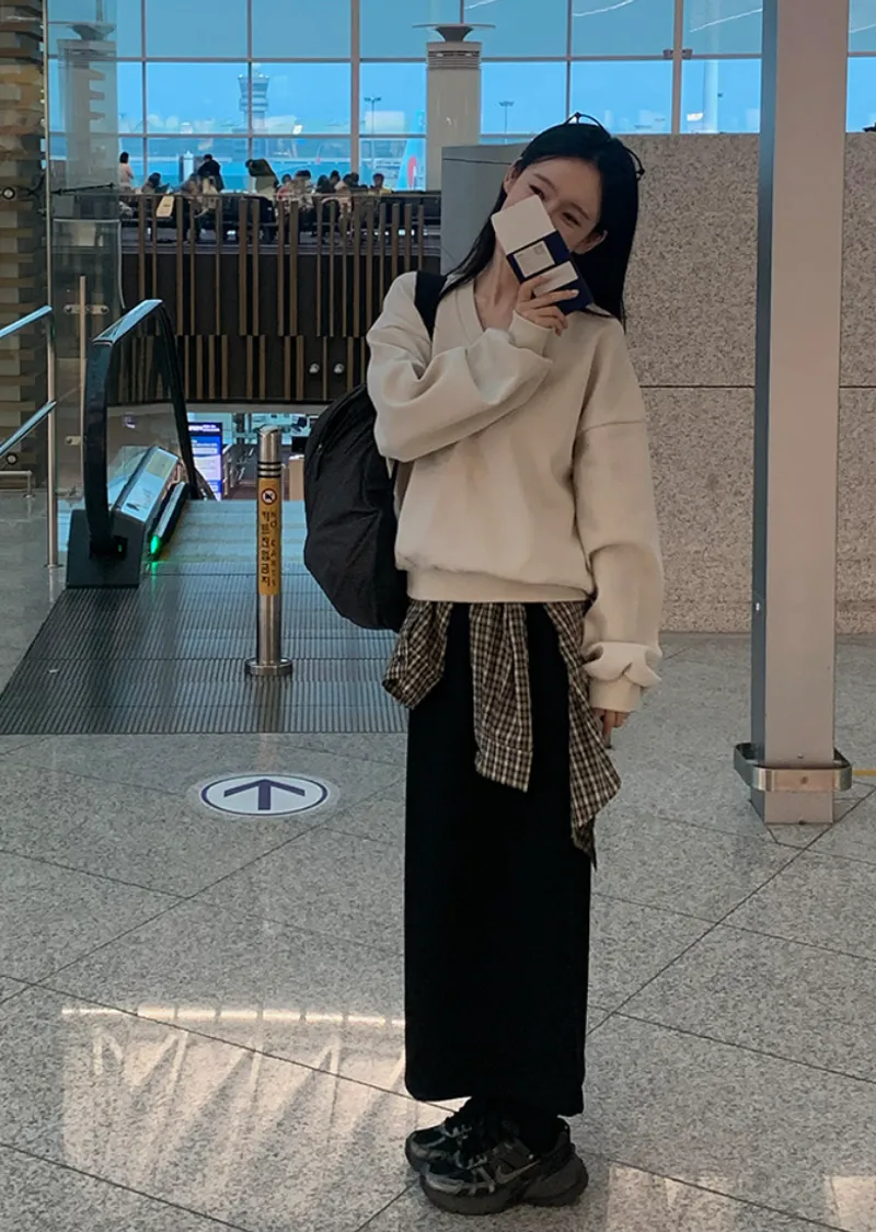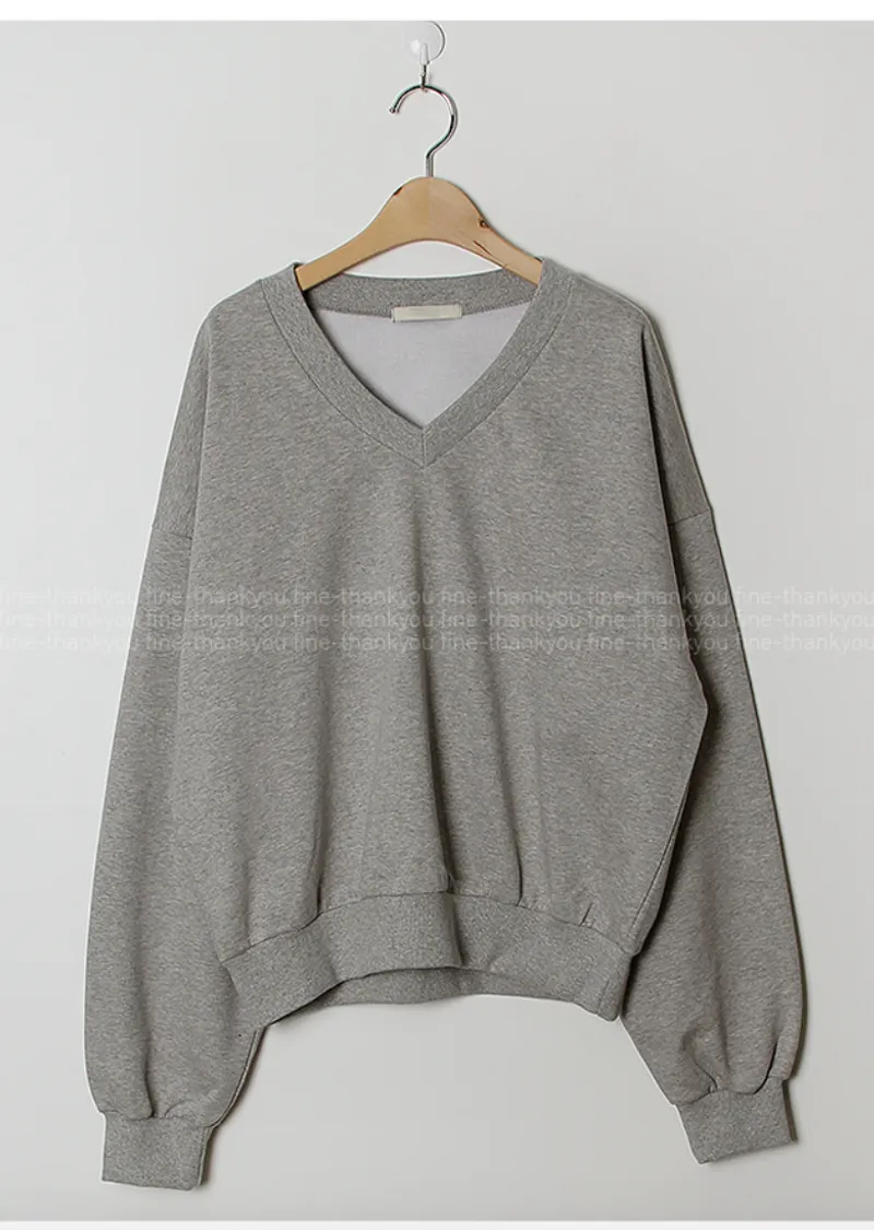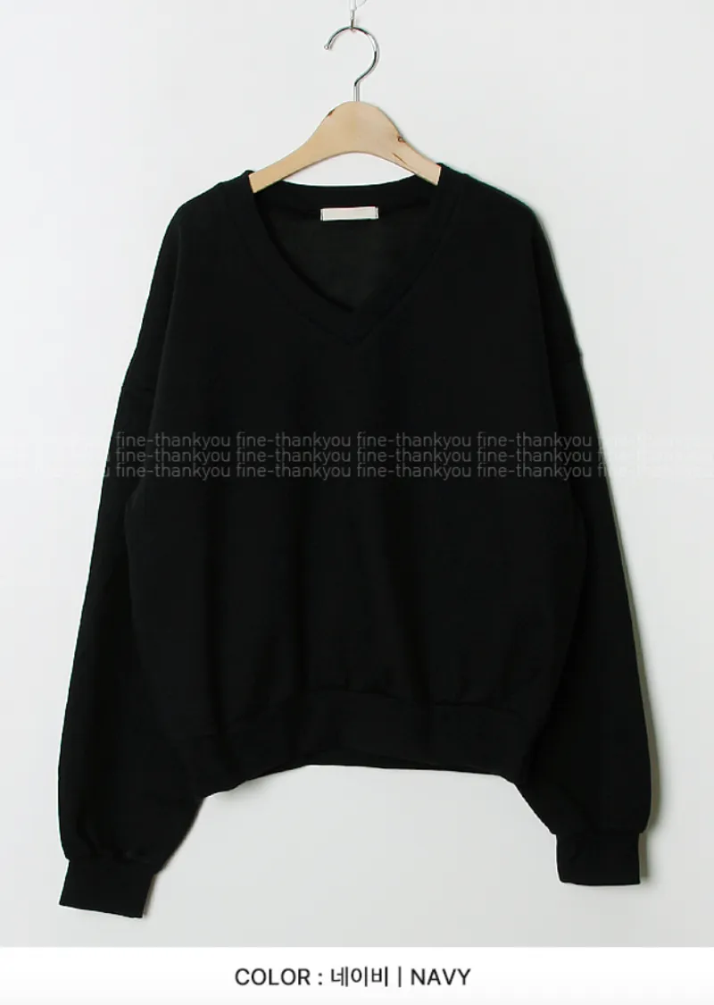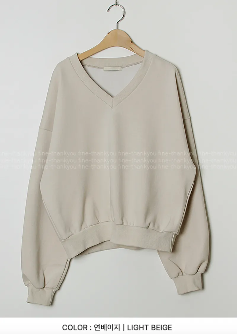 時尚氣息寬鬆版型半短款V領穿搭上衣