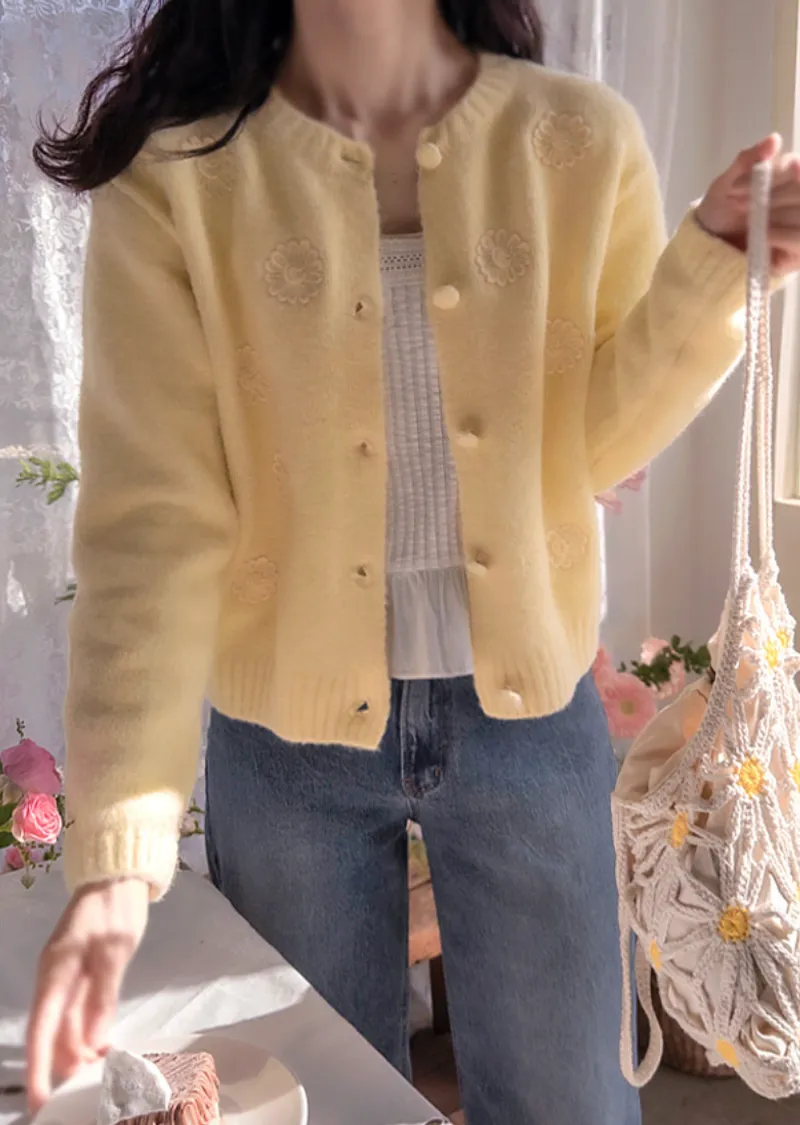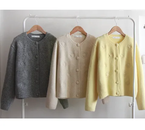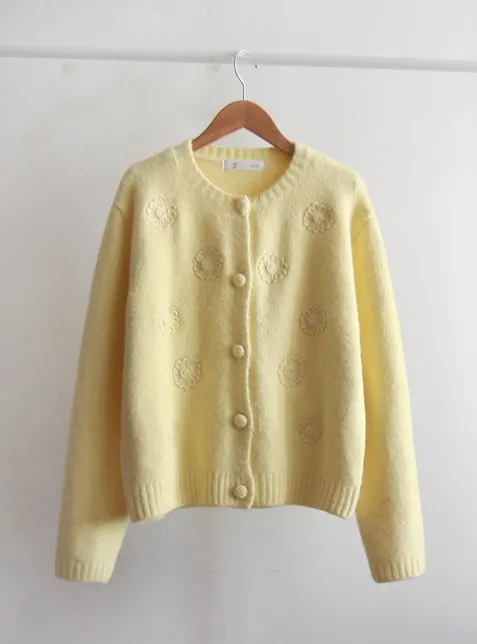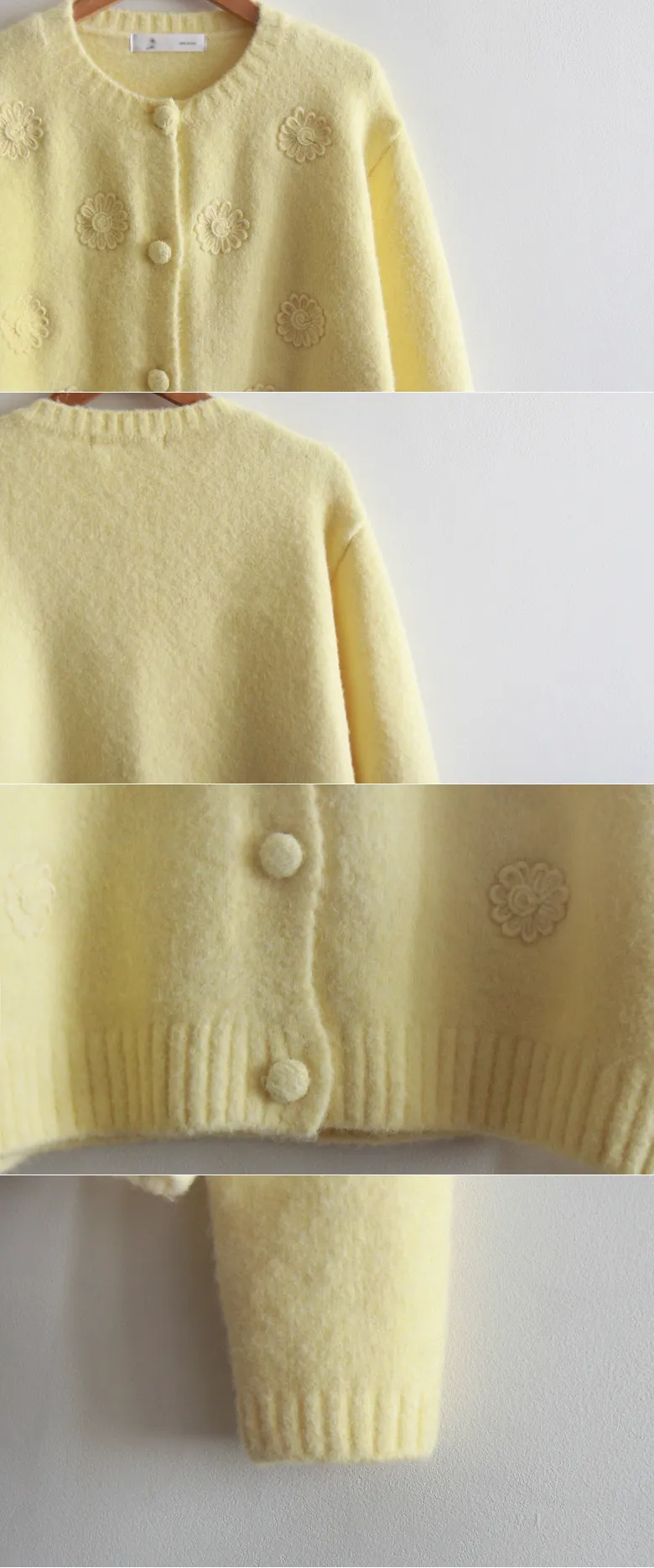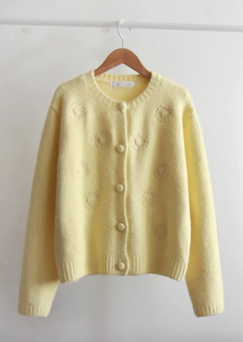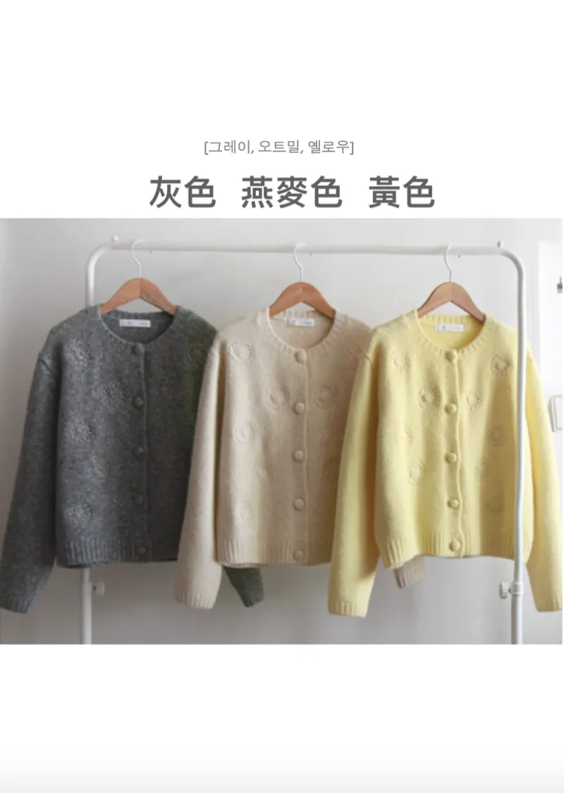 【一款溫暖的開襟衫,配色柔和,充滿春日氣息】【可愛的立體花朵刺繡是一大亮點】【精緻的立體花朵刺繡營造出優雅的氣質】【一款日常針織開衫,顏色雅緻】【蓬鬆、保暖、版型】