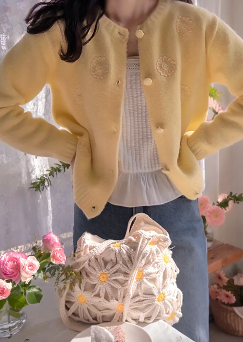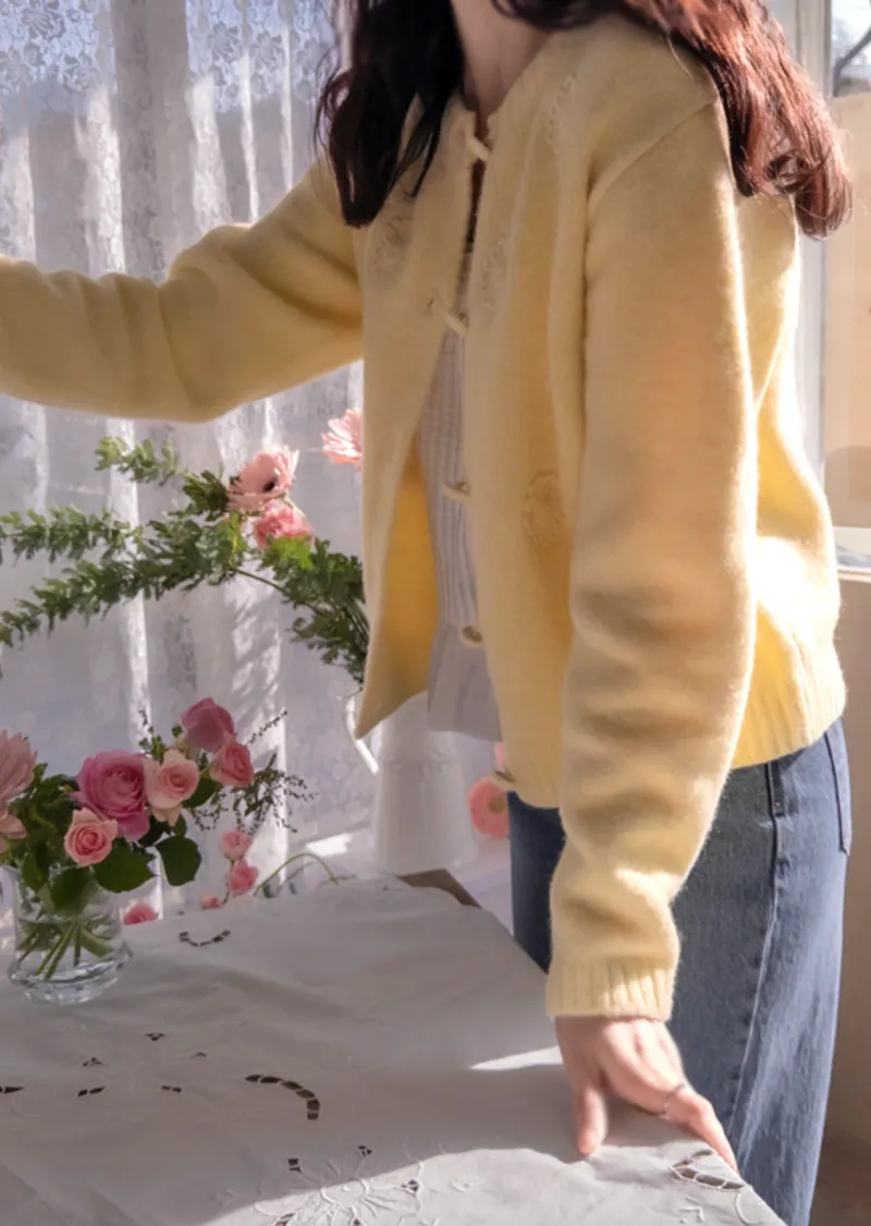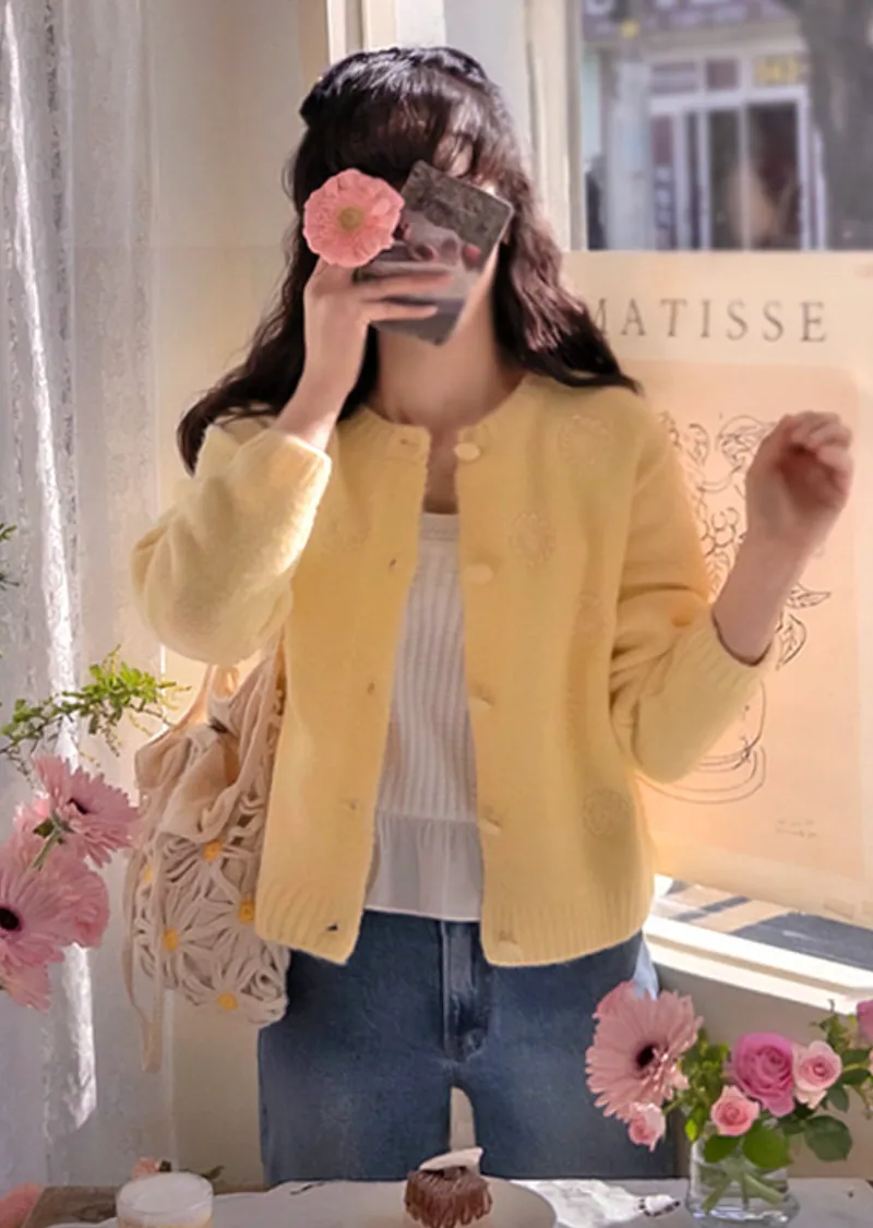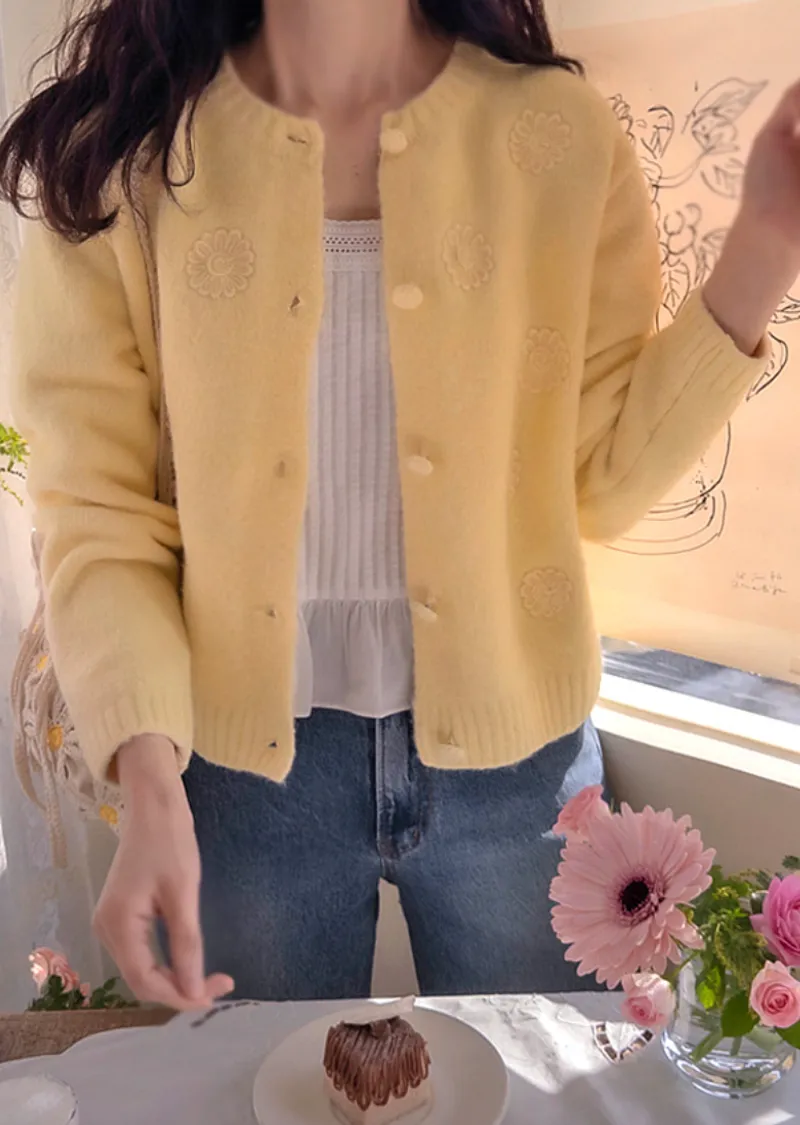 【一款溫暖的開襟衫,配色柔和,充滿春日氣息】【可愛的立體花朵刺繡是一大亮點】【精緻的立體花朵刺繡營造出優雅的氣質】【一款日常針織開衫,顏色雅緻】【蓬鬆、保暖、版型】