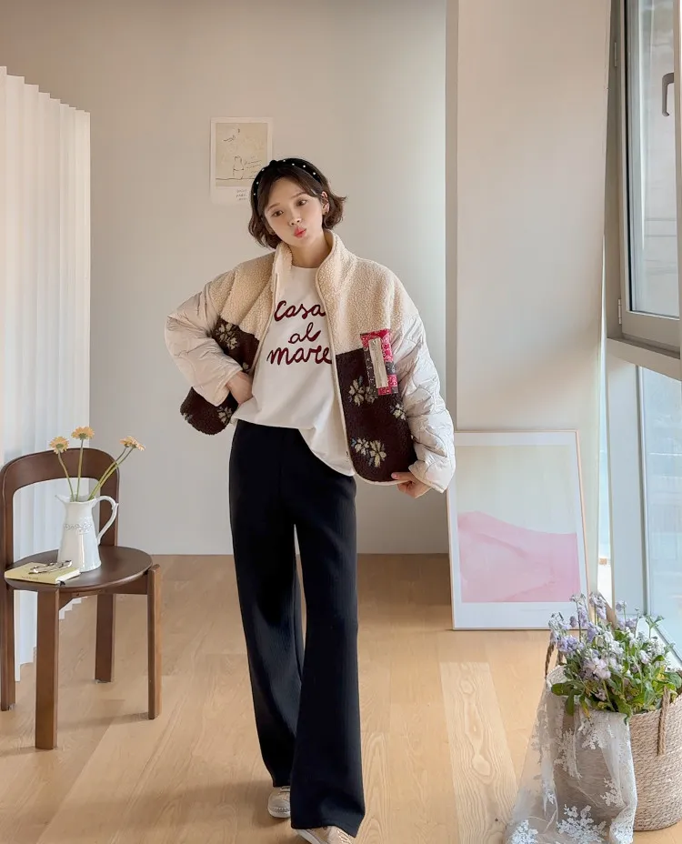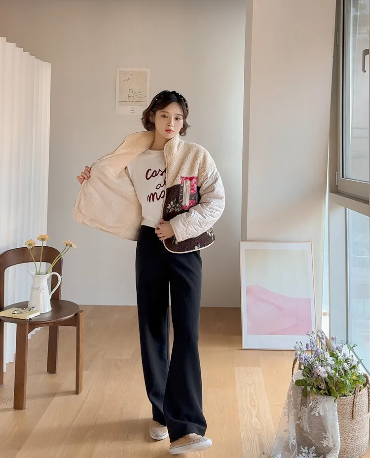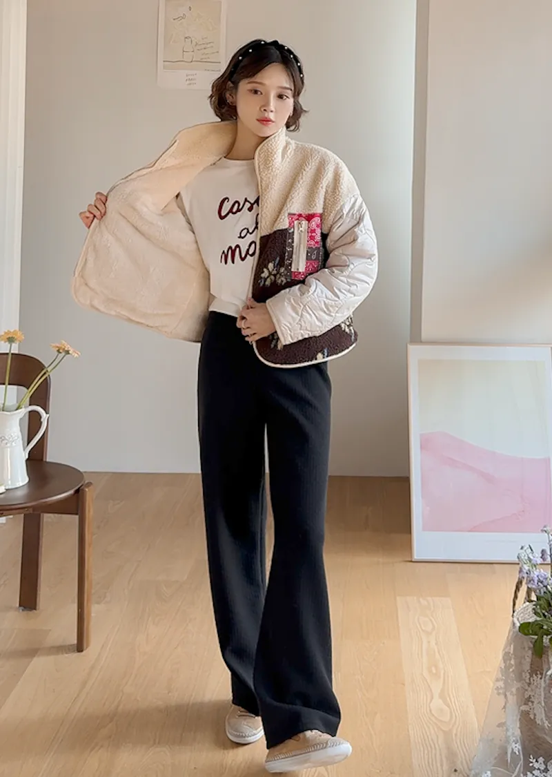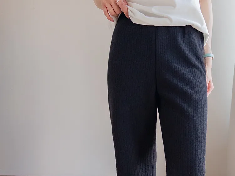 漂亮垂直線條保暖舒適彈性休閒褲