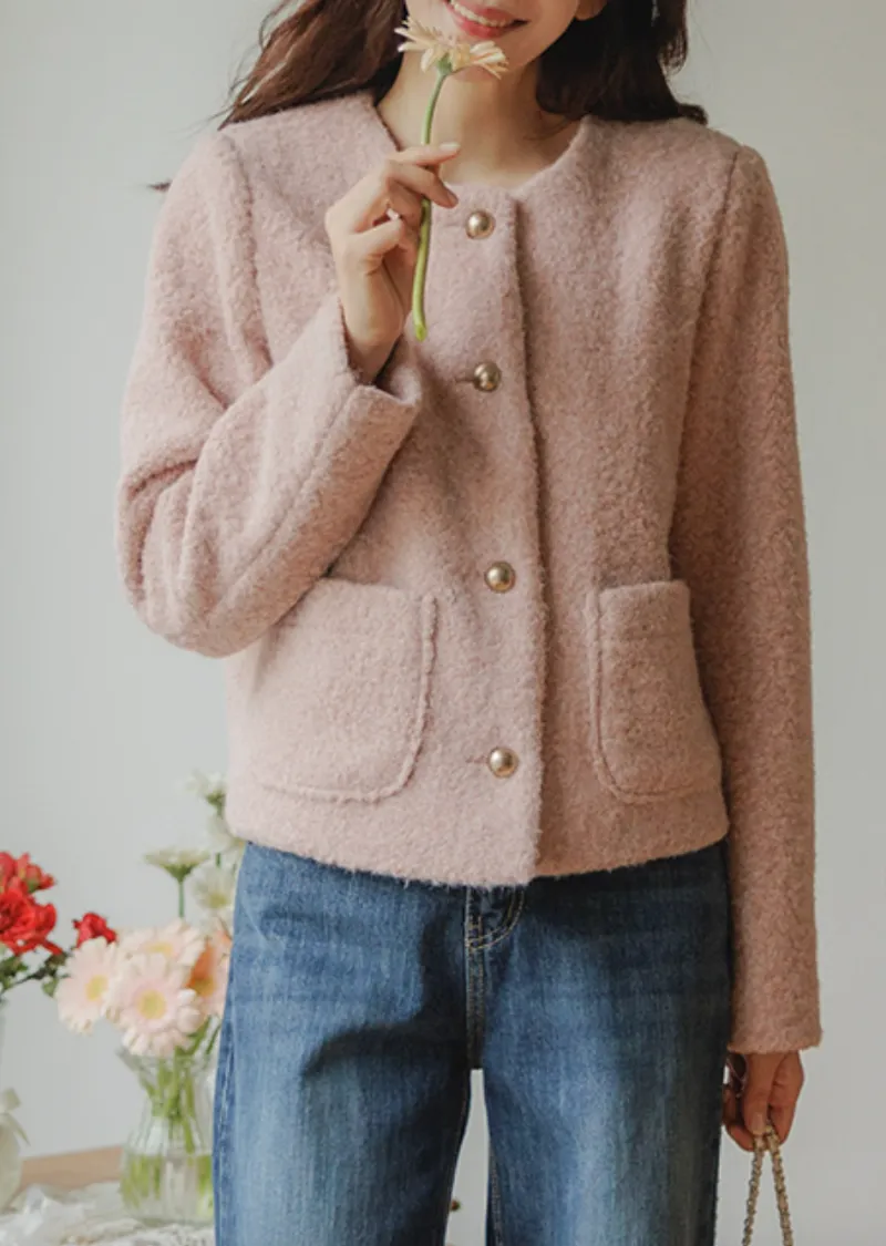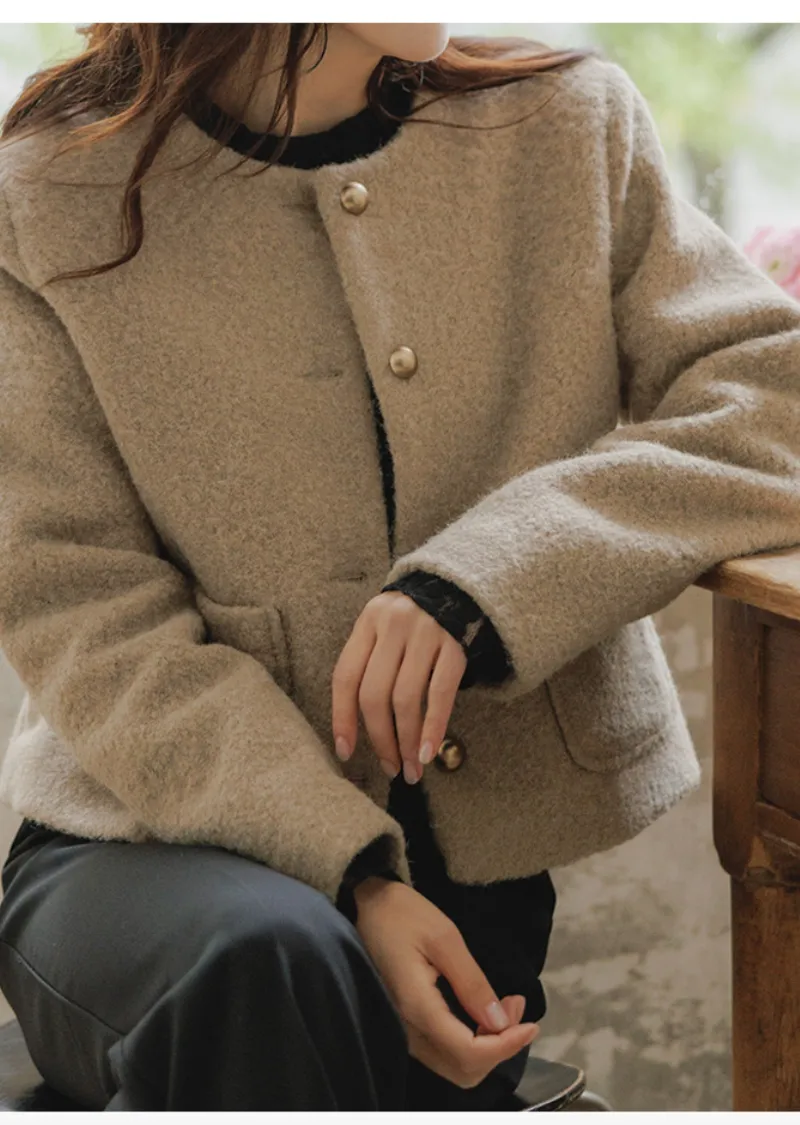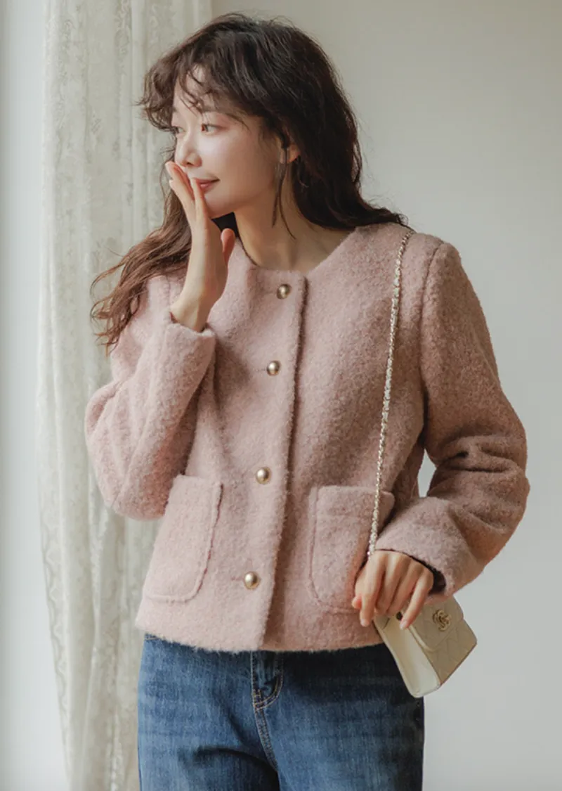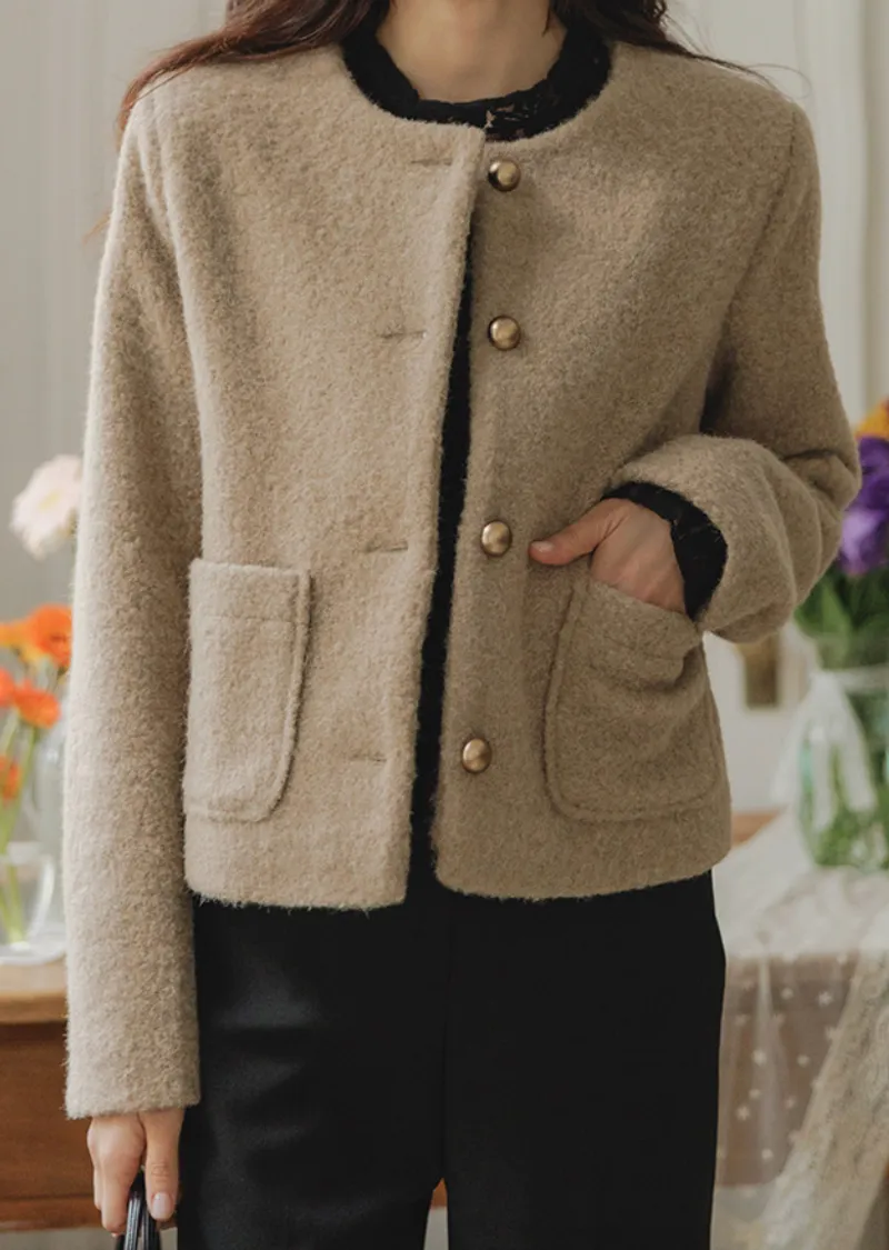一款簡約風格、質地柔軟的女士外套。無領設計勾勒出俐落的輪廓,既溫暖又不失女性柔美。版型俐落挺括,寬鬆的剪裁也能很好地修飾身材。兩側口袋方便收納小物件,實用性強。領口下方均勻分佈的金色鈕扣,方便穿脫,也增添了一抹精緻感。蓬鬆的布料即使隨意搭配T恤和牛仔褲,也能展現出女性的柔美氣質。這款外套不僅適用於婚禮或正式場合,還能與其他單品輕鬆搭配,打造從日常到正式的各種造型。