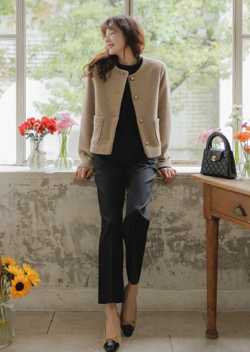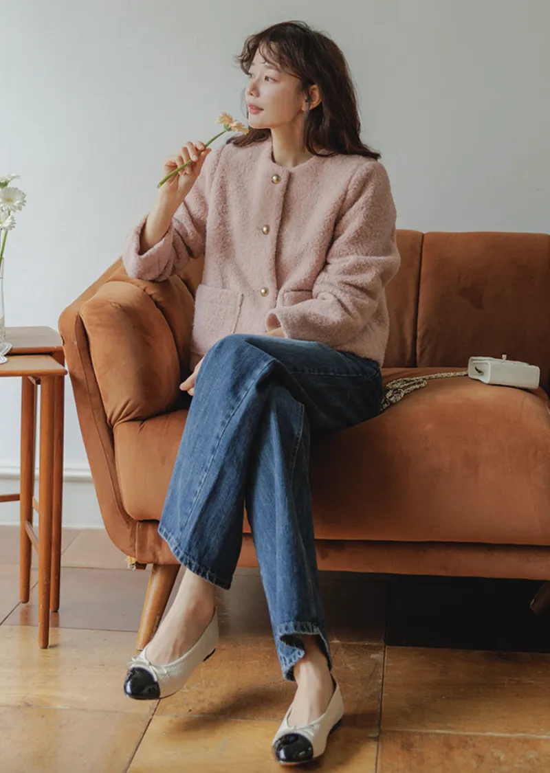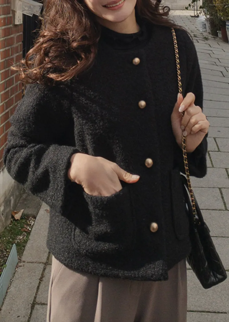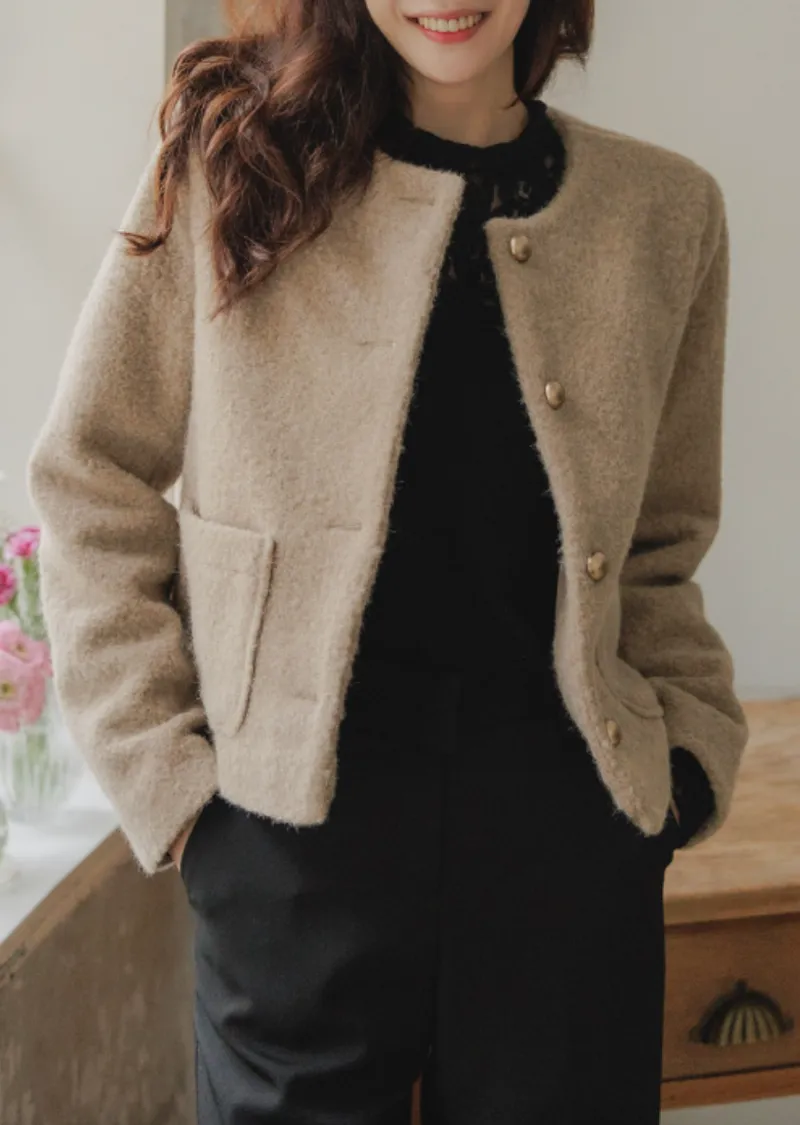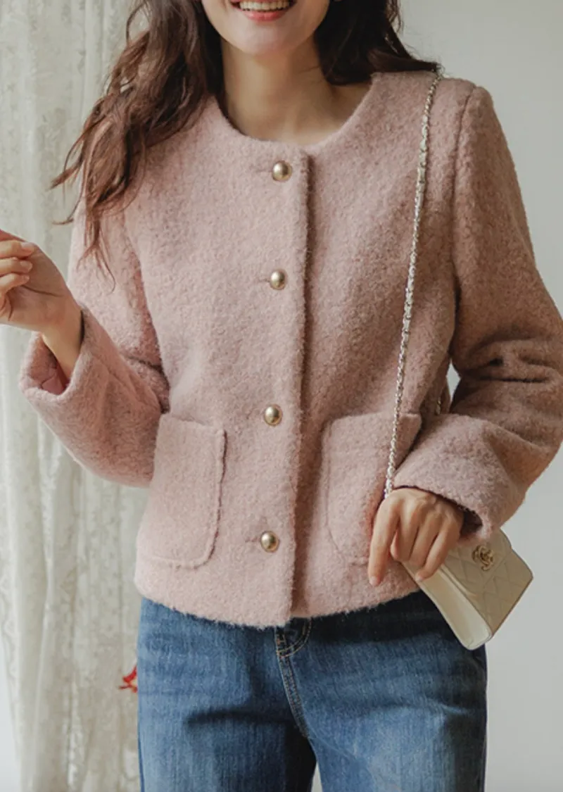 一款簡約風格、質地柔軟的女士外套。無領設計勾勒出俐落的輪廓,既溫暖又不失女性柔美。版型俐落挺括,寬鬆的剪裁也能很好地修飾身材。兩側口袋方便收納小物件,實用性強。領口下方均勻分佈的金色鈕扣,方便穿脫,也增添了一抹精緻感。蓬鬆的布料即使隨意搭配T恤和牛仔褲,也能展現出女性的柔美氣質。這款外套不僅適用於婚禮或正式場合,還能與其他單品輕鬆搭配,打造從日常到正式的各種造型。