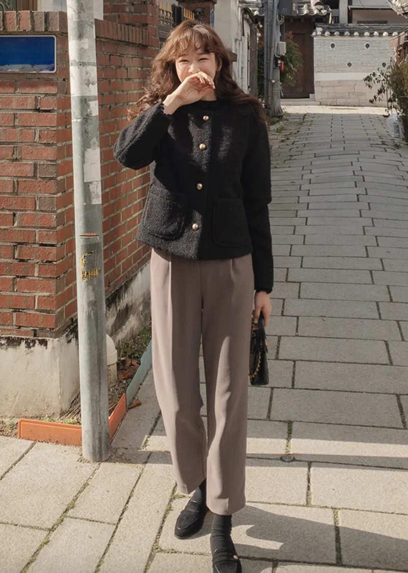 簡約俐落線條點綴金扣花呢外套