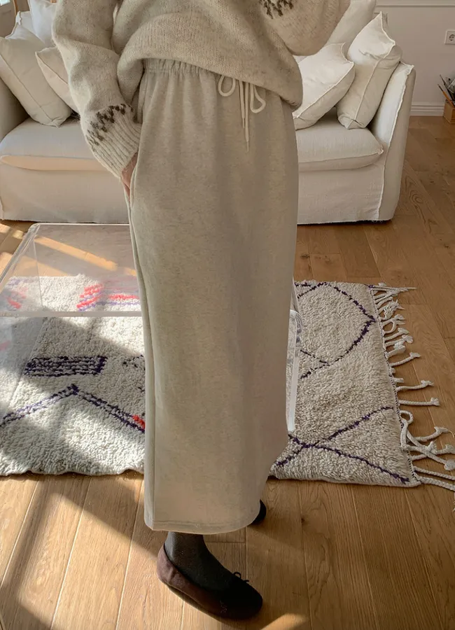 冬季溫暖舒適綁帶收腰H剪裁後開衩中長裙