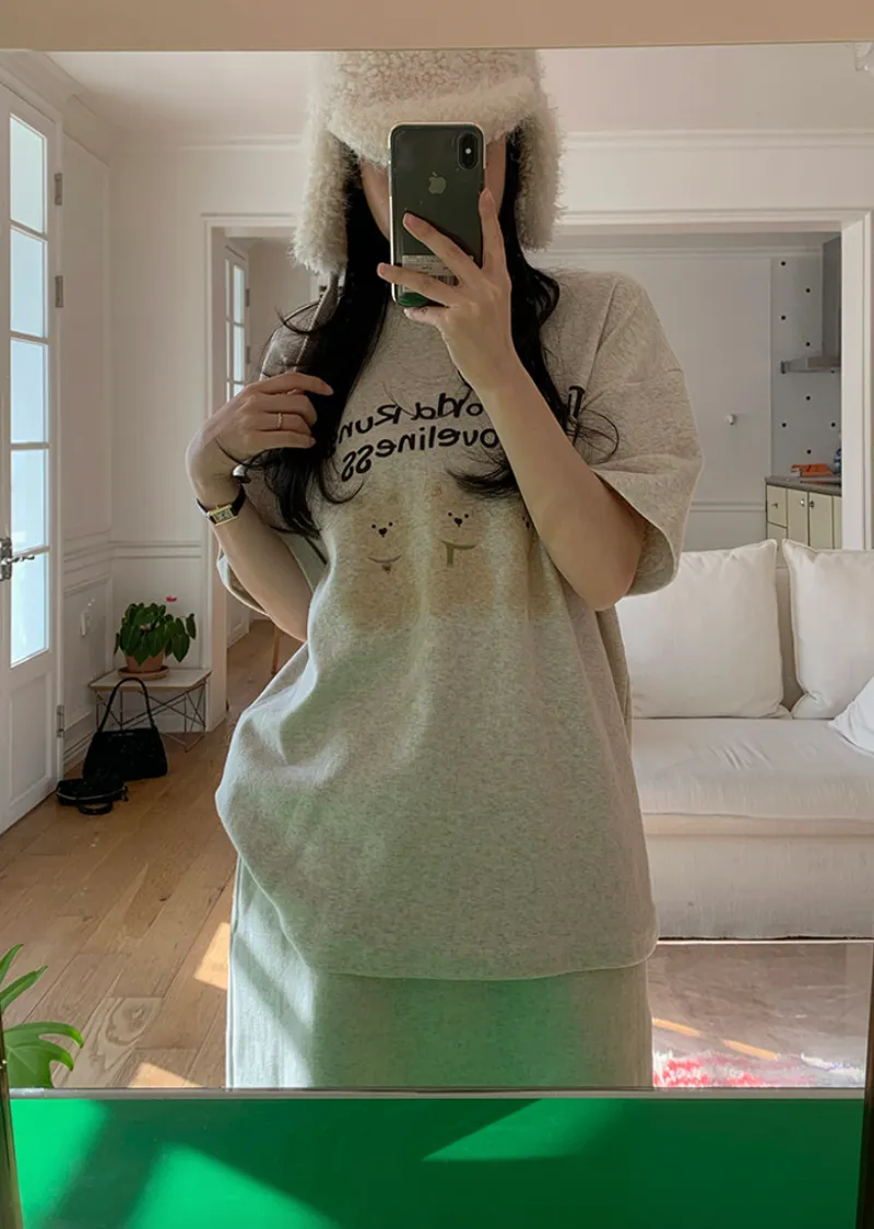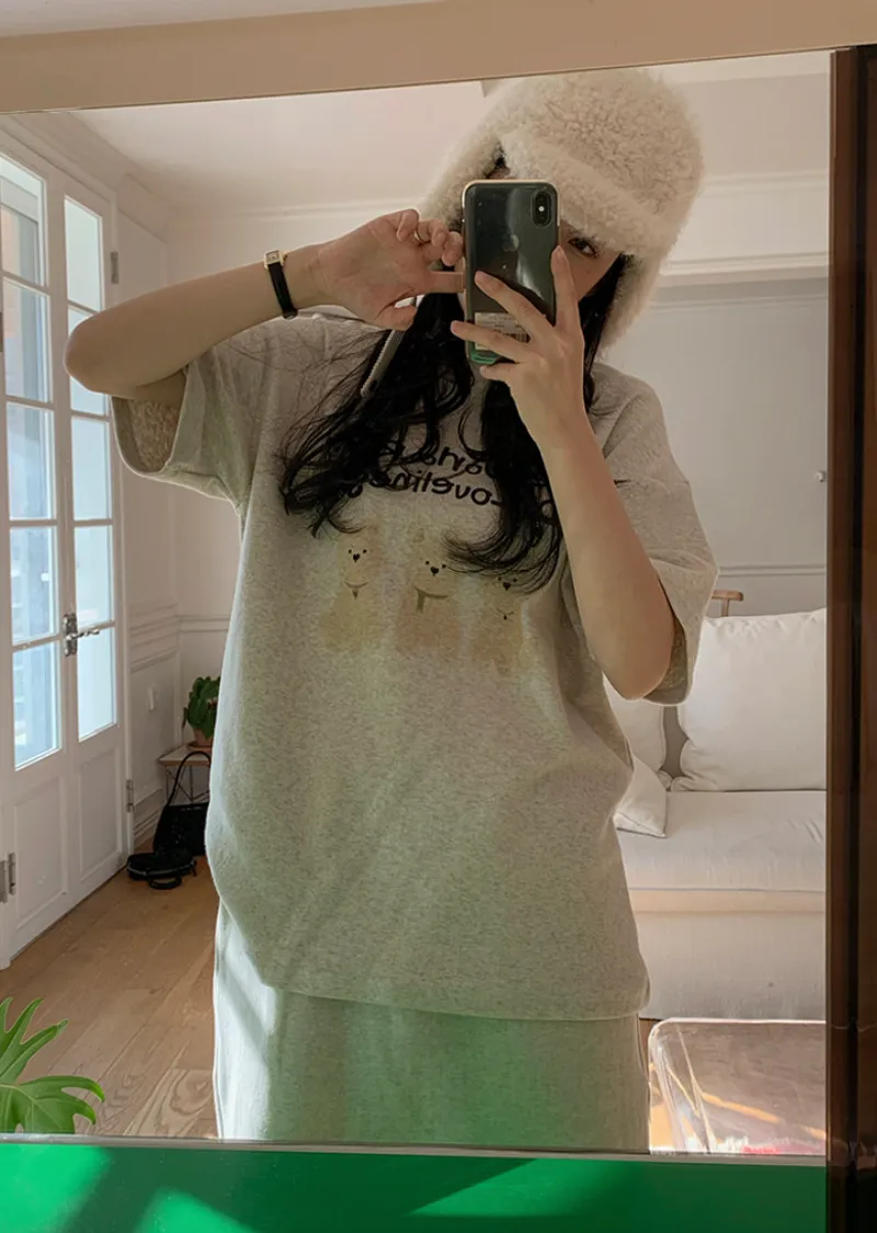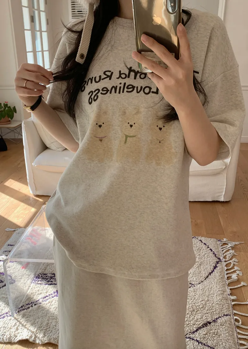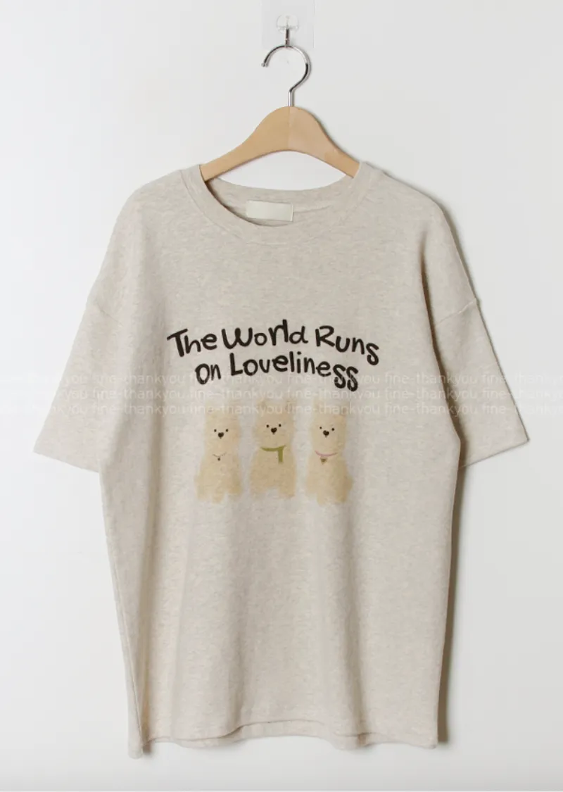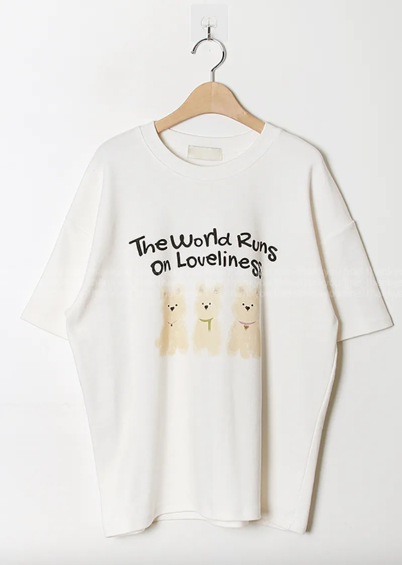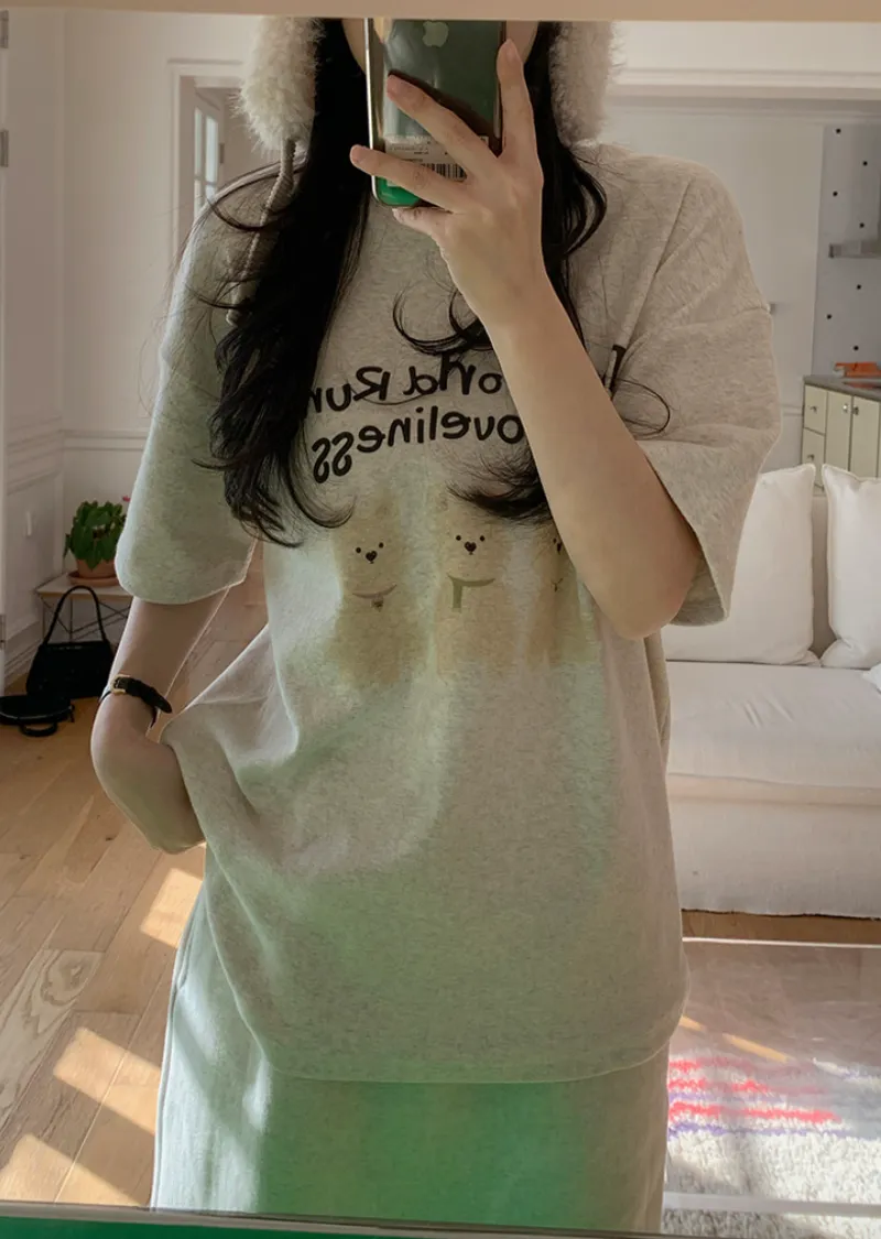 可愛狗狗印花柔軟絨質短袖上衣