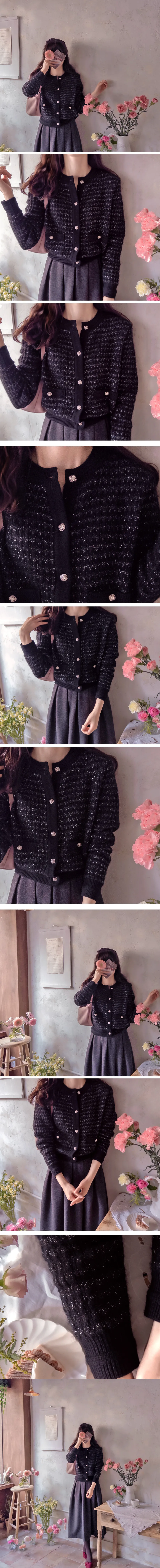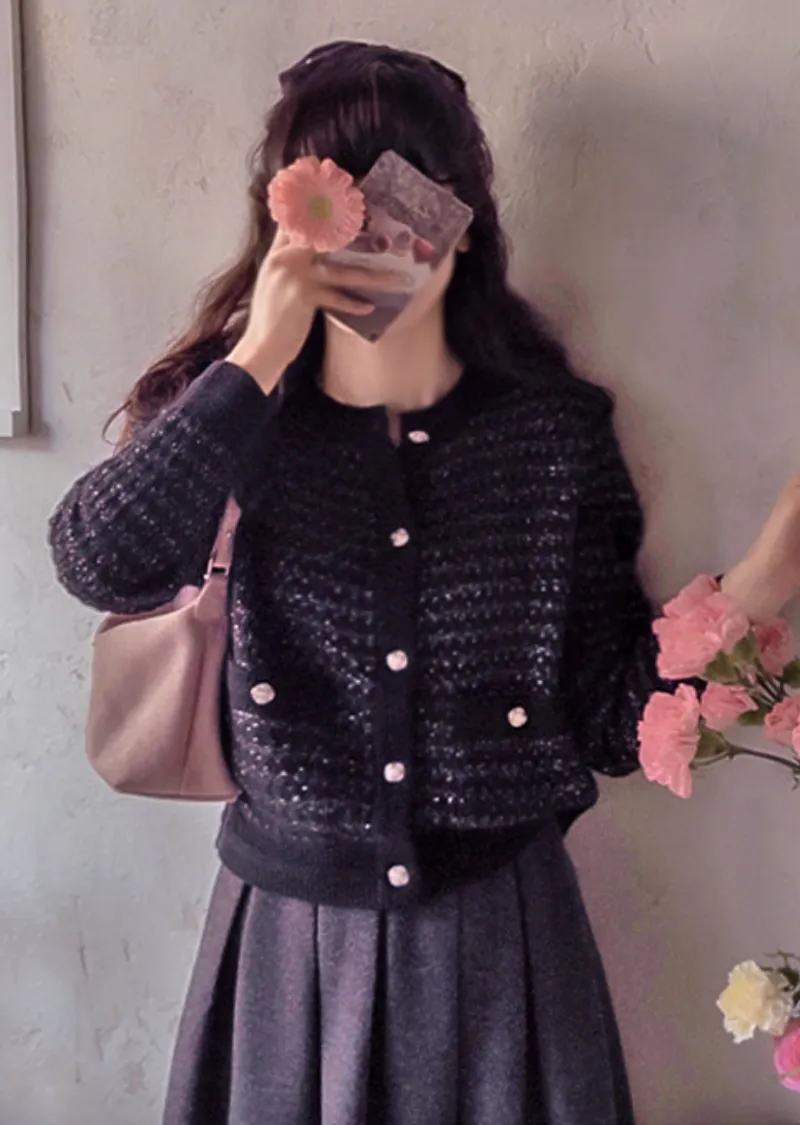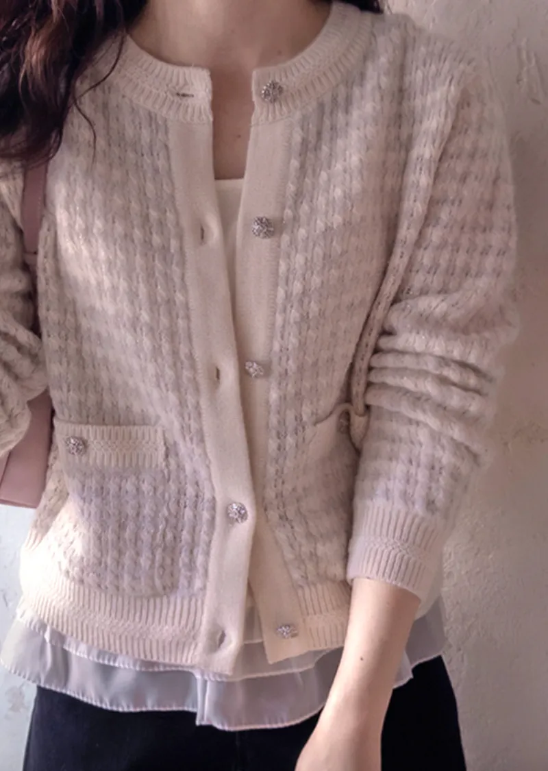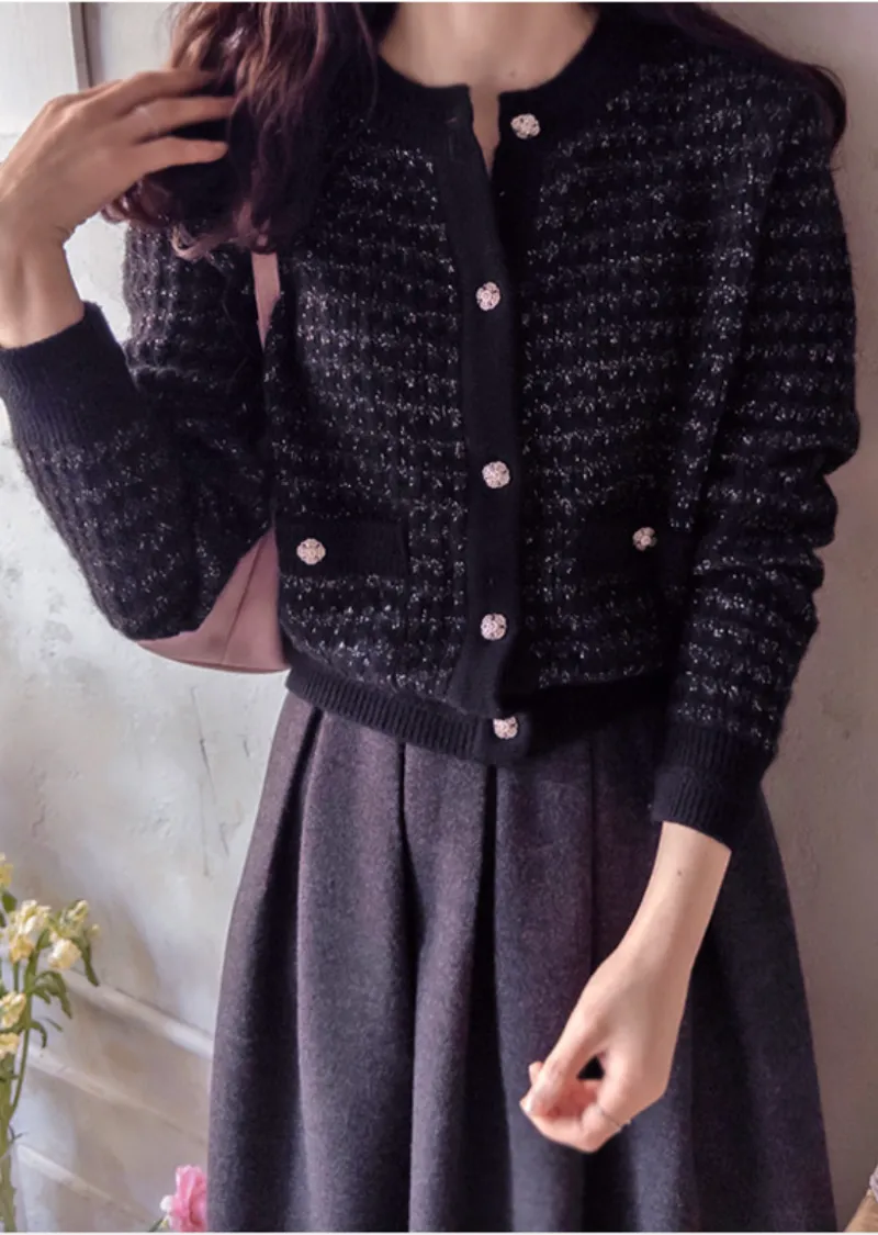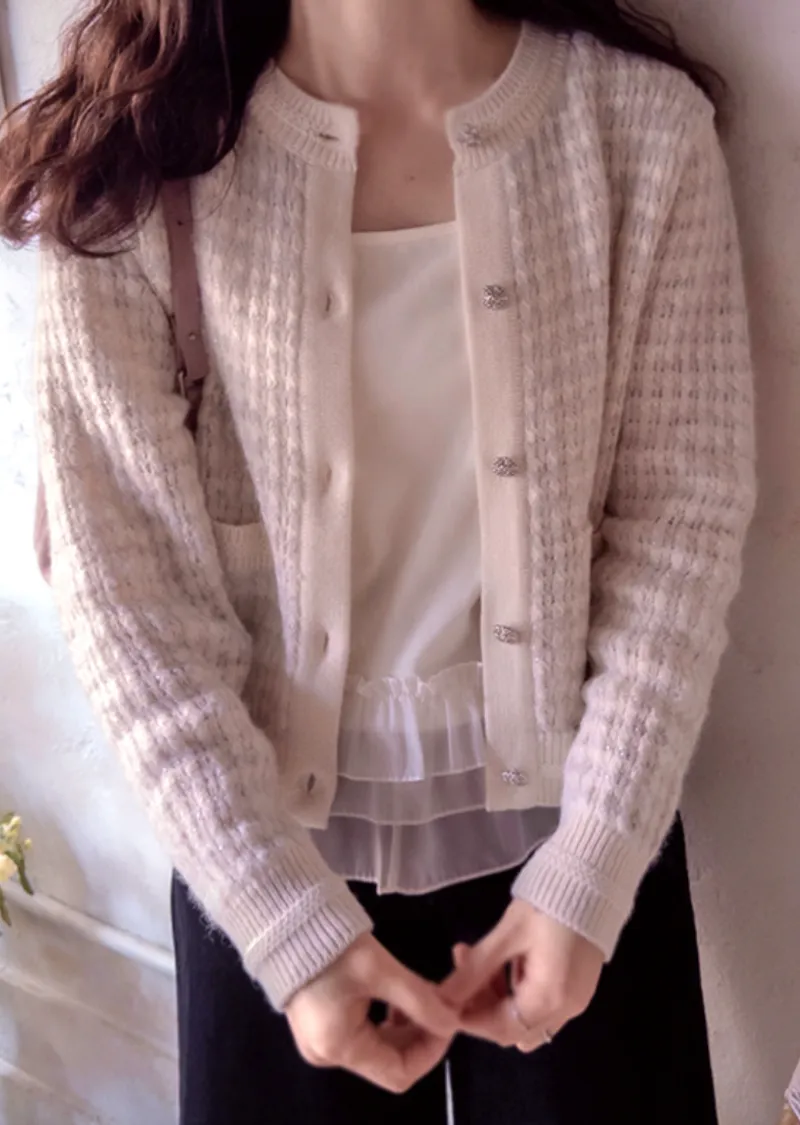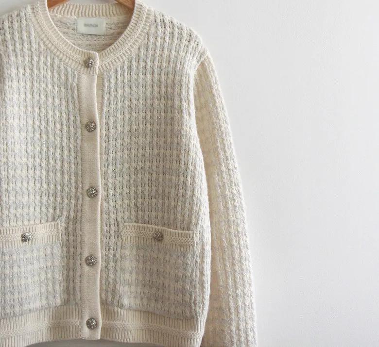 奢華珍珠光澤獨特鈕扣花呢開衫
