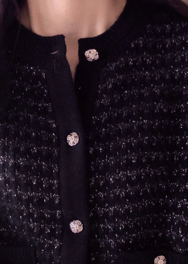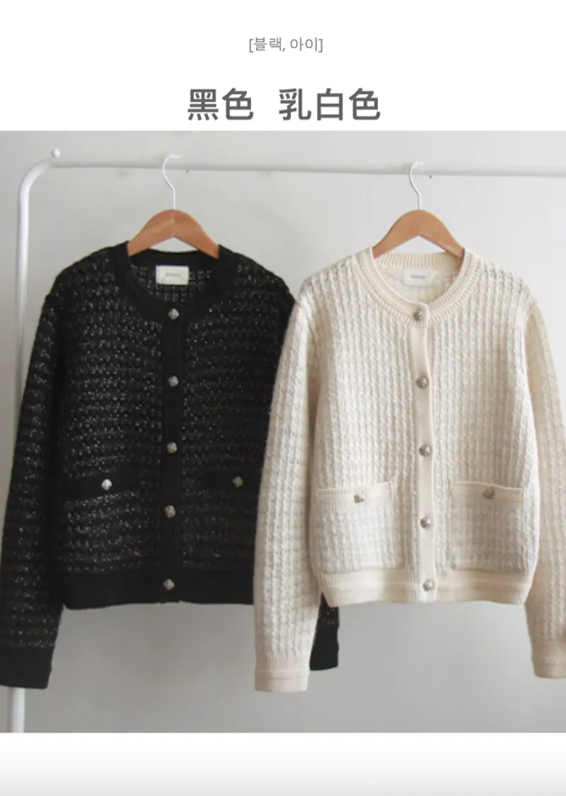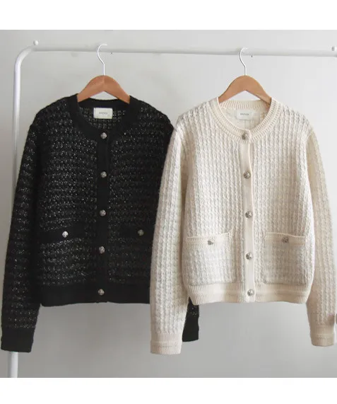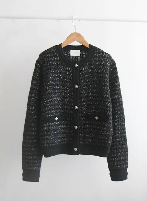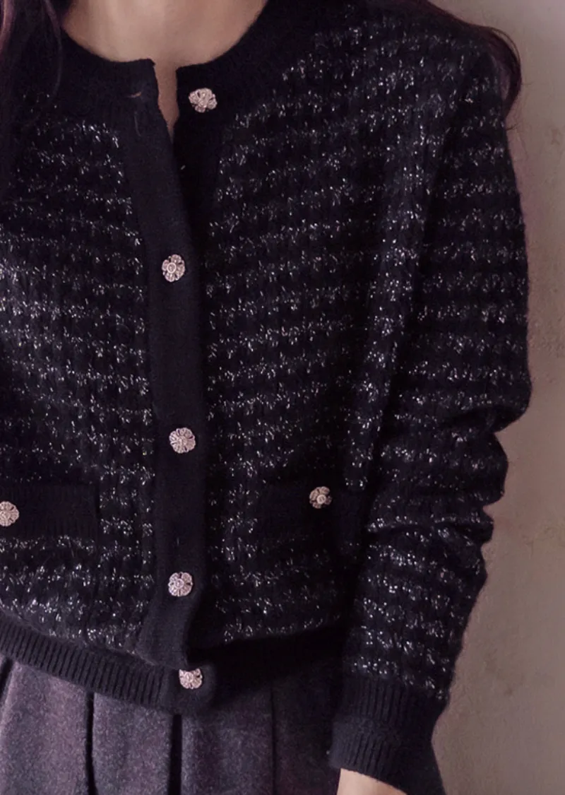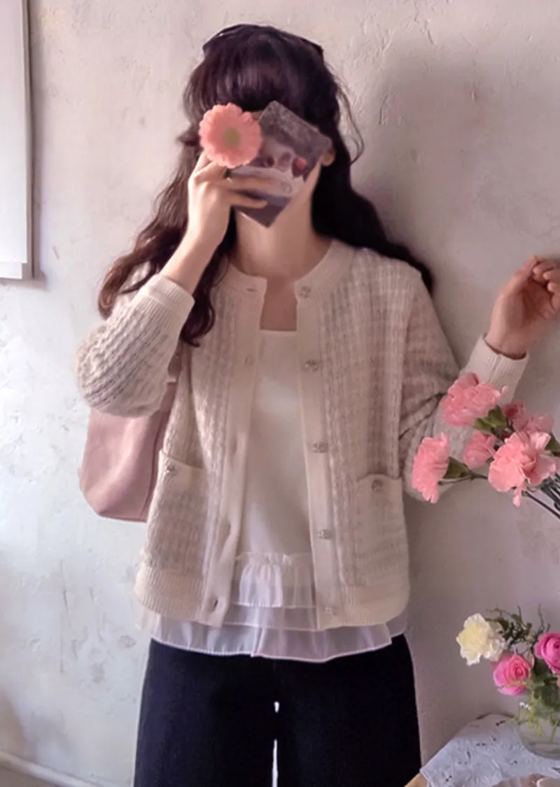 奢華珍珠光澤獨特鈕扣花呢開衫