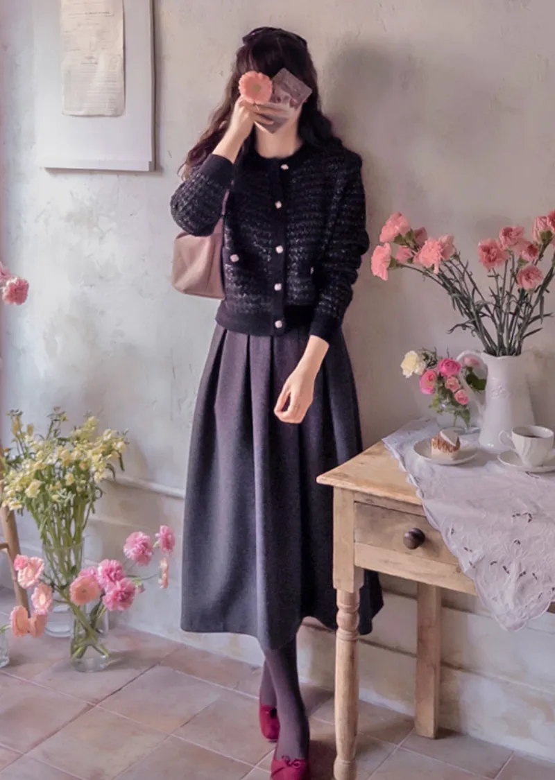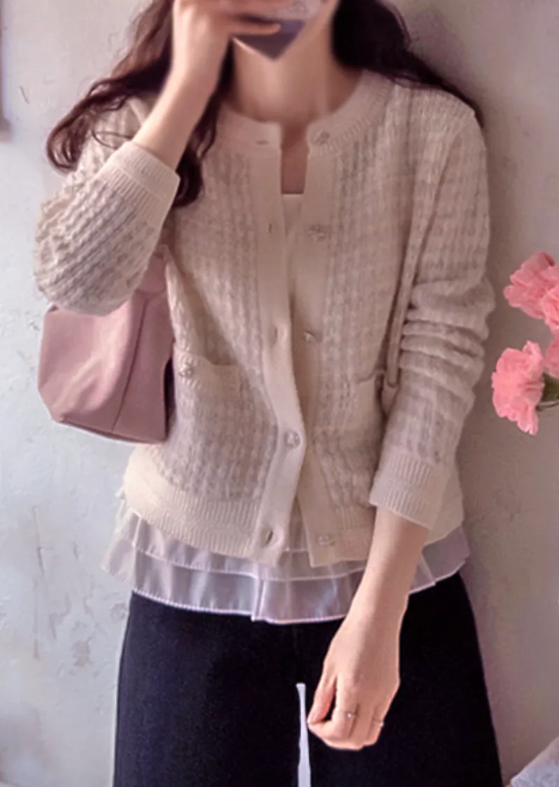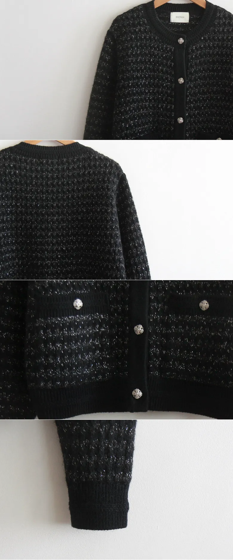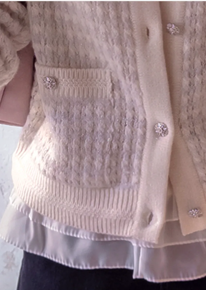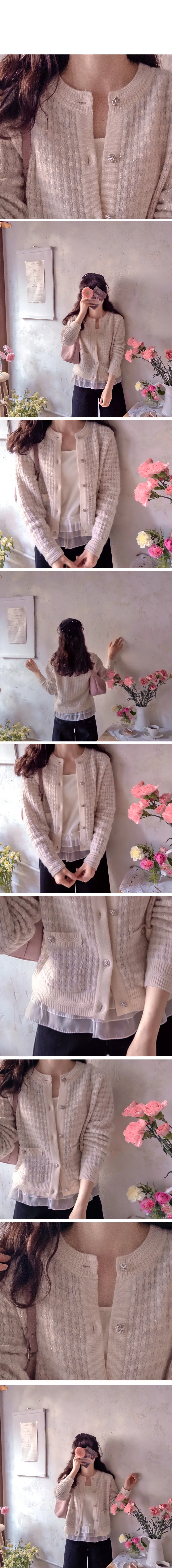奢華珍珠光澤獨特鈕扣花呢開衫