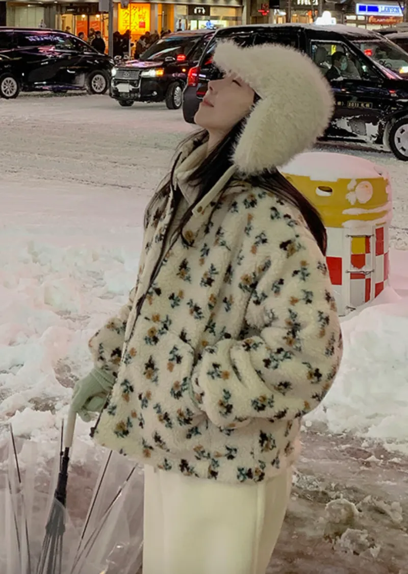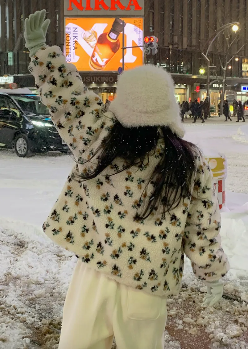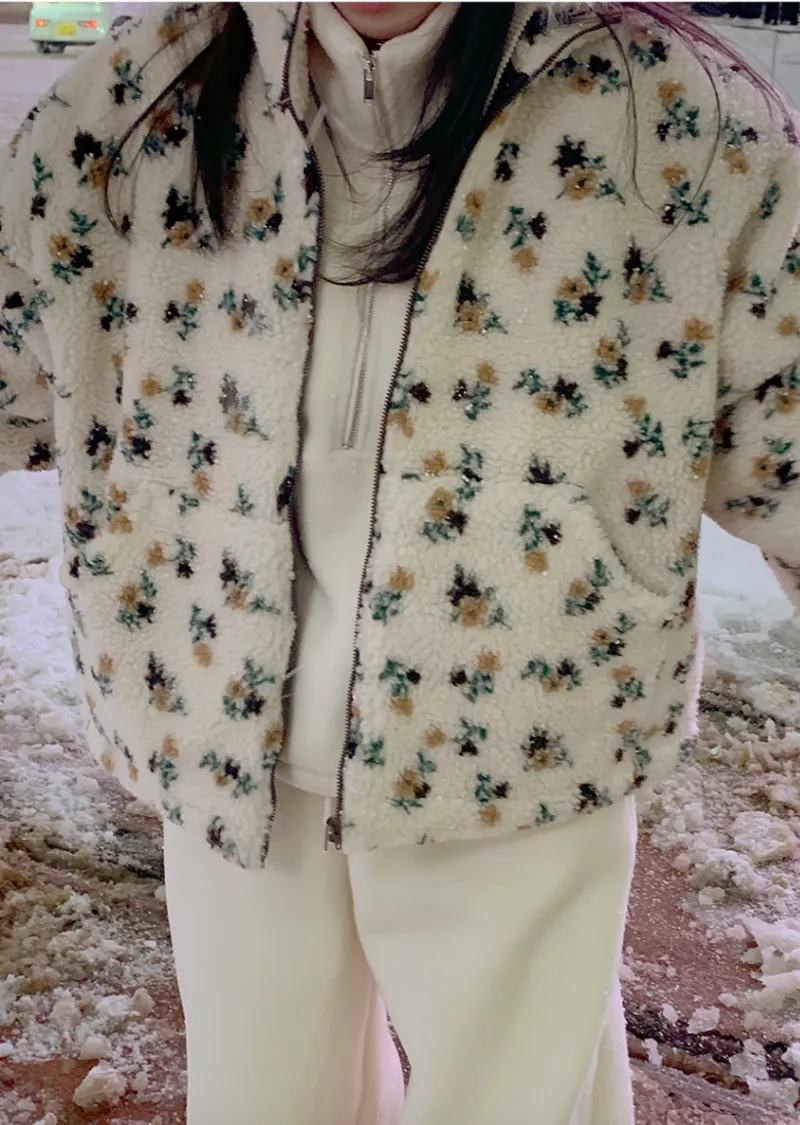 溫馨氛圍花朵圖案溫暖舒適絨質外套