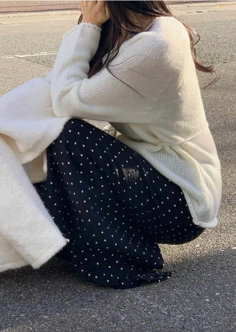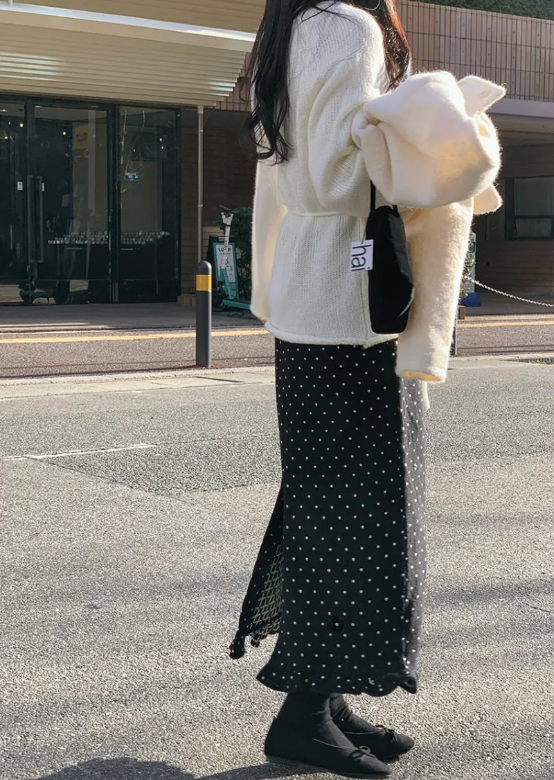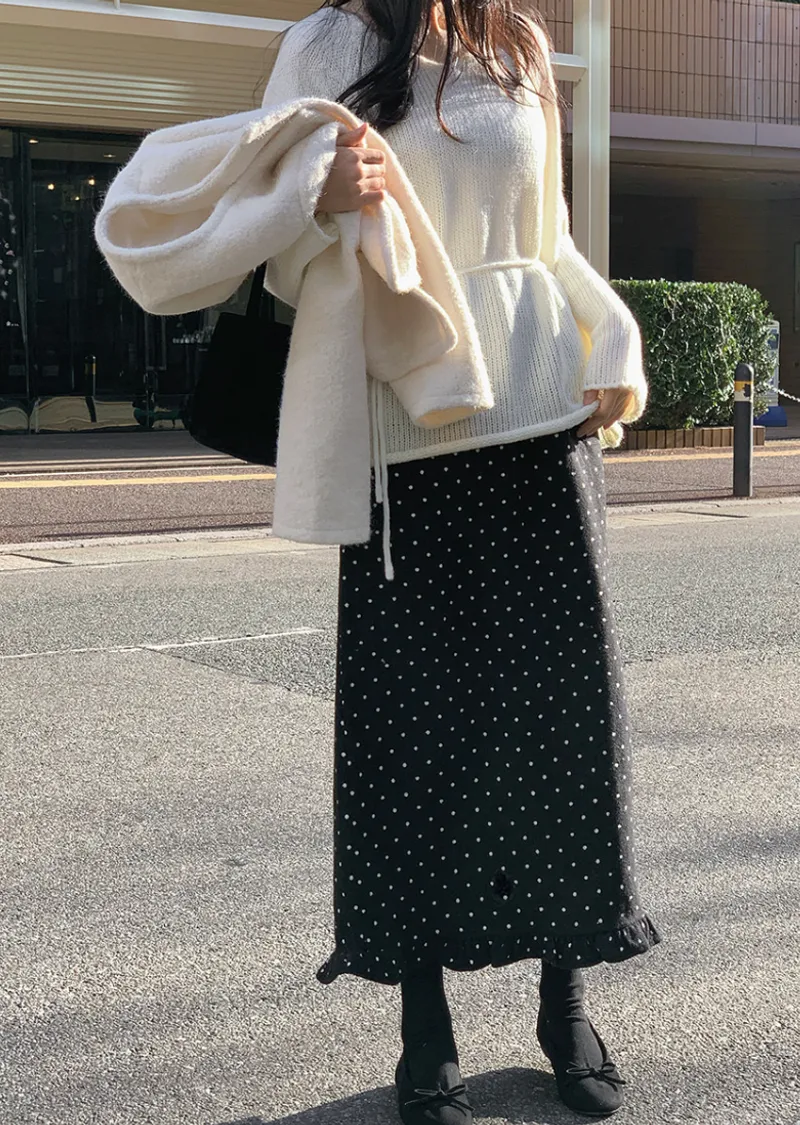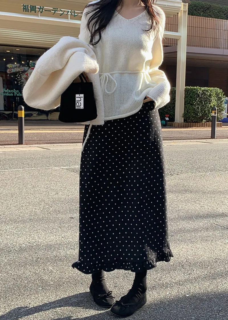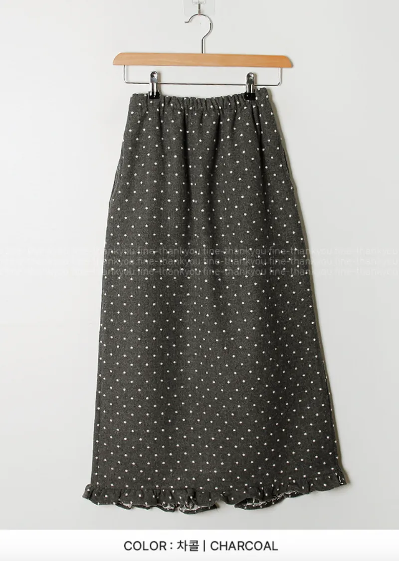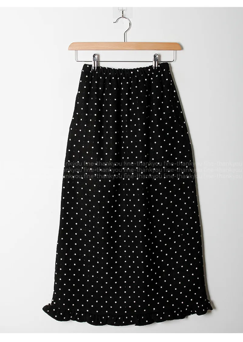 俏皮可愛點綴下擺荷葉摺邊點點中長裙