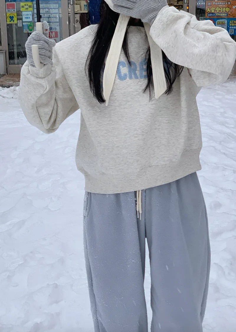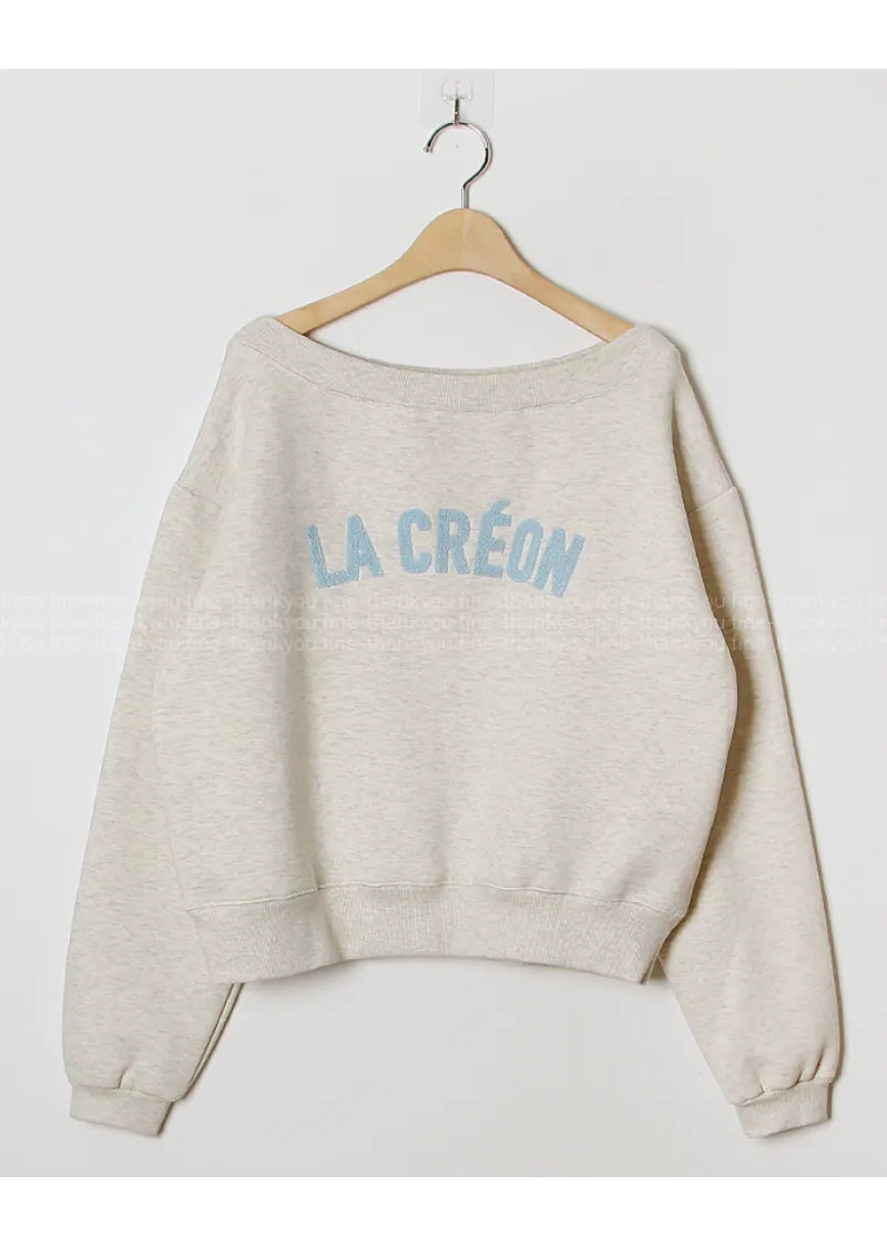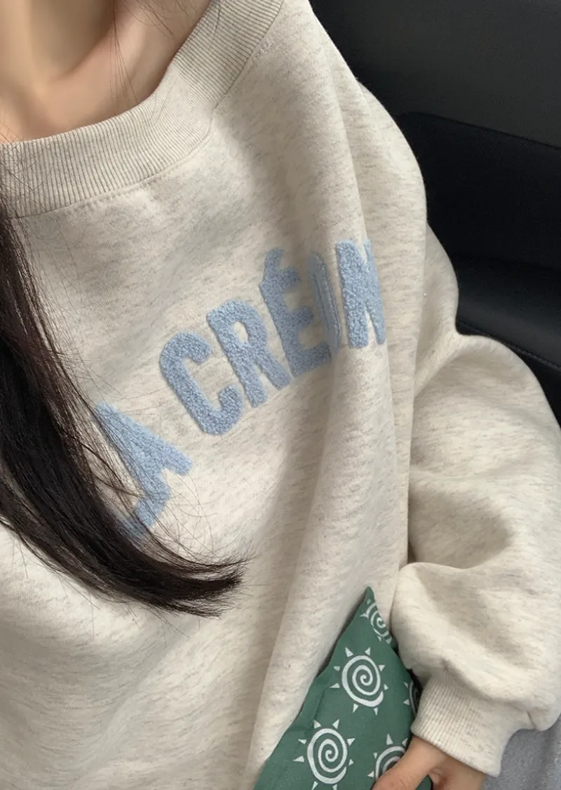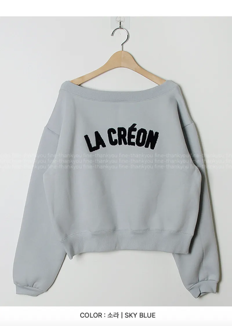 冬日氣息毛絨字母貼片船領線條休閒上衣