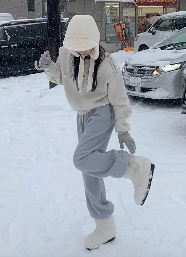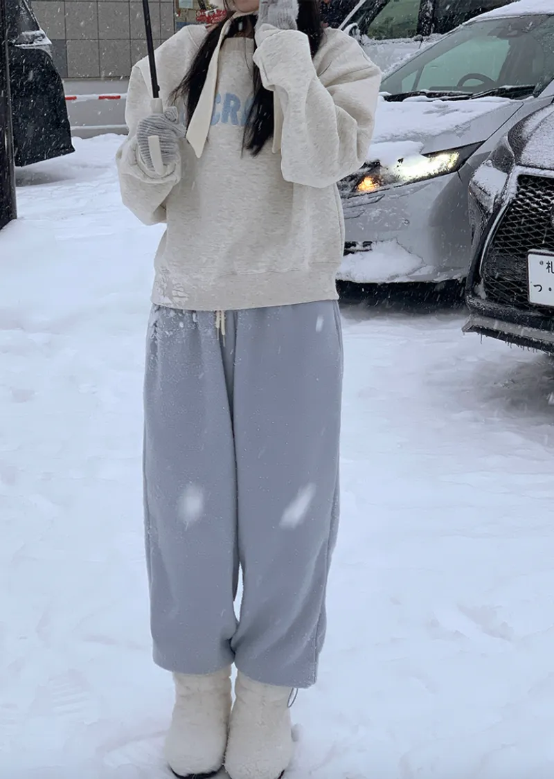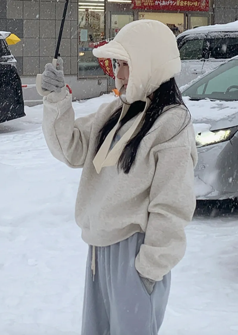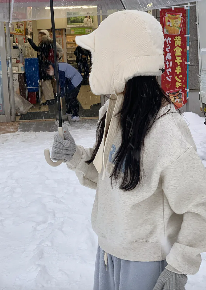 冬日氣息毛絨字母貼片船領線條休閒上衣