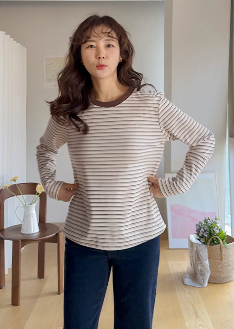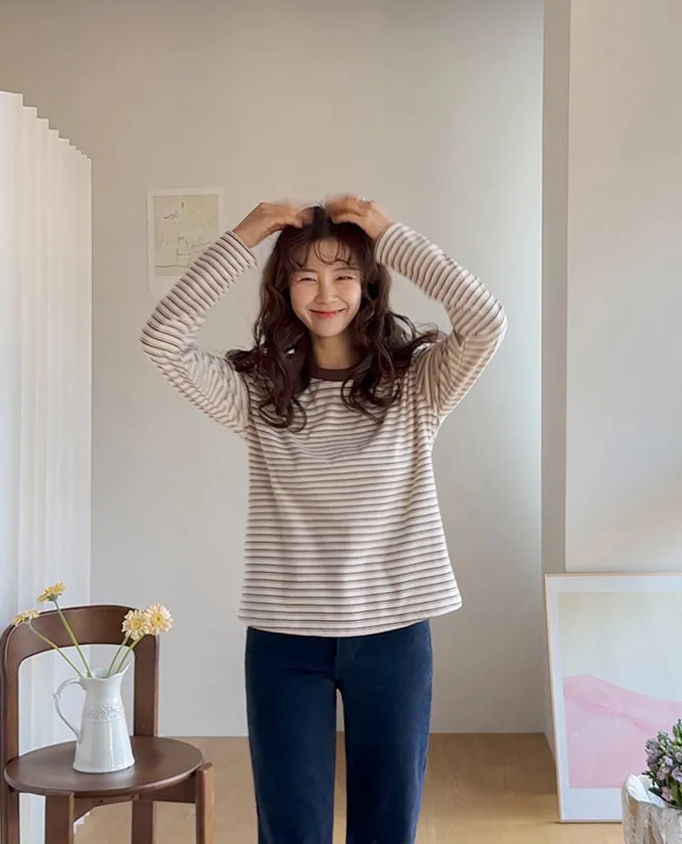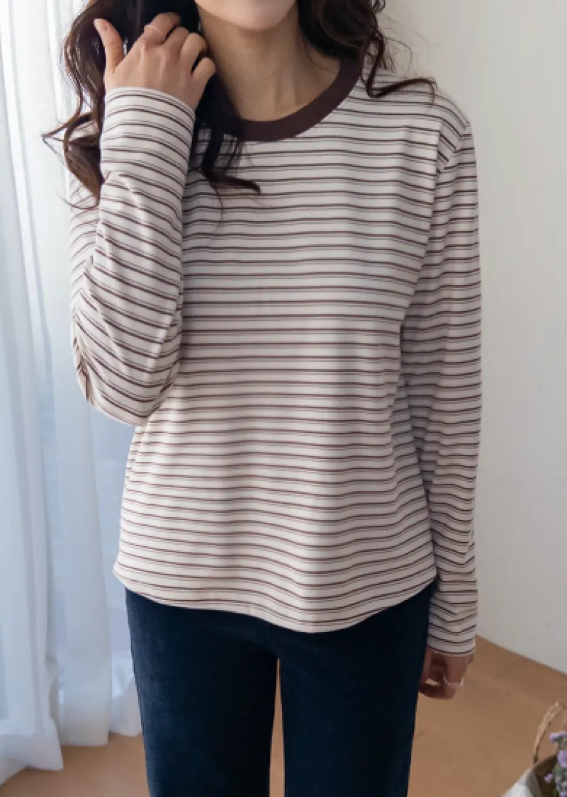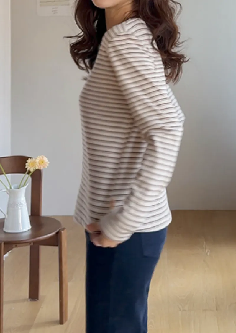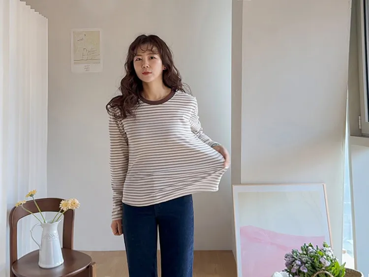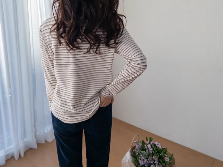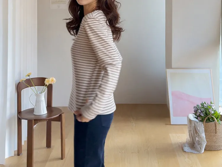 柔軟舒適可疊穿條紋上衣