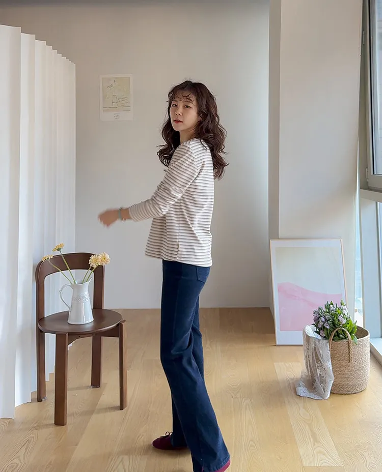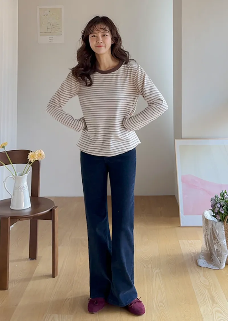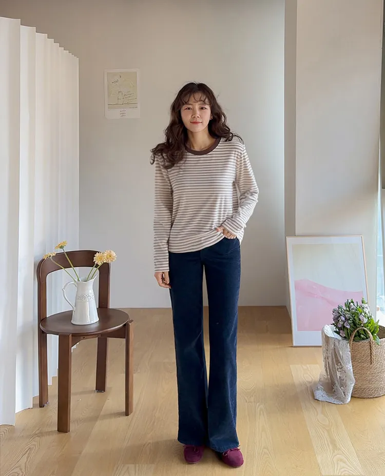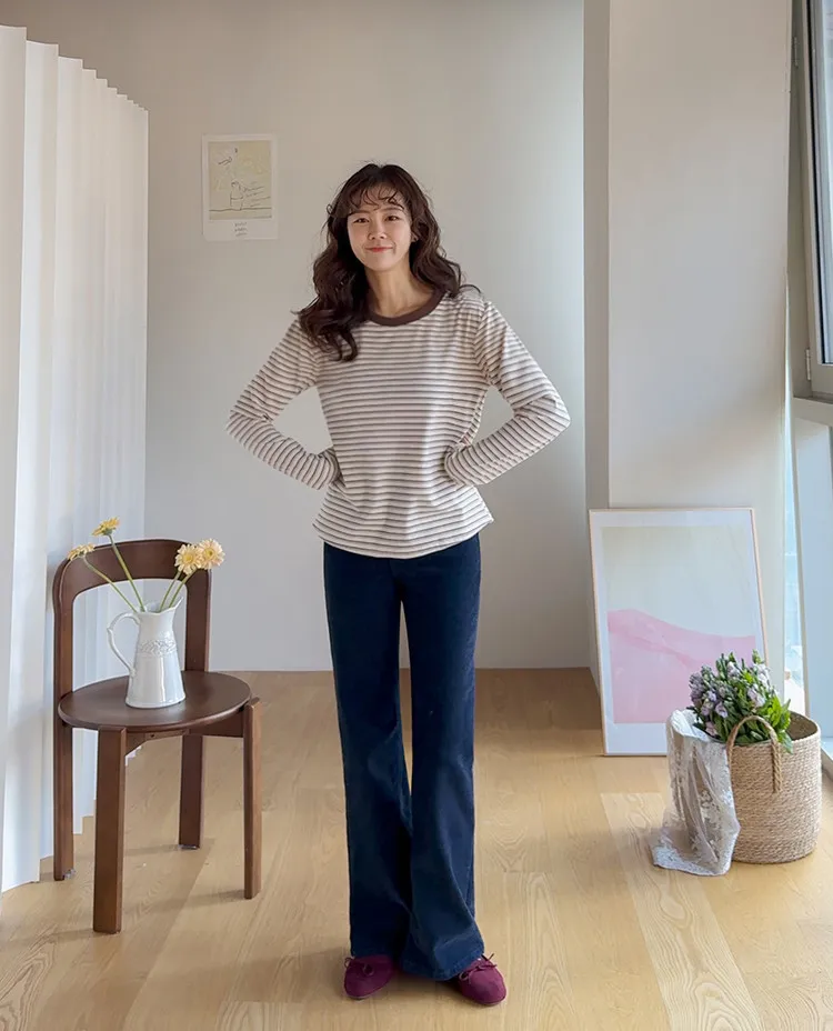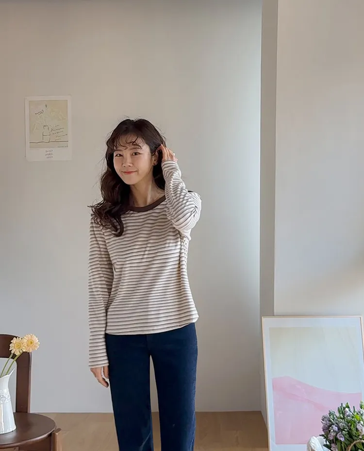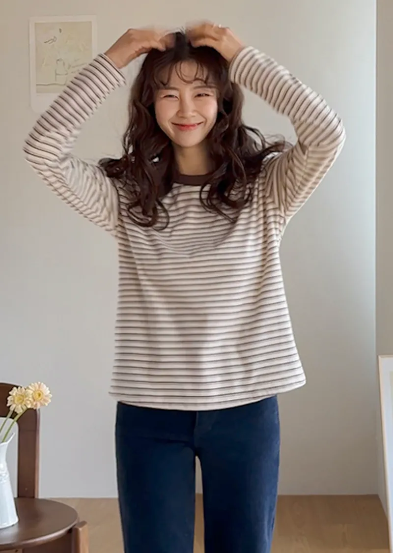 柔軟舒適可疊穿條紋上衣