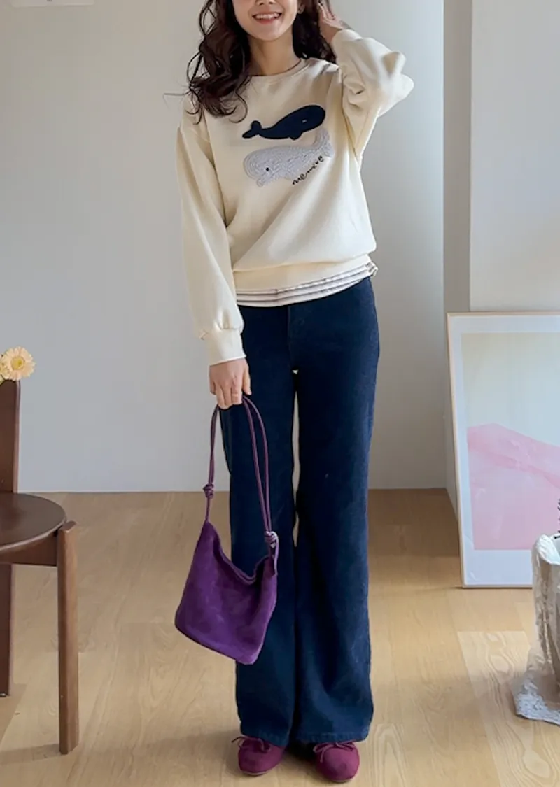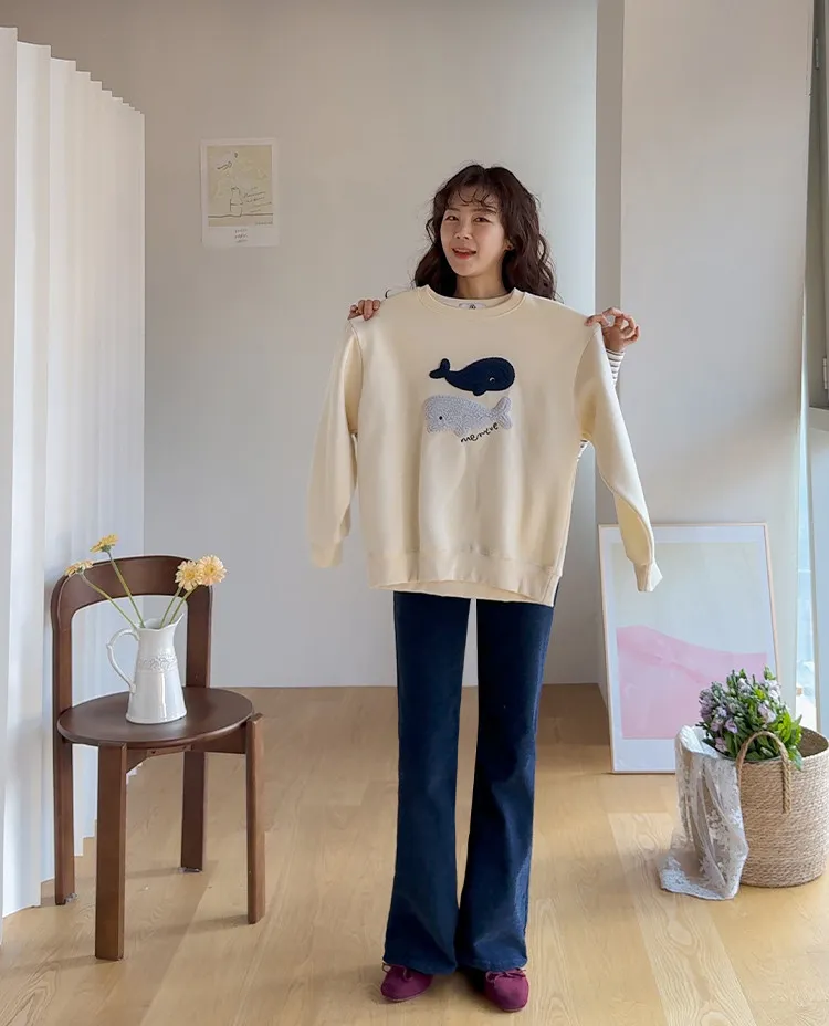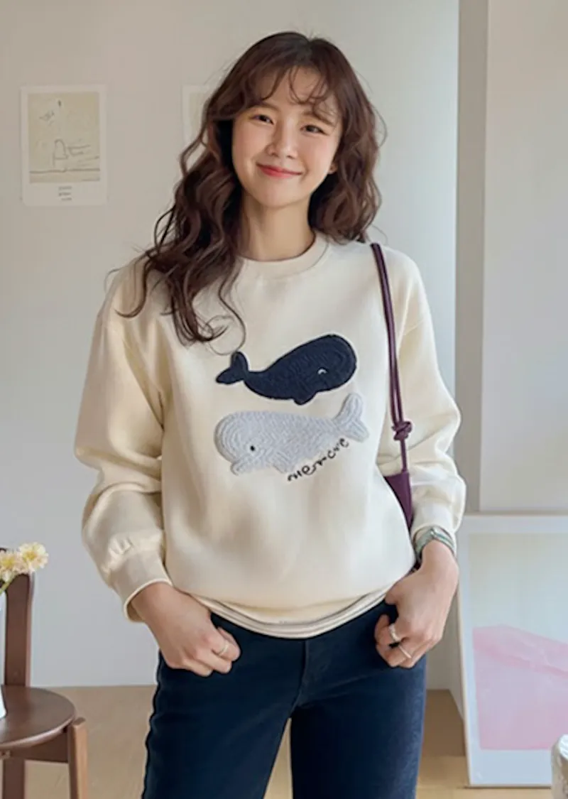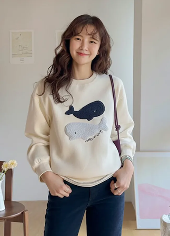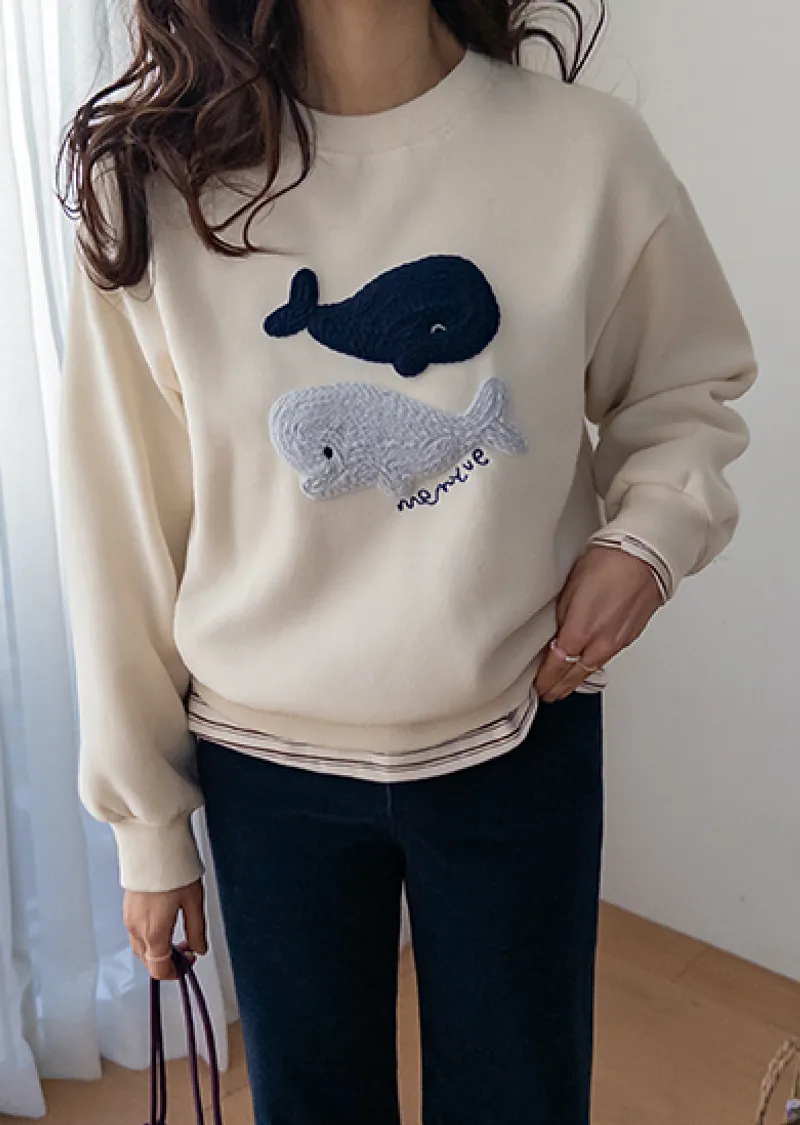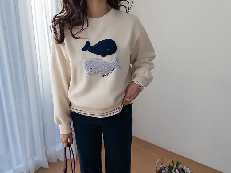 可愛立體鯨魚圖案柔軟內襯穿搭上衣