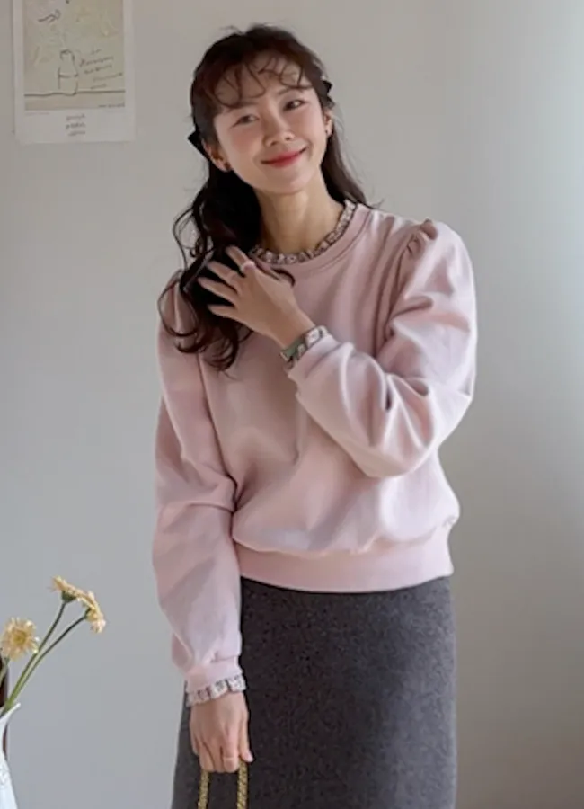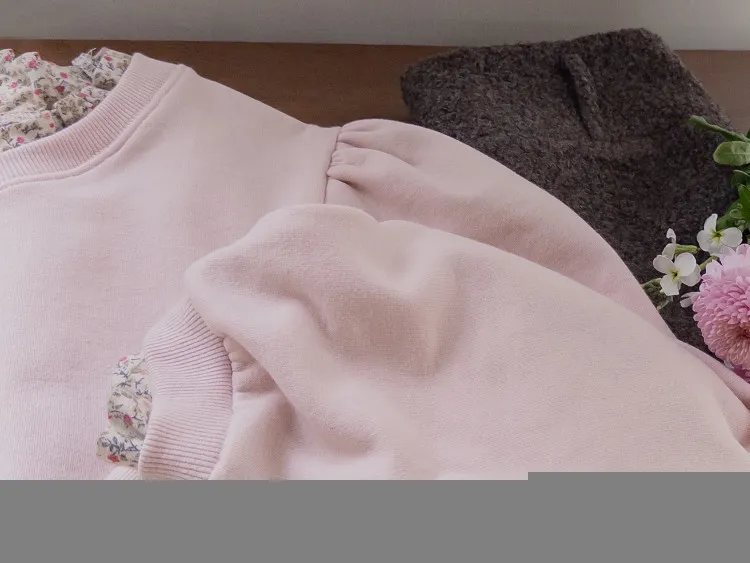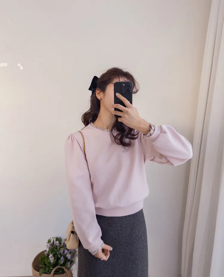 可愛迷人領口袖末花朵襯邊肩線褶襉線條上衣