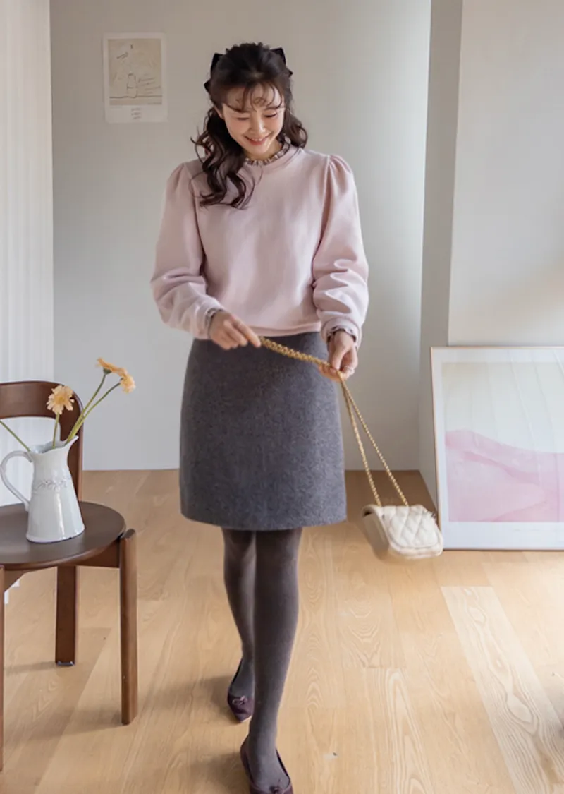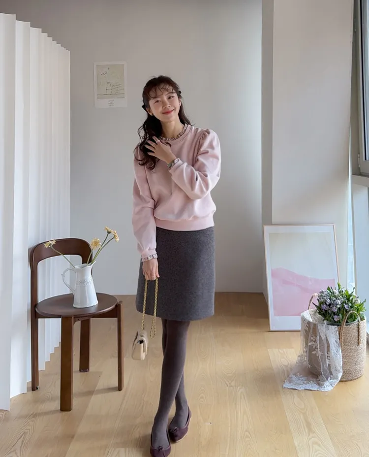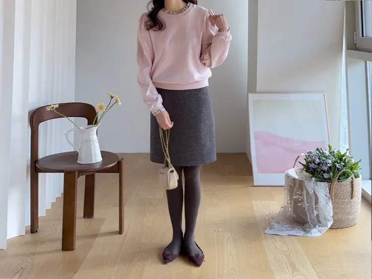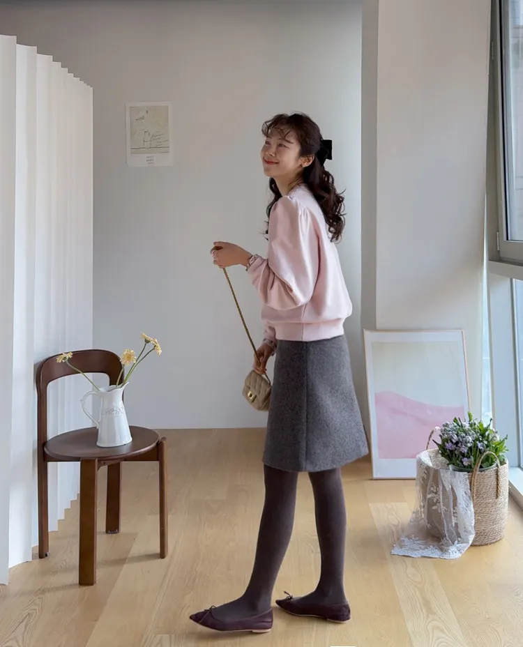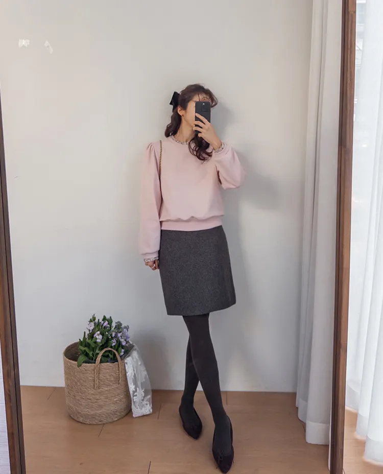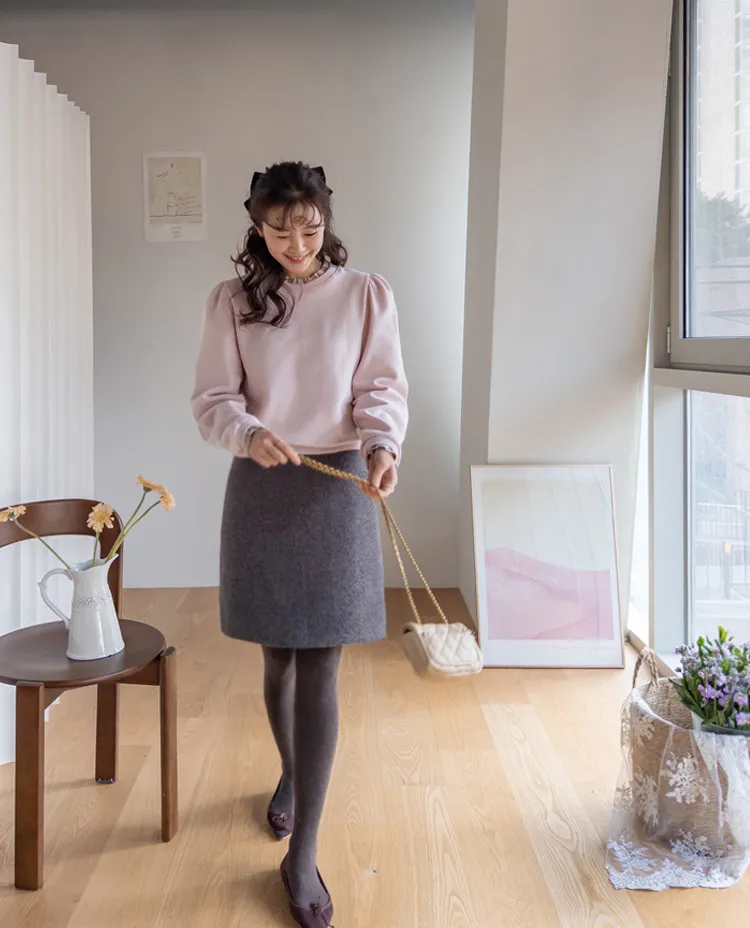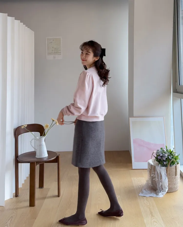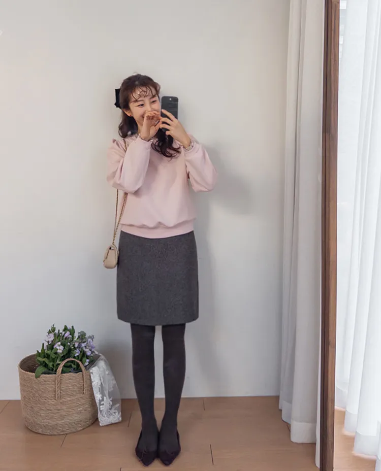 優雅修身厚實保暖後開衩穿搭短裙