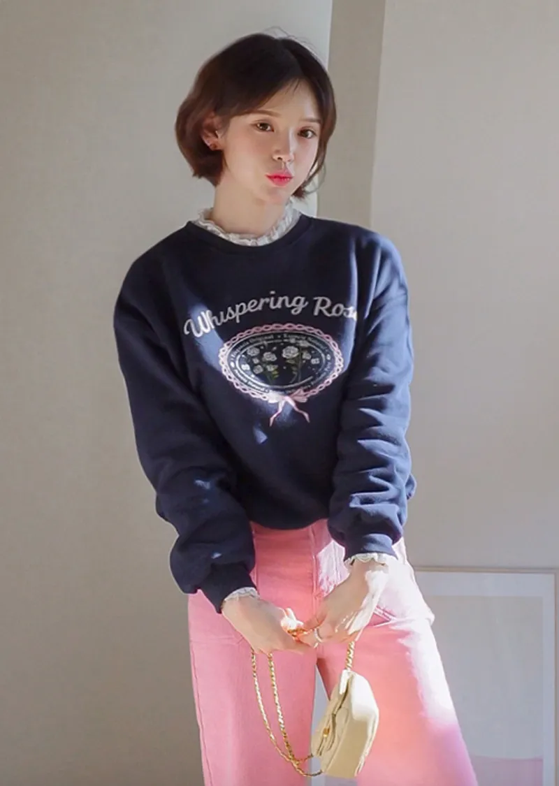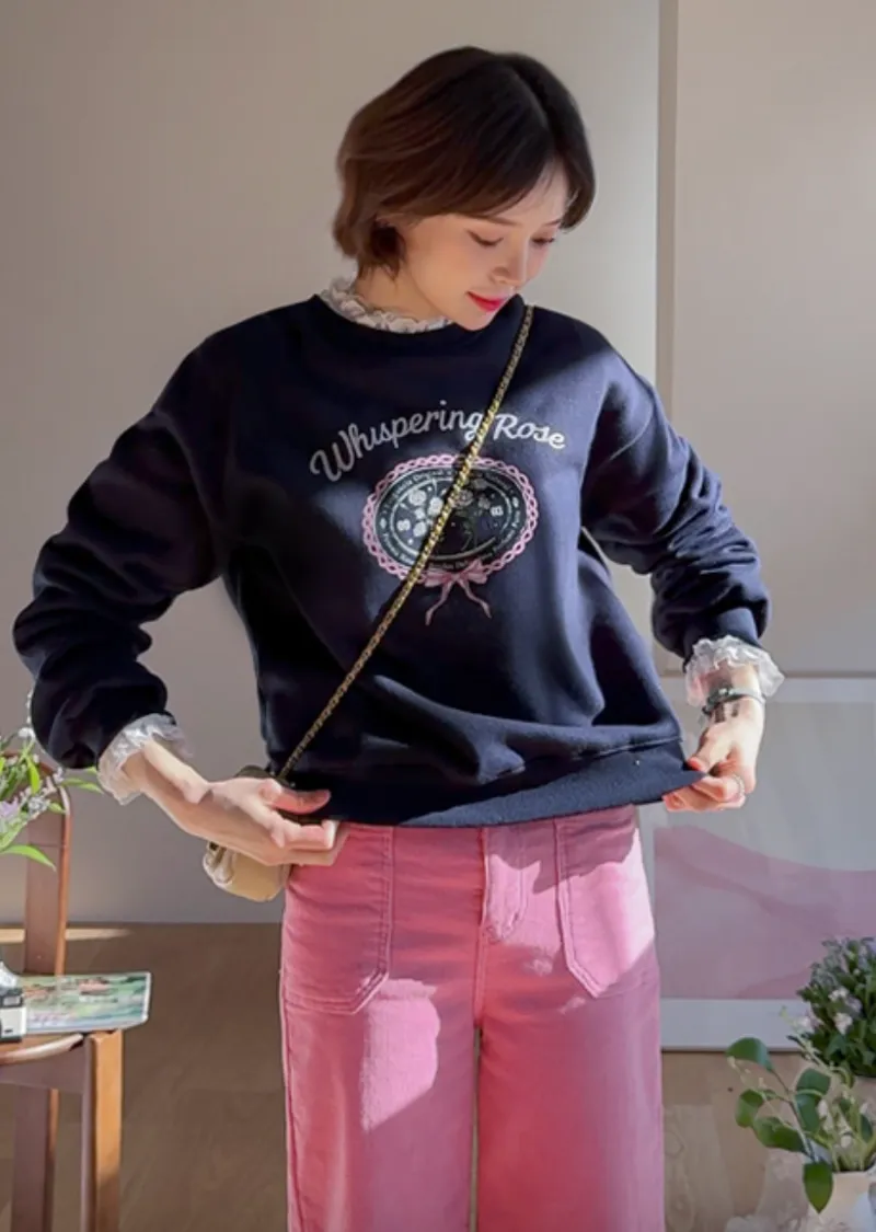 【一款印有字母和花卉圖案的可愛上衣】【一款柔軟輕盈的絨面上衣】【完美勾勒線條! 】【一款浪漫的日常單品,引人注目! 】