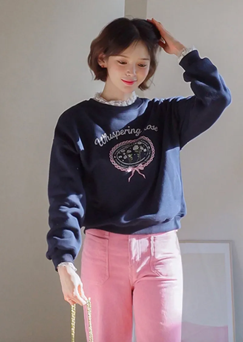 柔美領口袖末荷葉褶邊冬季疊穿舒適上衣