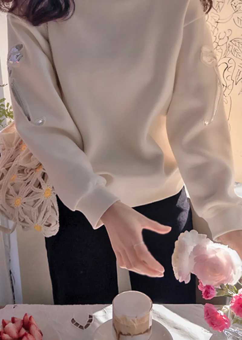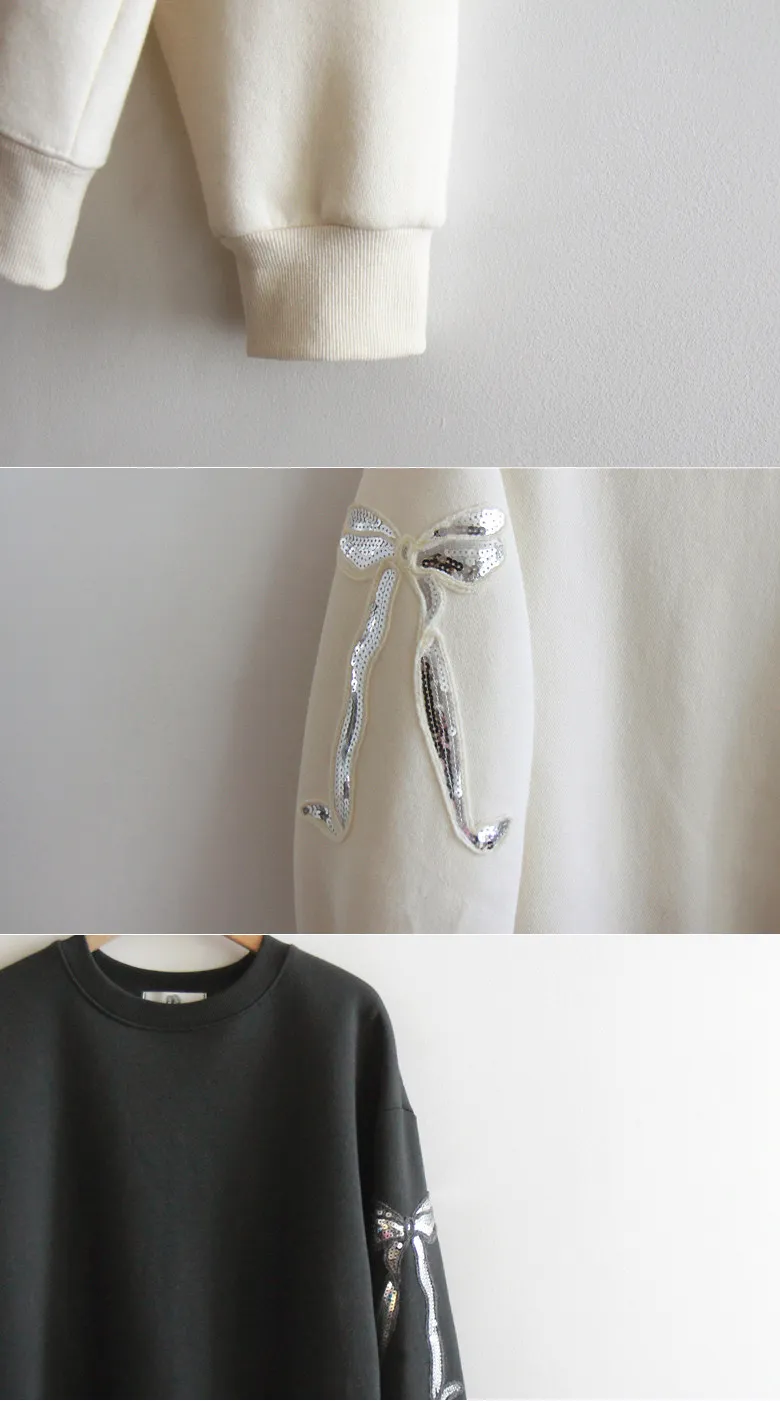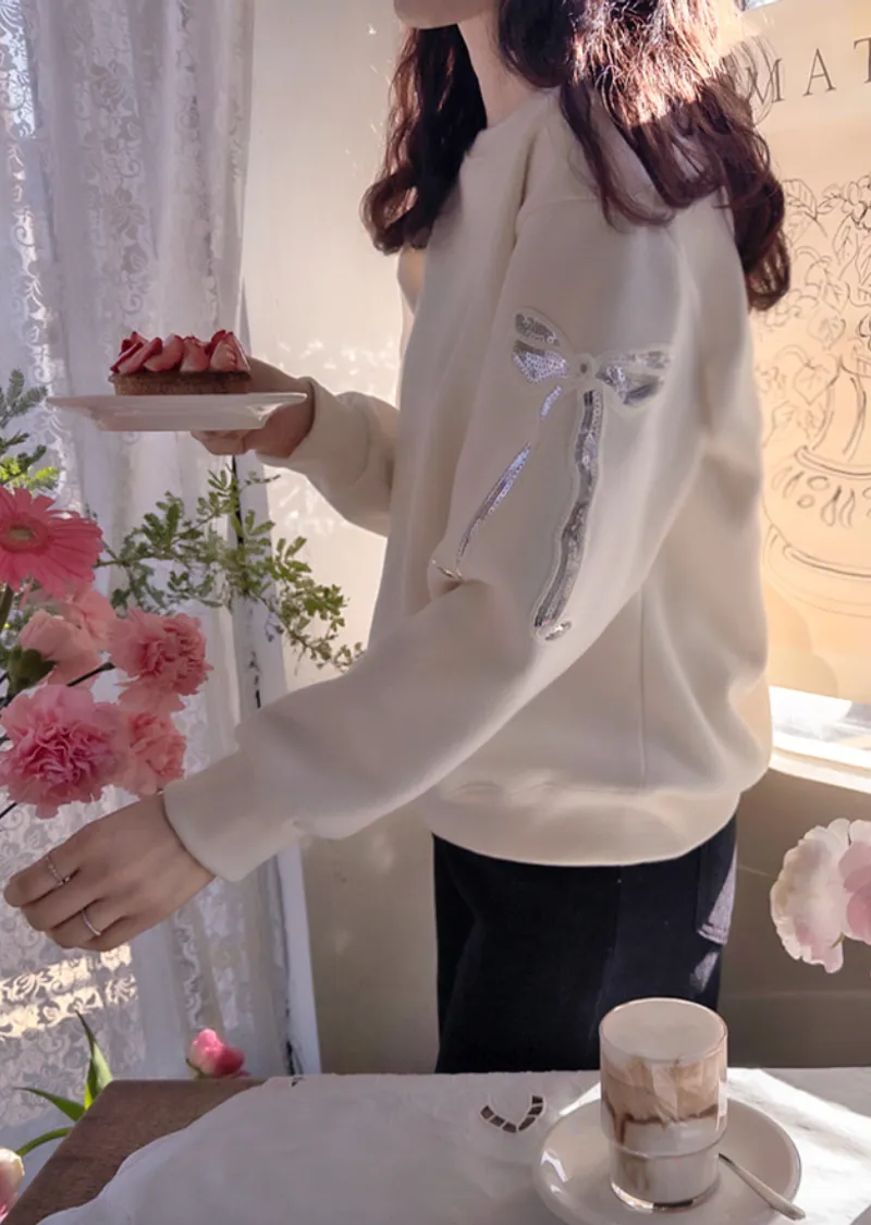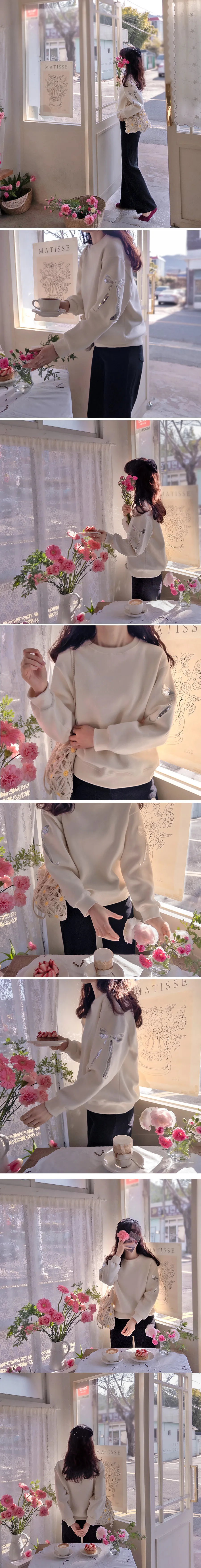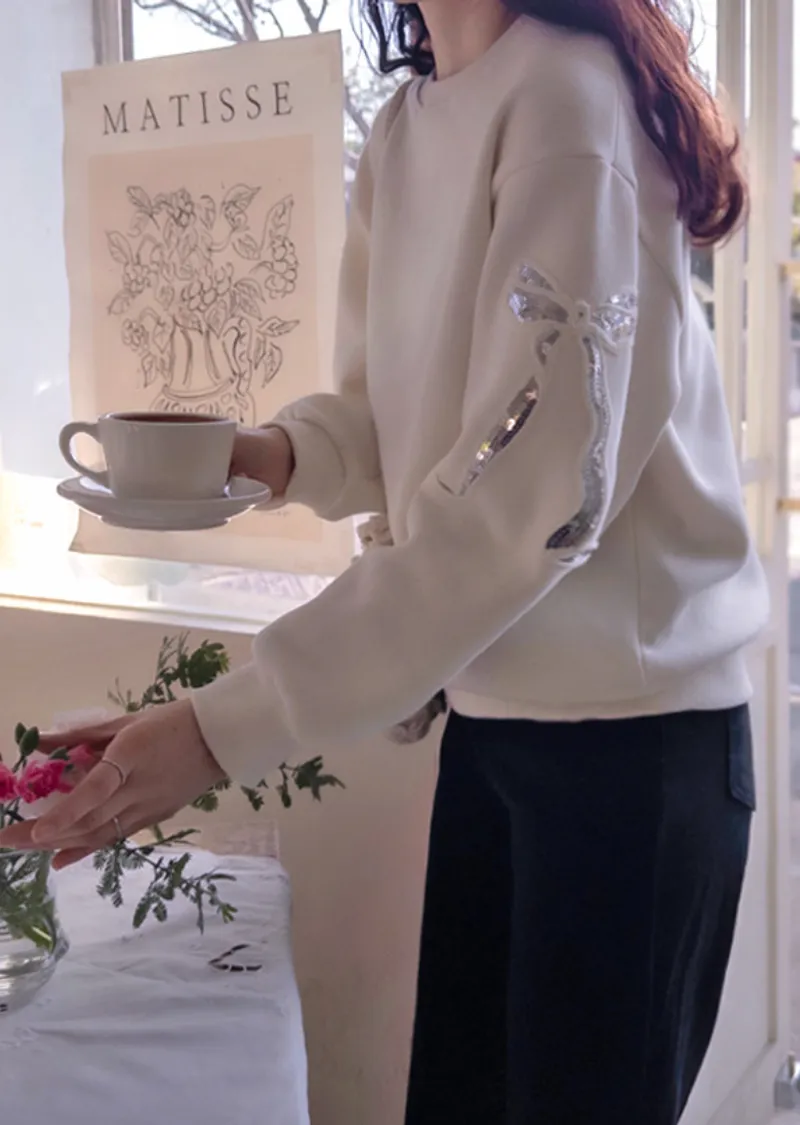 漂亮袖側蝴蝶結亮片刺繡穿搭上衣