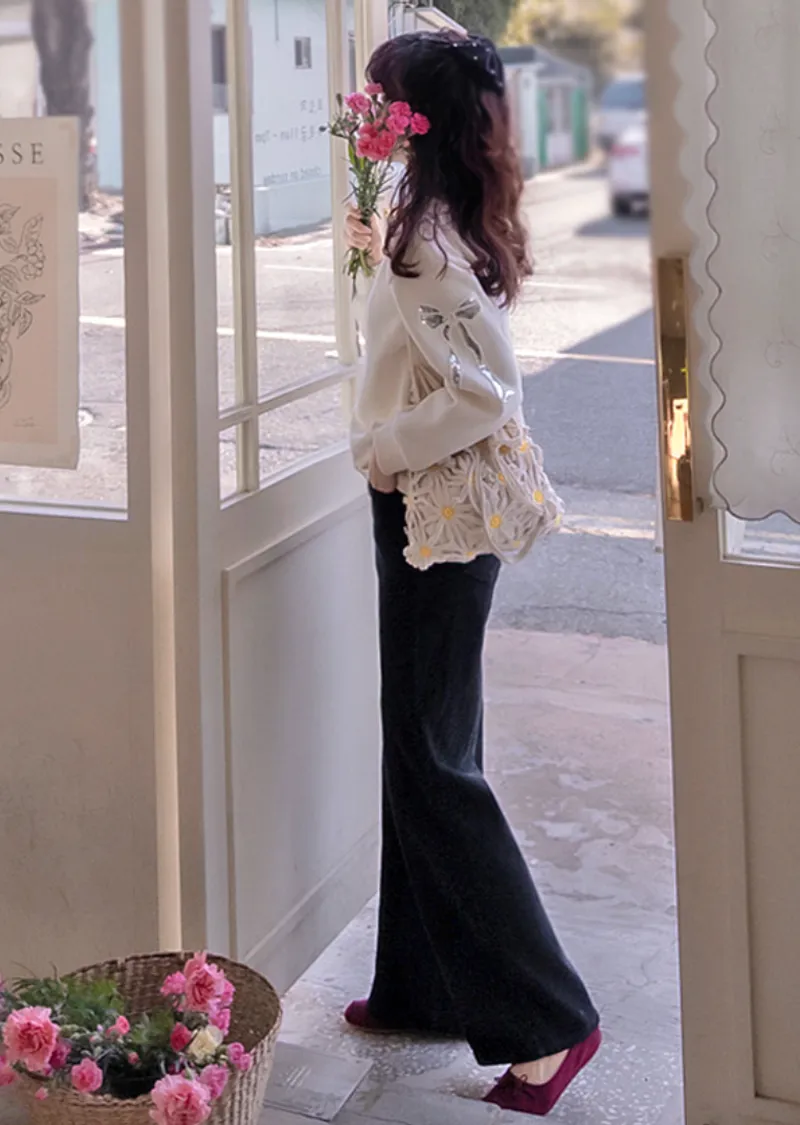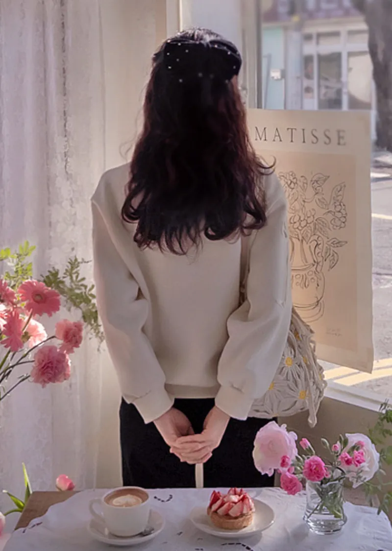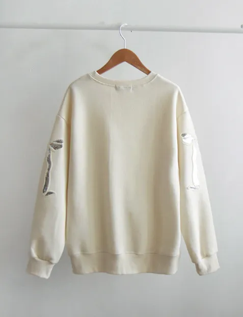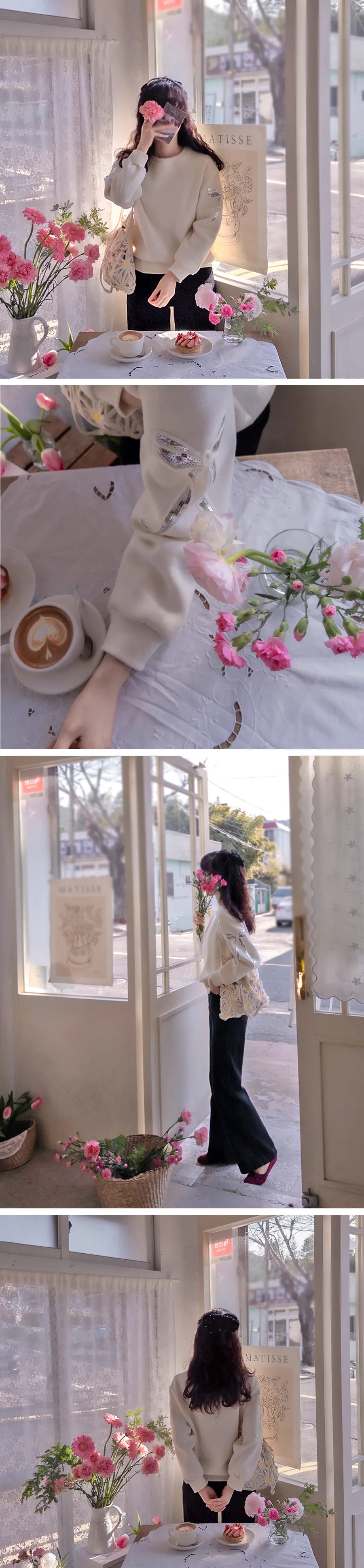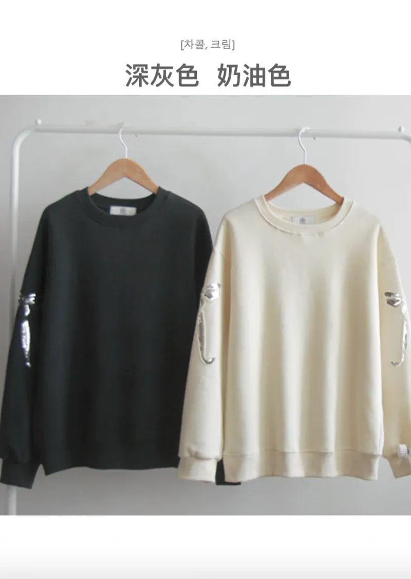 漂亮袖側蝴蝶結亮片刺繡穿搭上衣