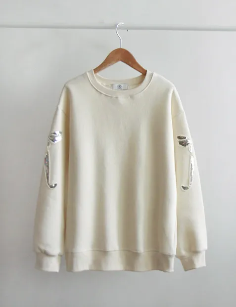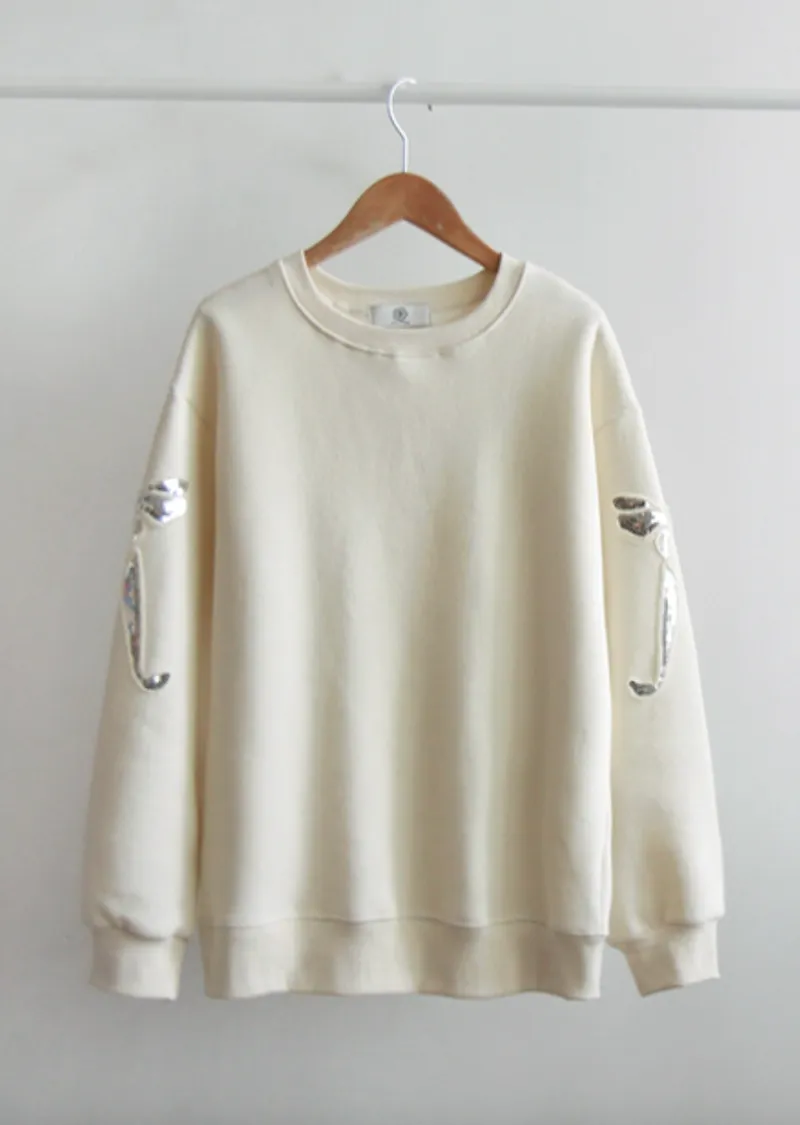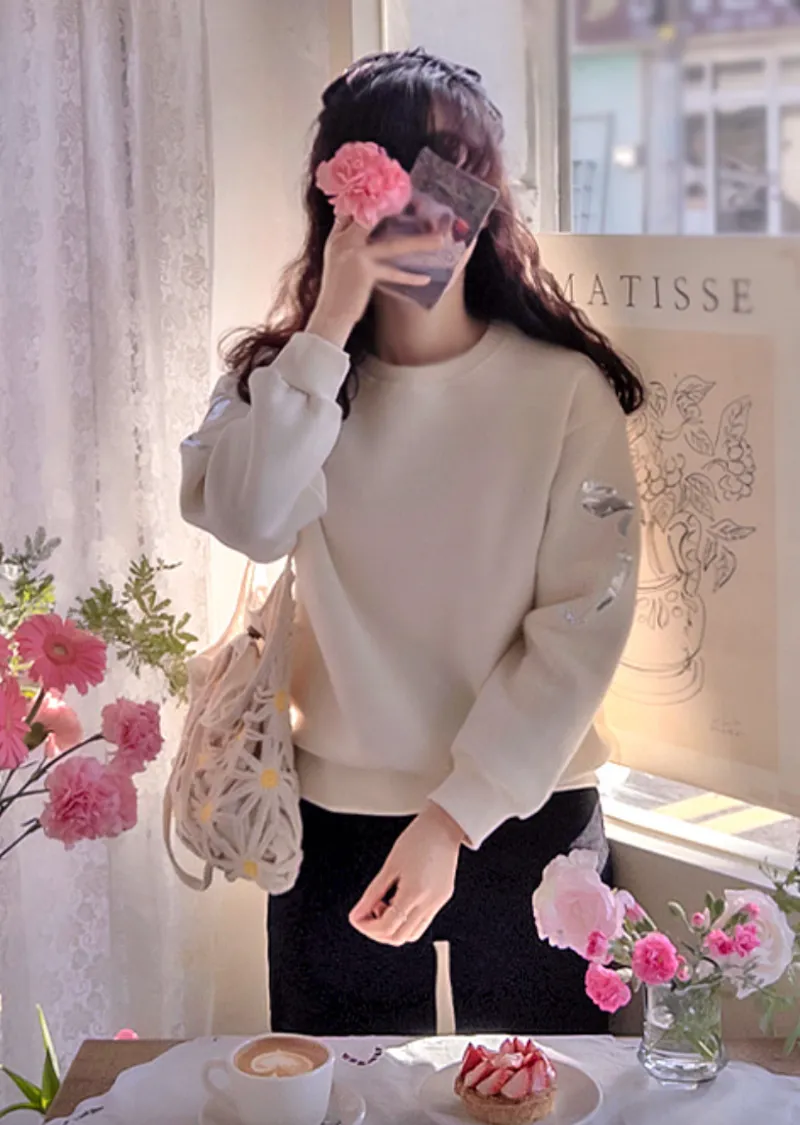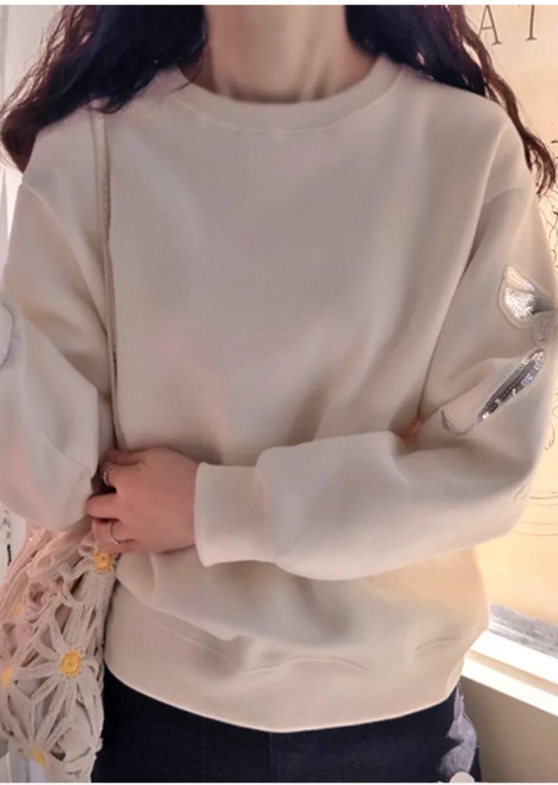 【內襯:保暖抓絨】【袖子飾有精美亮片緞帶刺繡】【一款溫暖柔軟的日常穿搭抓絨上衣】【一款設計精緻的保暖上衣,非常適合日常穿著】【一款帶有溫暖柔軟抓絨內襯的精美上衣】