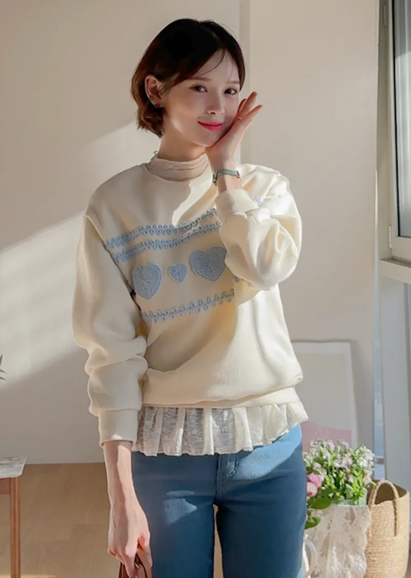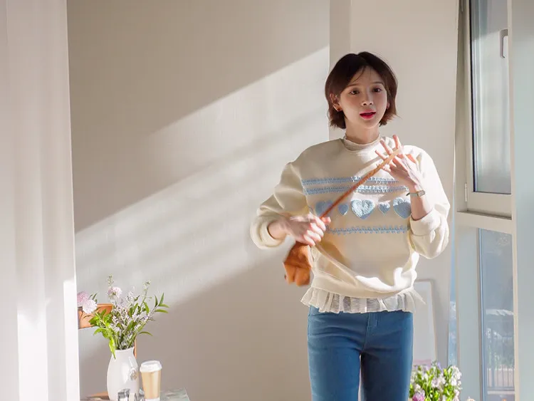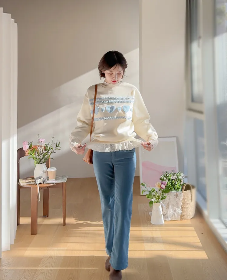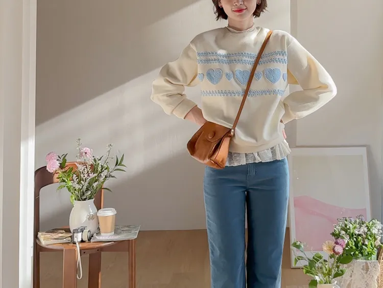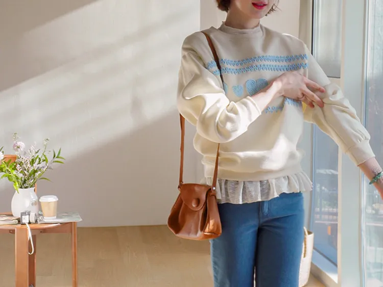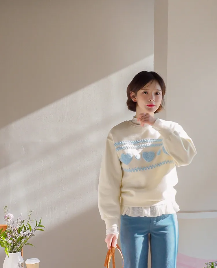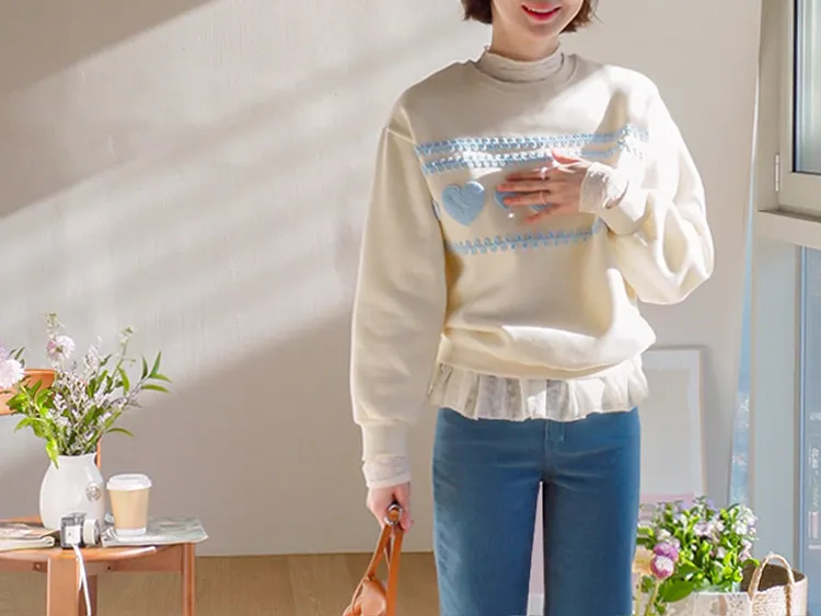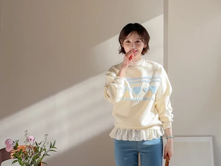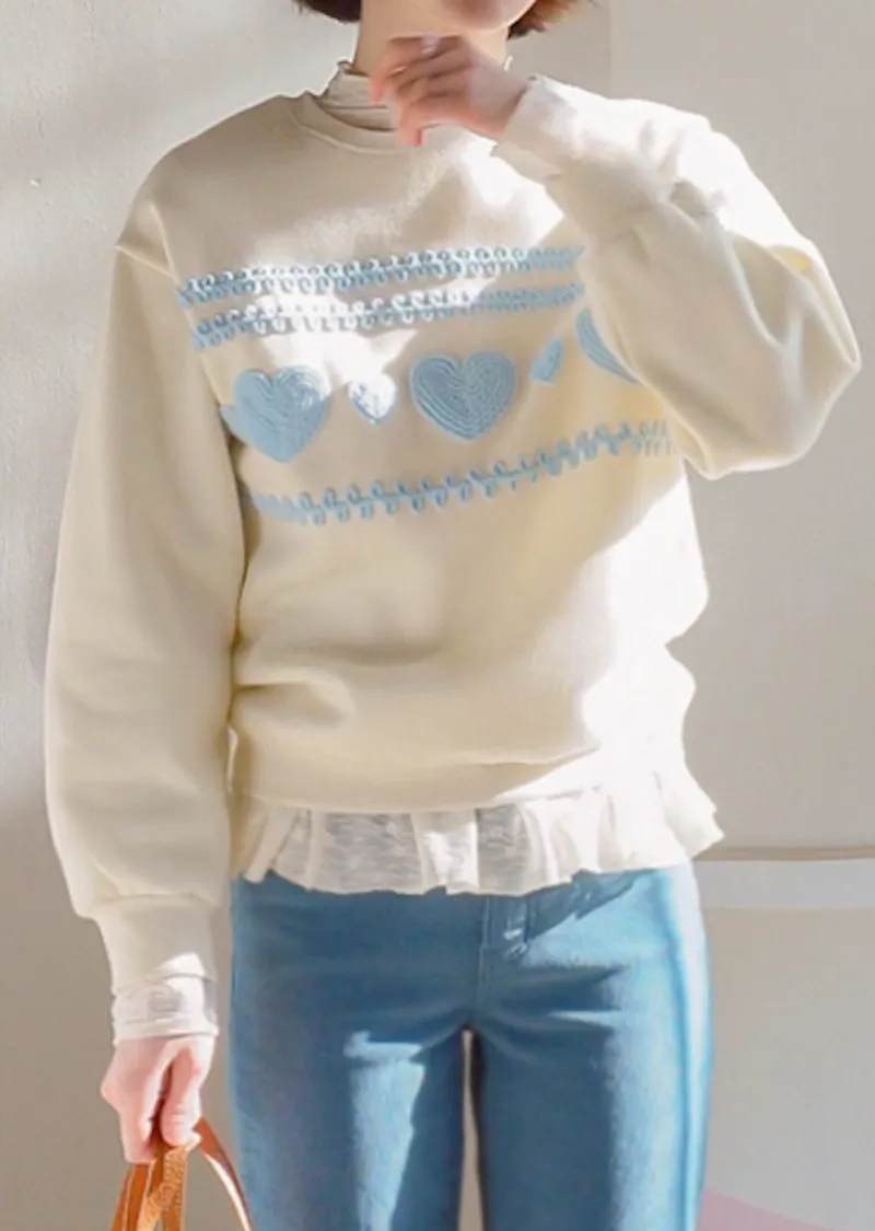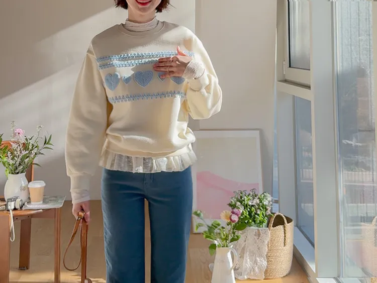 【立體針織刺繡細節超可愛】【內裡抓絨超溫暖舒適~】【寬鬆版型,完美遮掩身形】【推薦日常穿著! 】