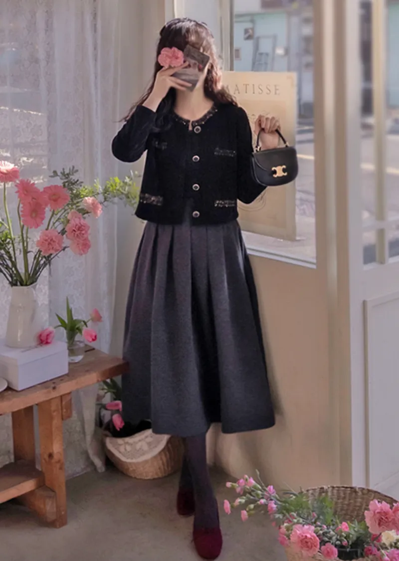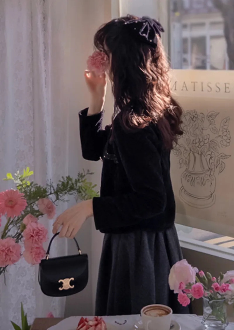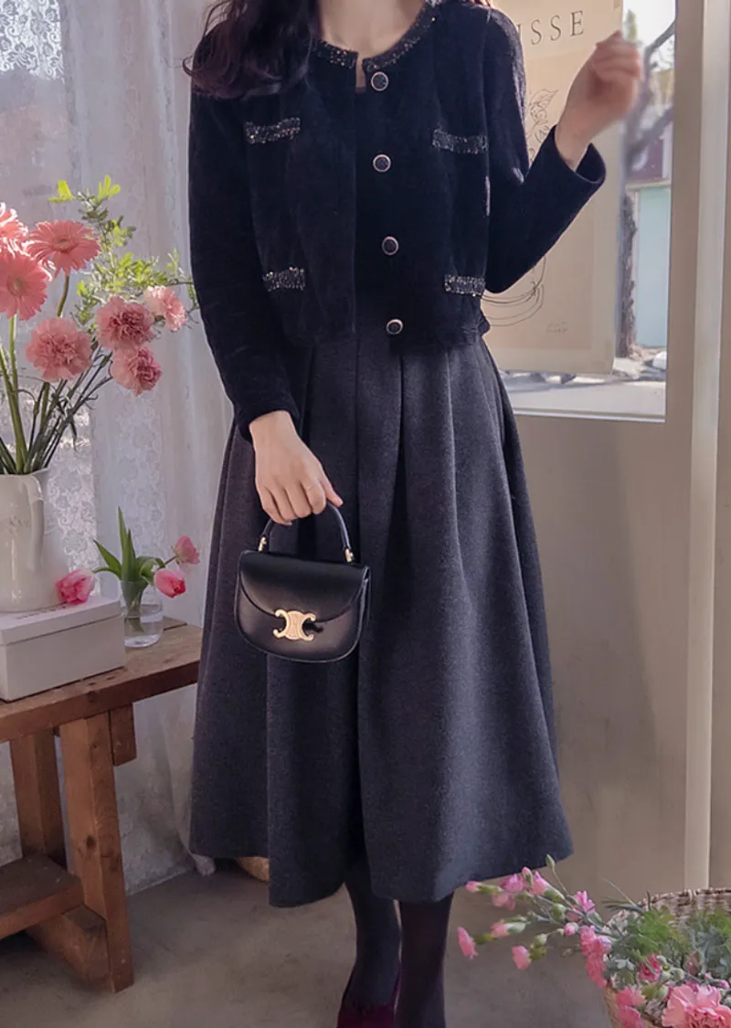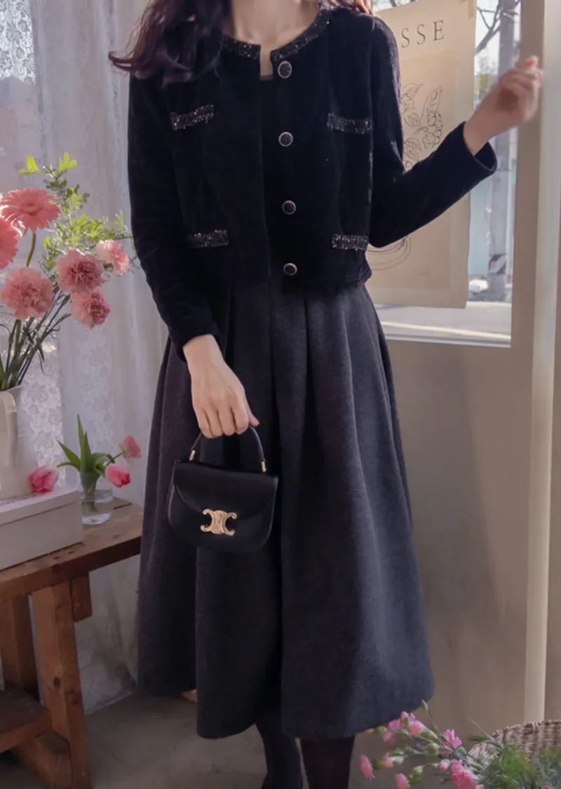 優雅迷人褶襉設計百搭絨質中長裙
