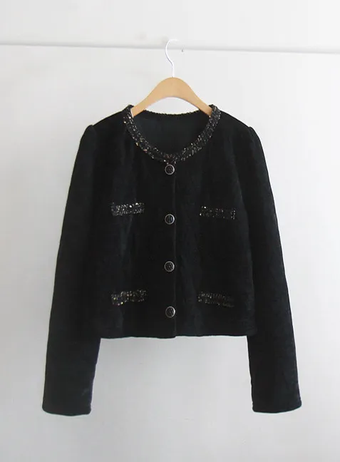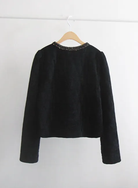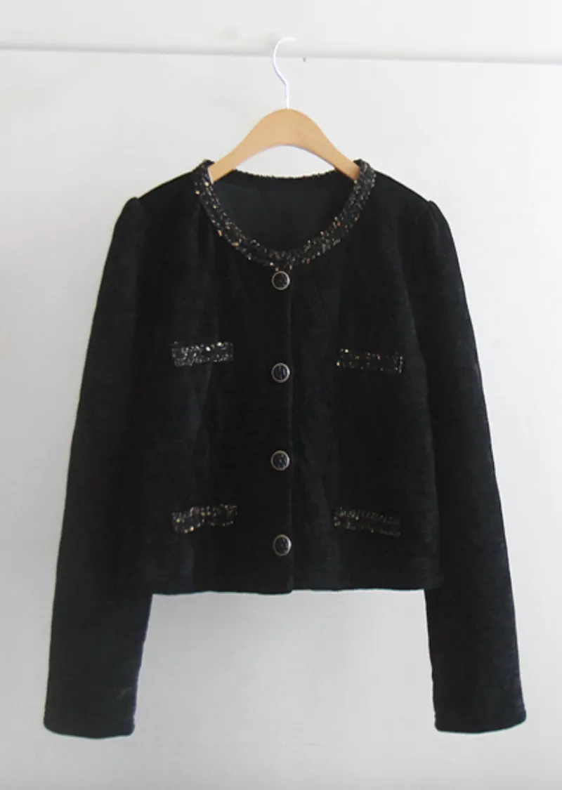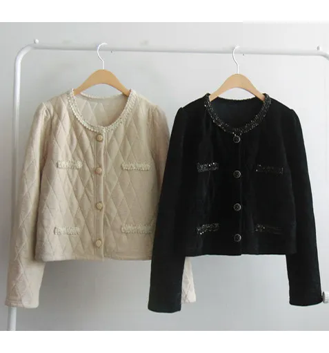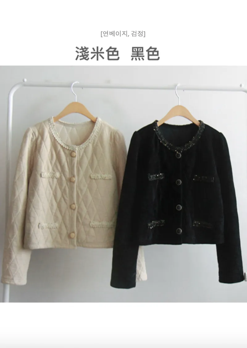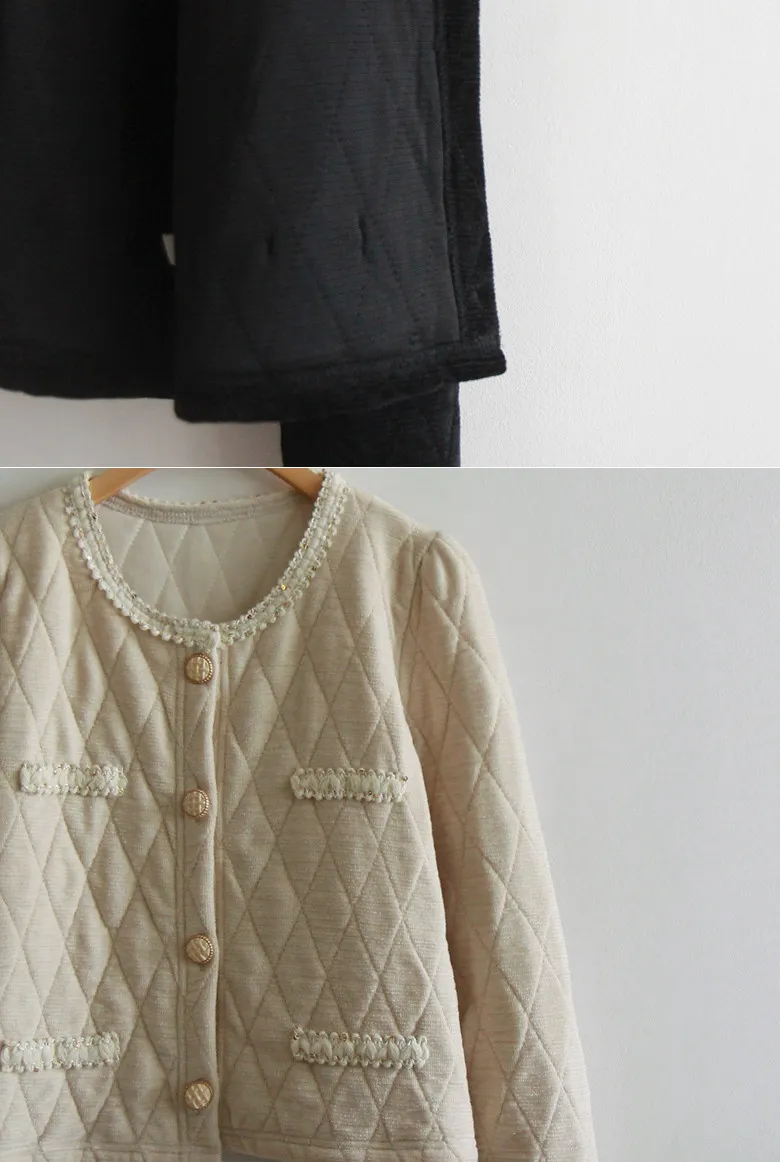 奢華珠串點綴邊鈕扣短款絎縫外套