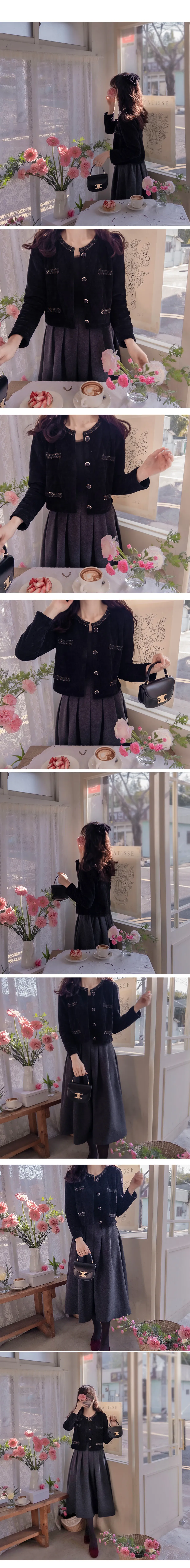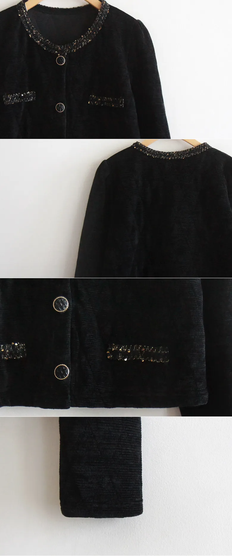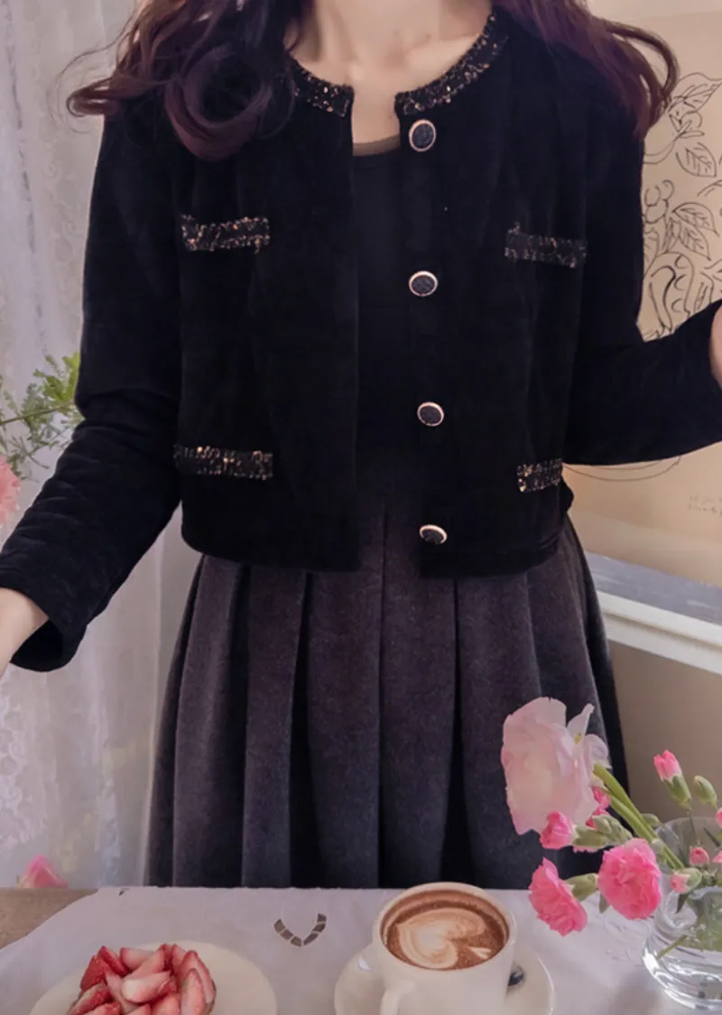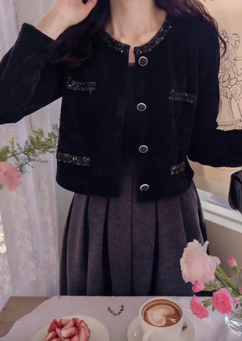 奢華珠串點綴邊鈕扣短款絎縫外套