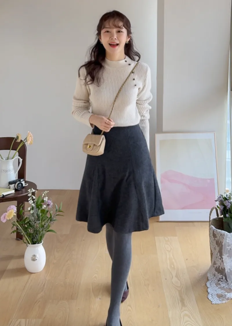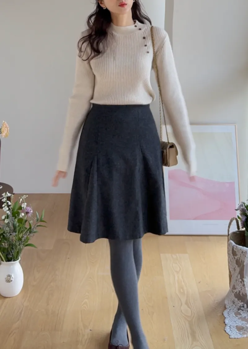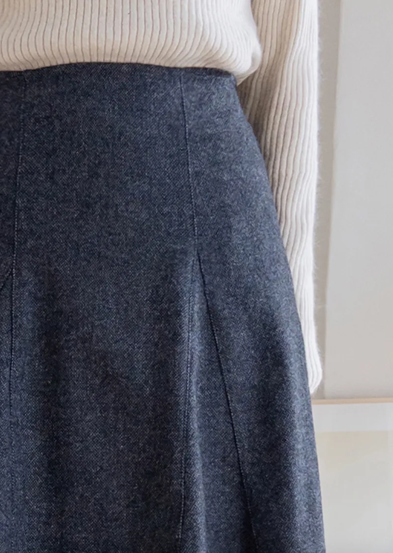 【漂亮的及膝短裙,前縫線設計♡】【50%羊毛材質,即使在冬天也能保暖~】【非常適合打造女性化且復古的風格】【一件能夠完美展現時尚性感魅力的單品】