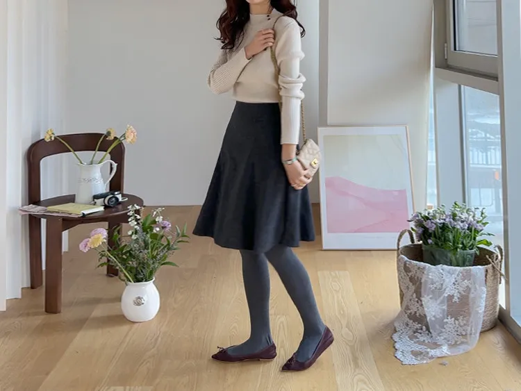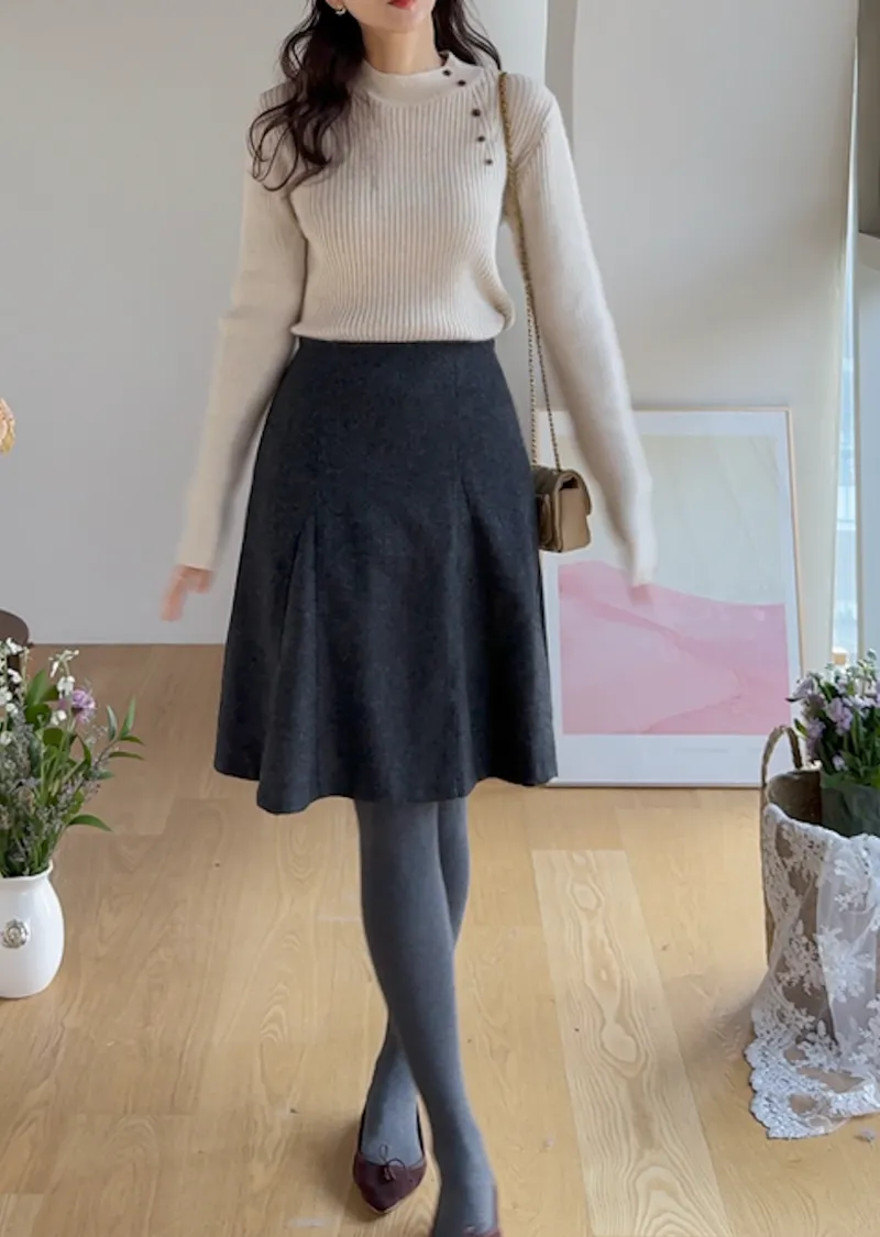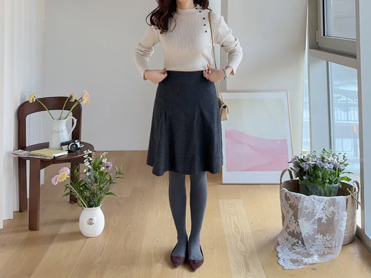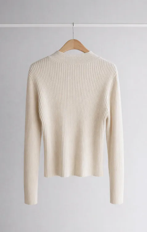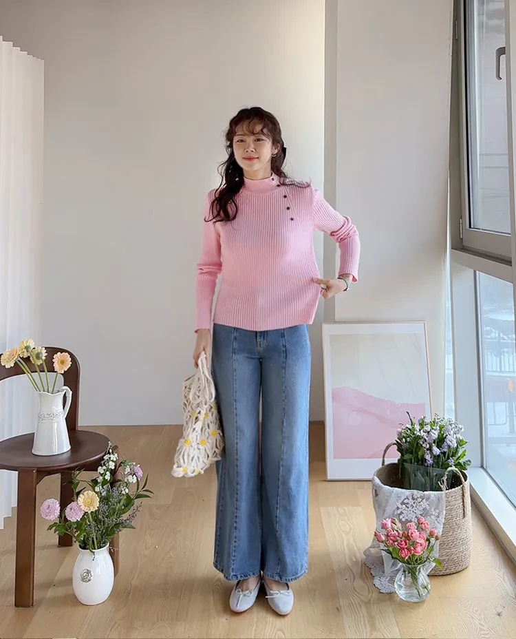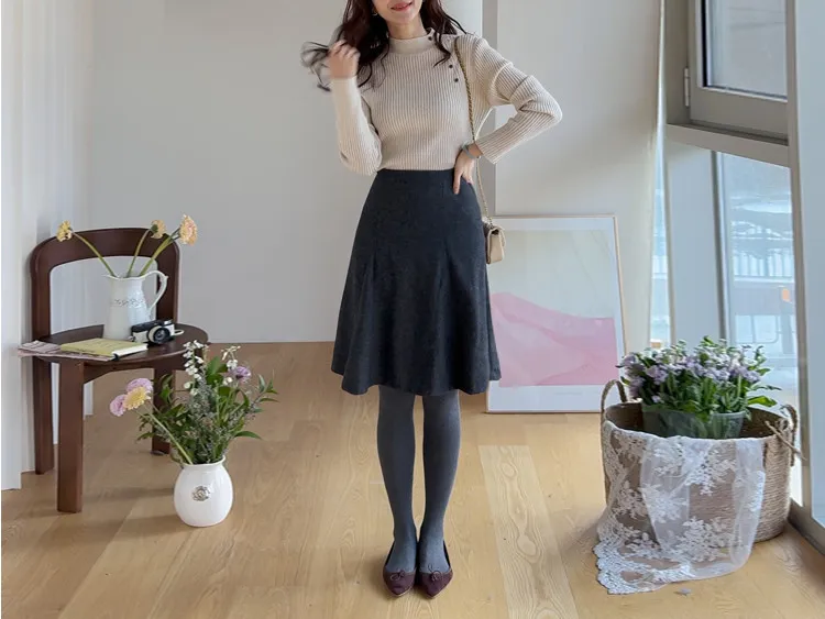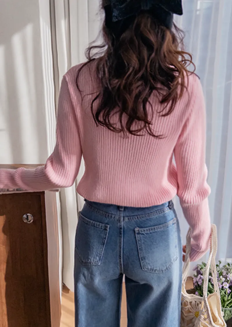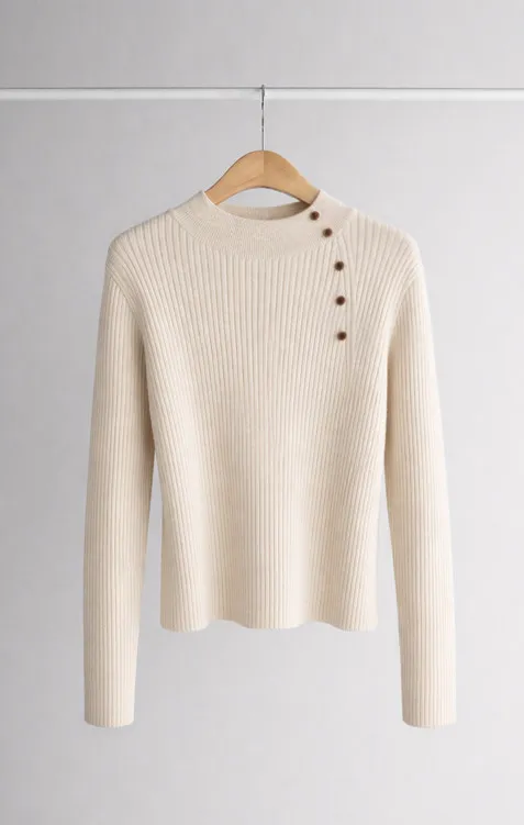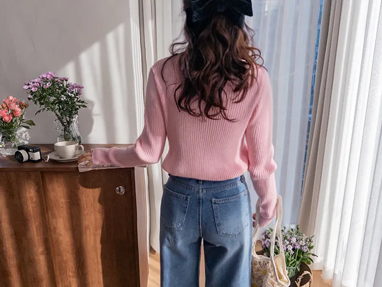 感性半領羅紋修身線條點綴鈕扣裝飾針織上衣