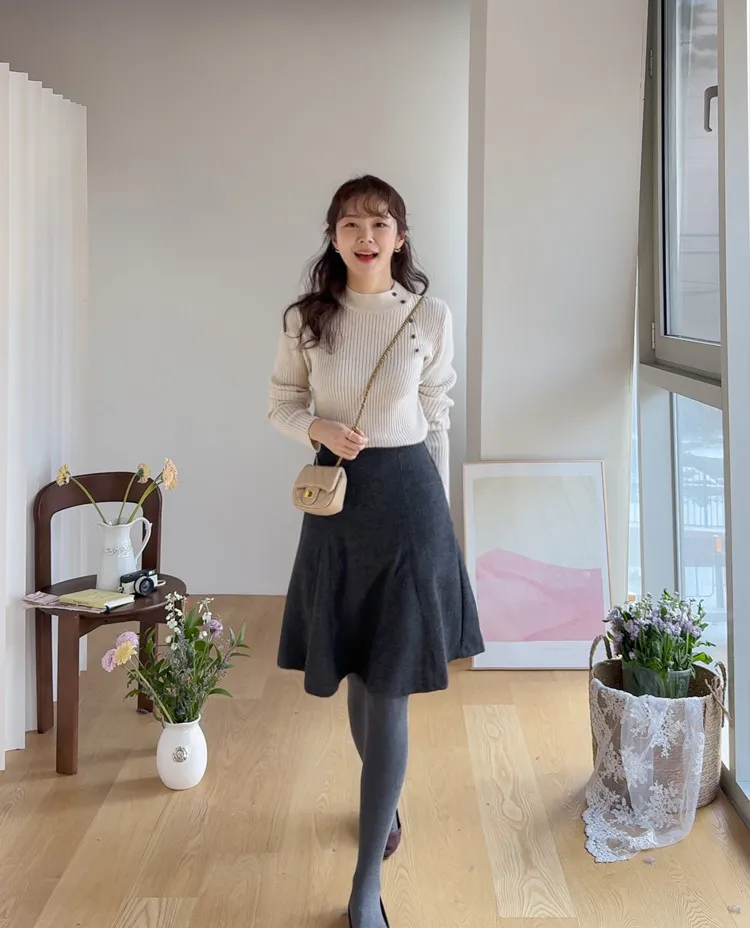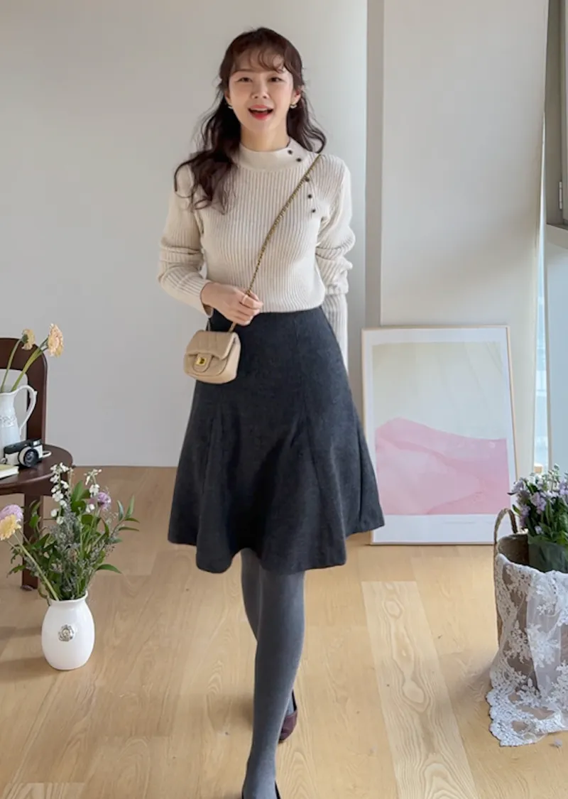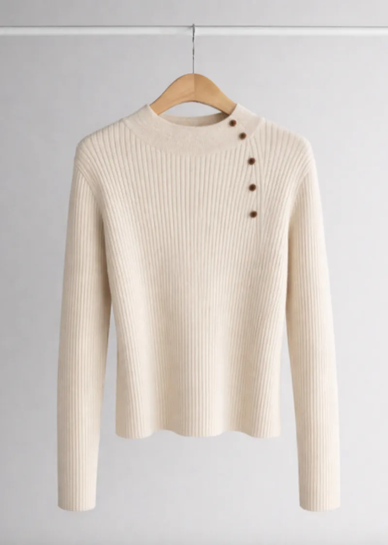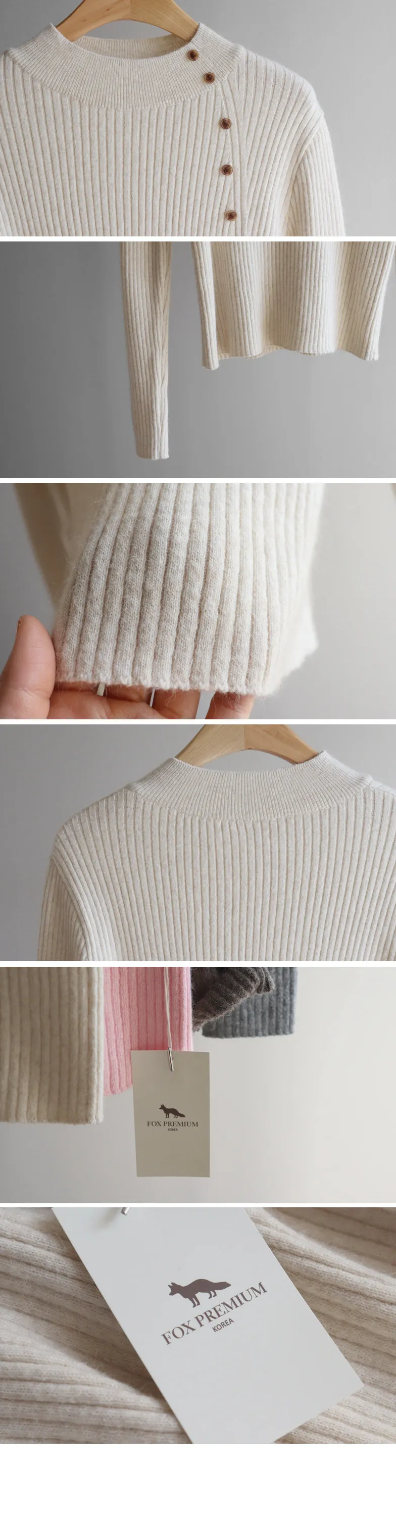 【奢華針織布料,狐狸毛與羊毛混紡】【鈕扣增添精緻感】【垂直羅紋紋理打造修身線條】【舒適日常單品,彈性適中】