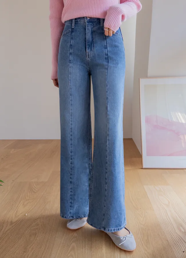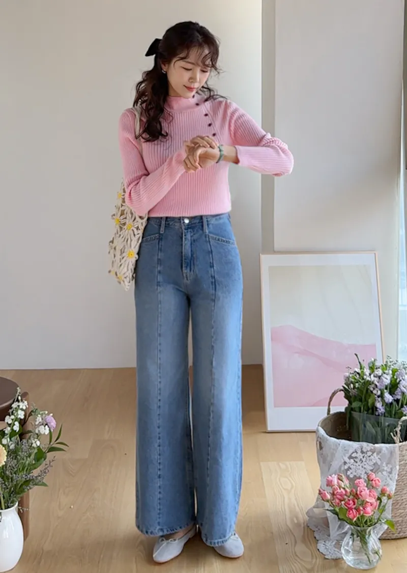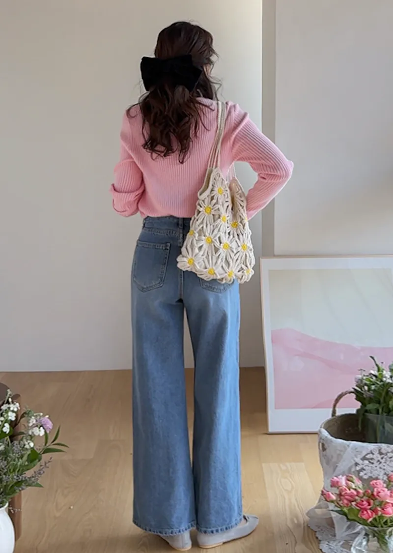 魅力精緻剪裁顯瘦直筒寬版牛仔褲