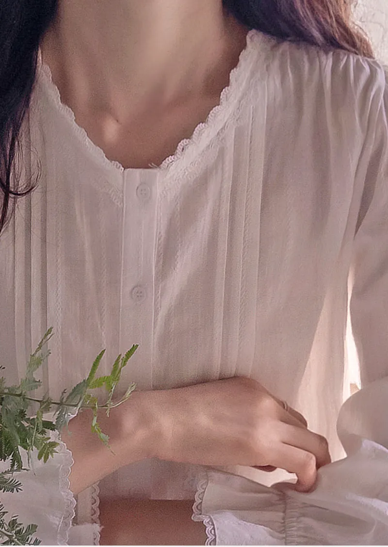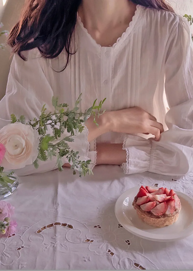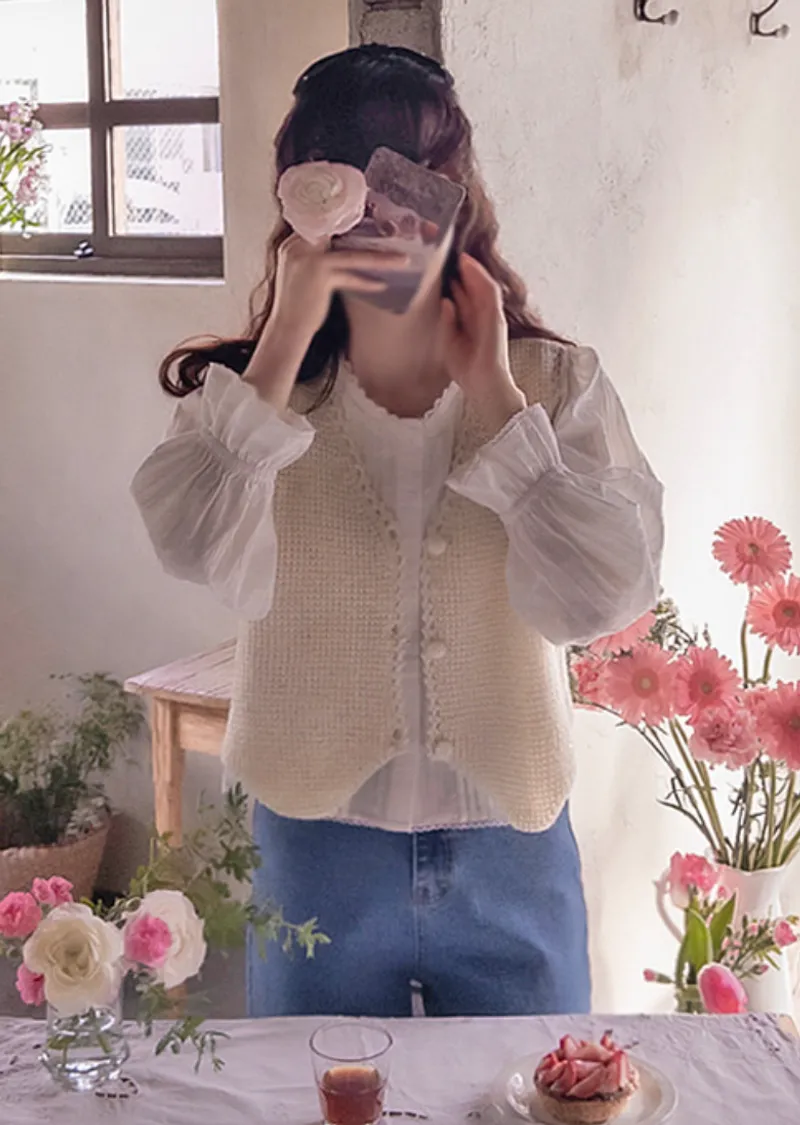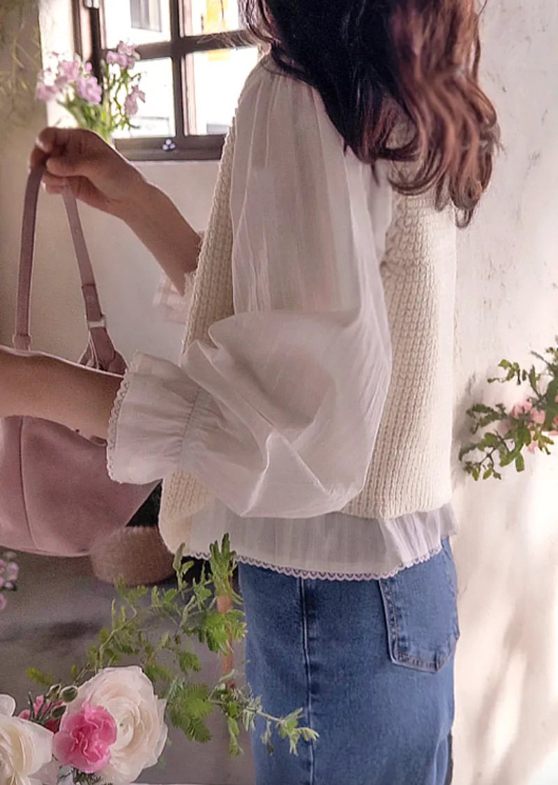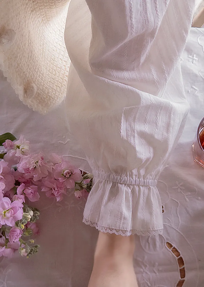 【袖帶設計】【領口精美,飾以波浪蕾絲的可愛上衣】【蕾絲裝飾盡顯精緻優雅】【蕾絲領口優雅迷人上衣】【褶襉設計,精緻優雅】