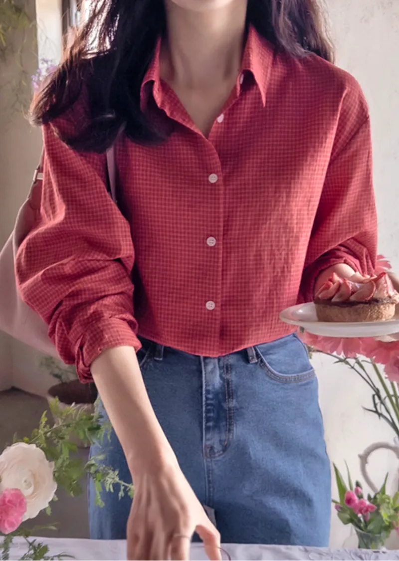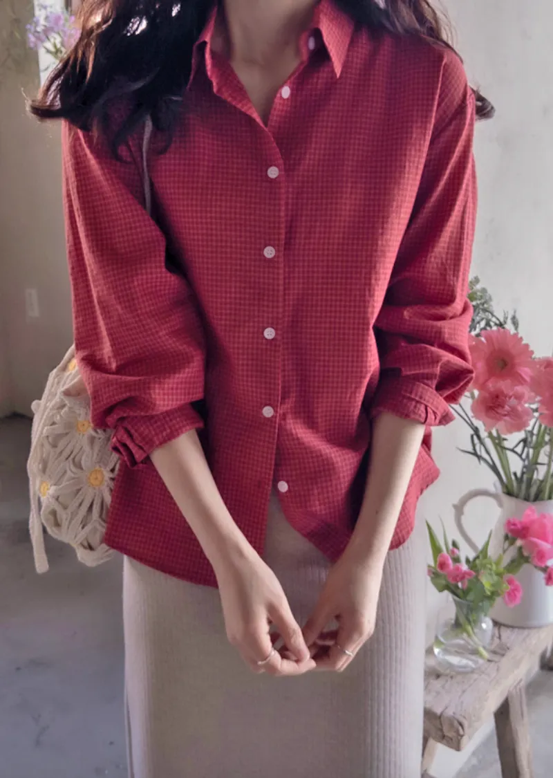 【春季新品】【一款寬鬆舒適的襯衫】【一款格紋襯衫,既充滿春日氣息,又保持了精緻修身的版型】【一款從現在開始就能穿一整個季節的襯衫】【一款敞開或扣上都非常漂亮的襯衫】【推薦日常百搭襯衫】