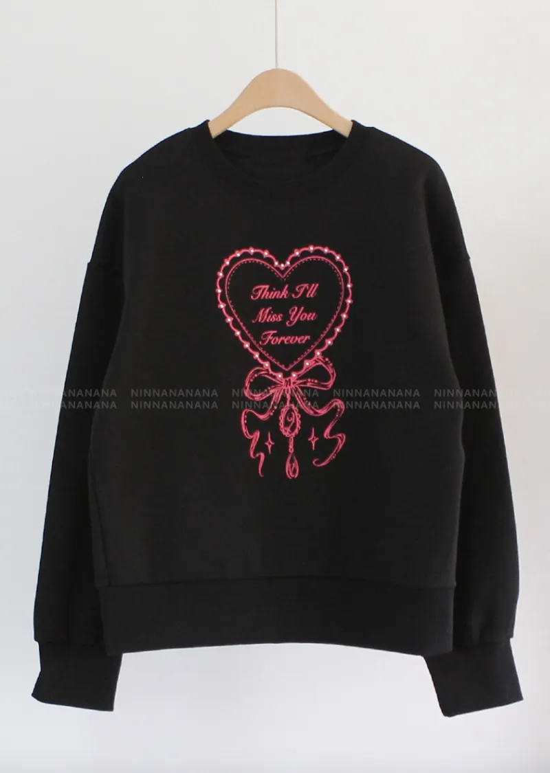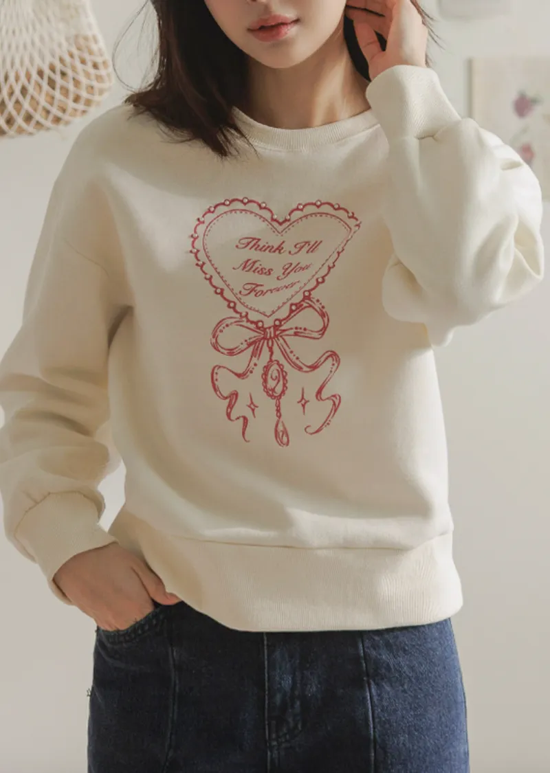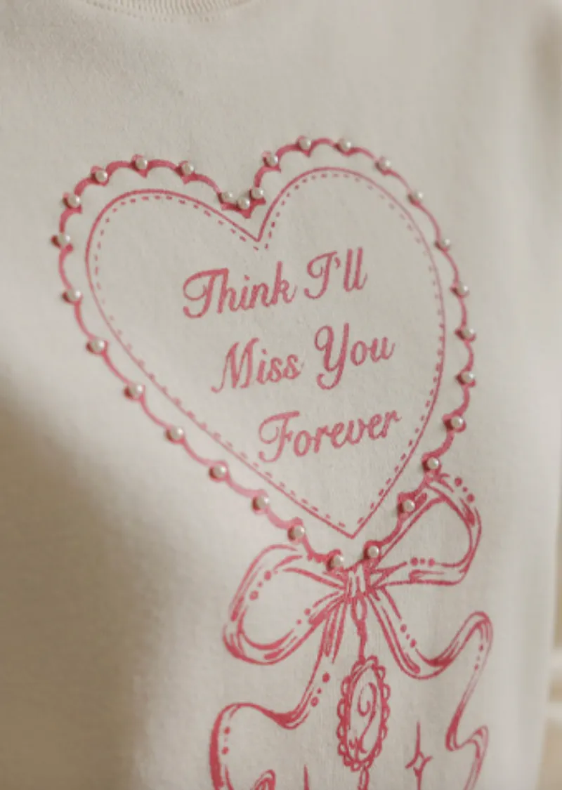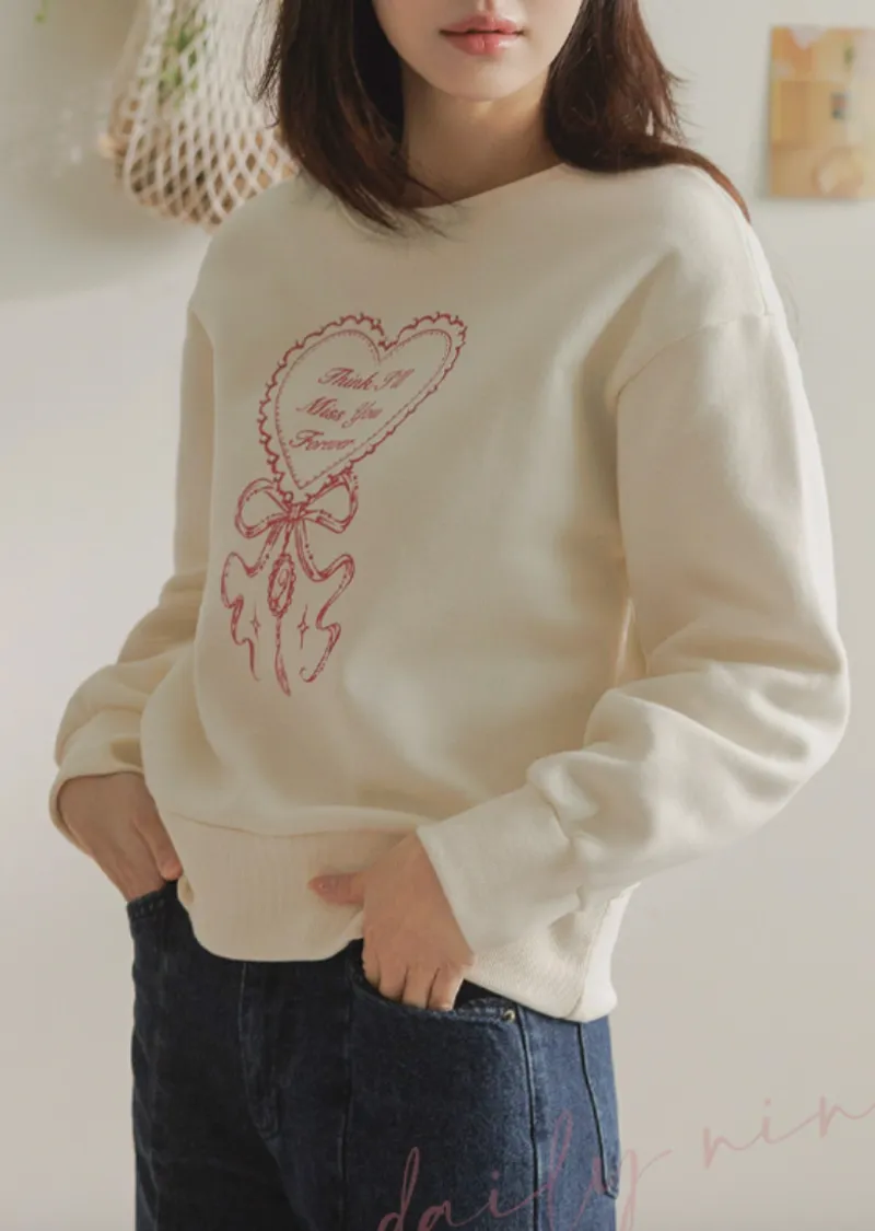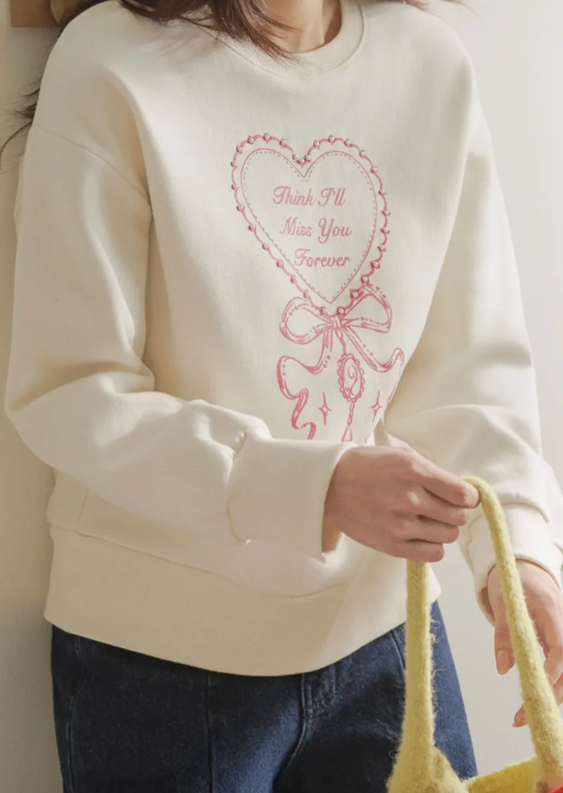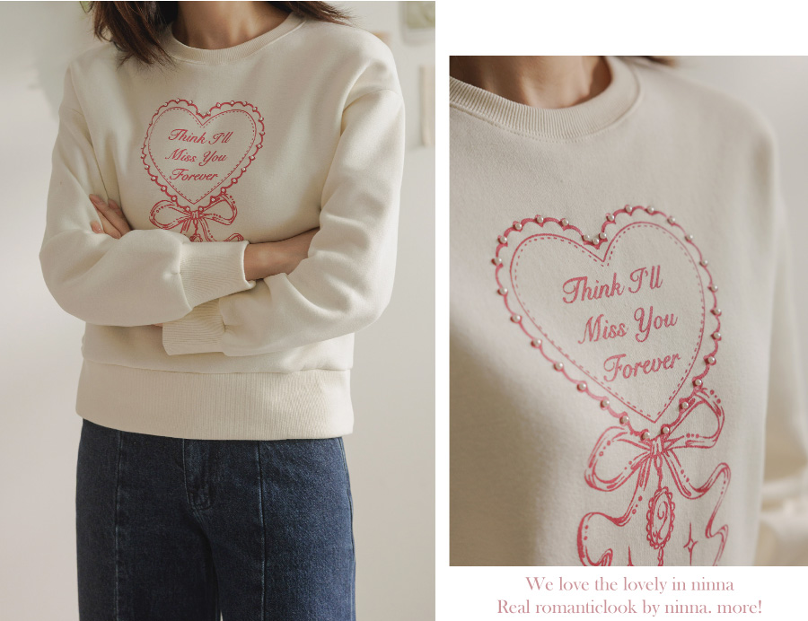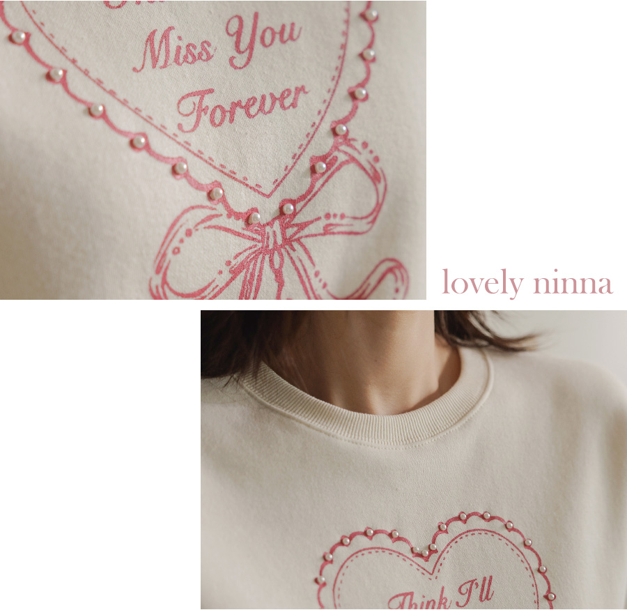 精緻心形緞帶印花點綴珍珠裝飾穿搭上衣