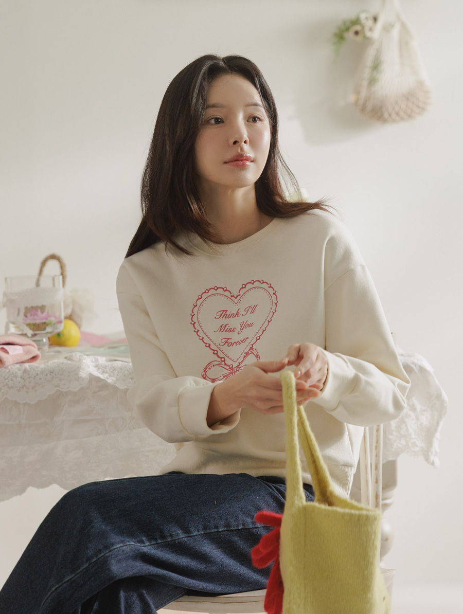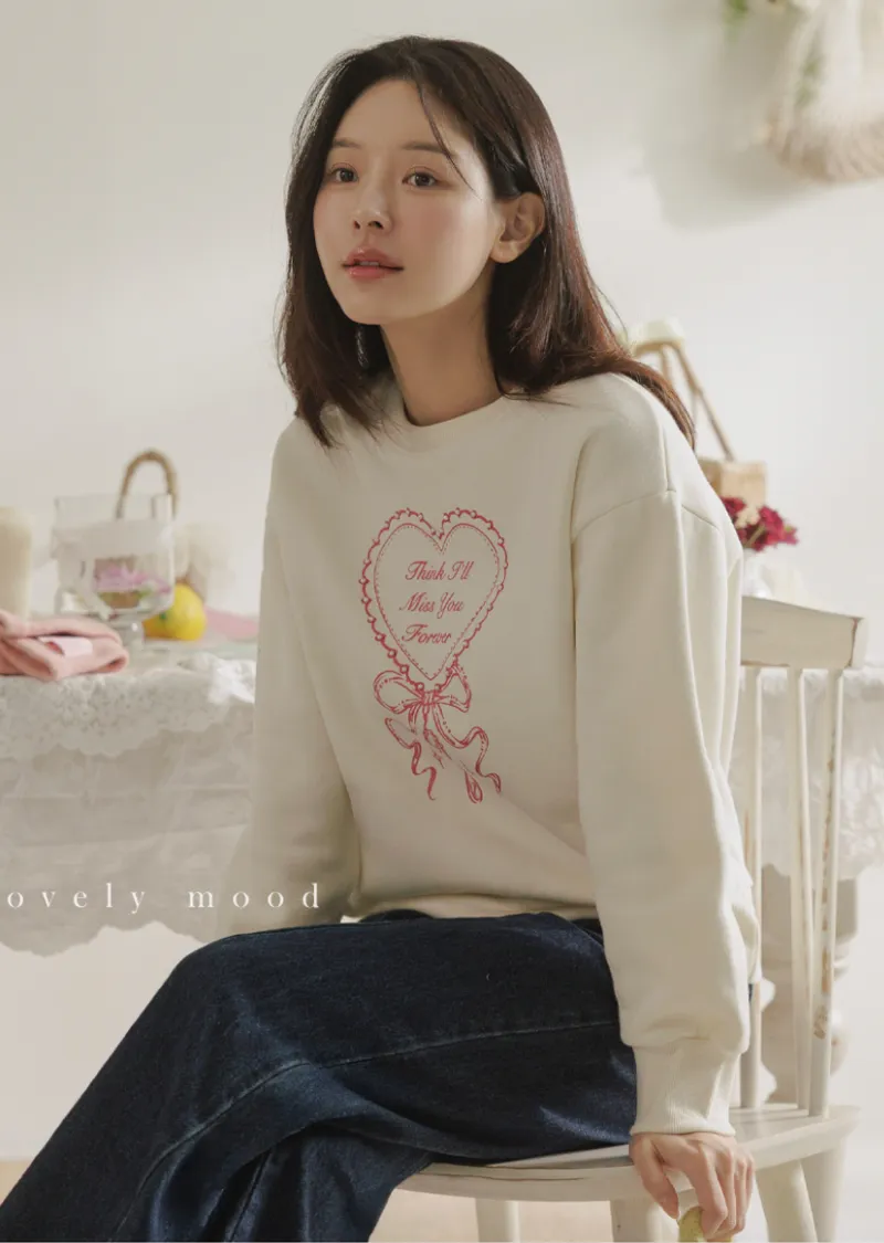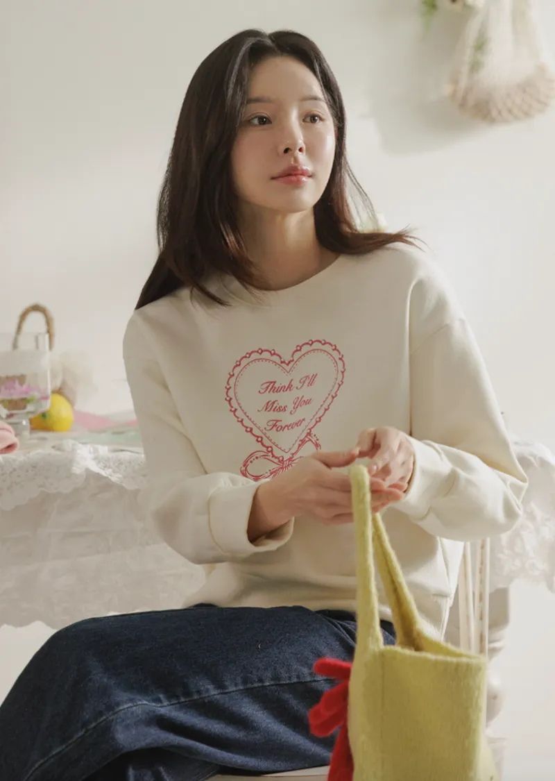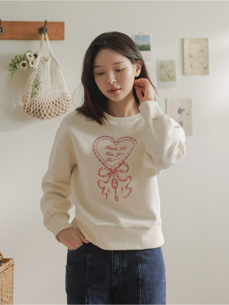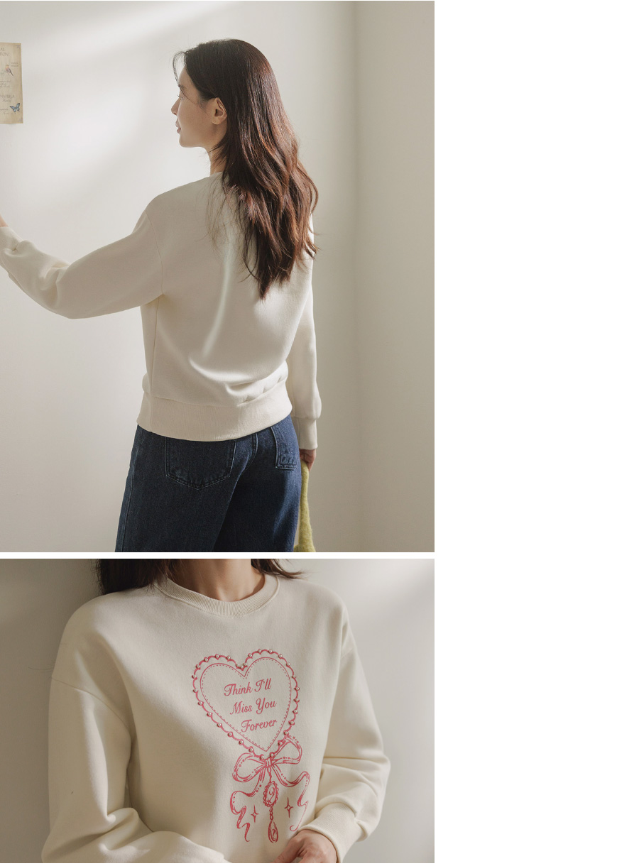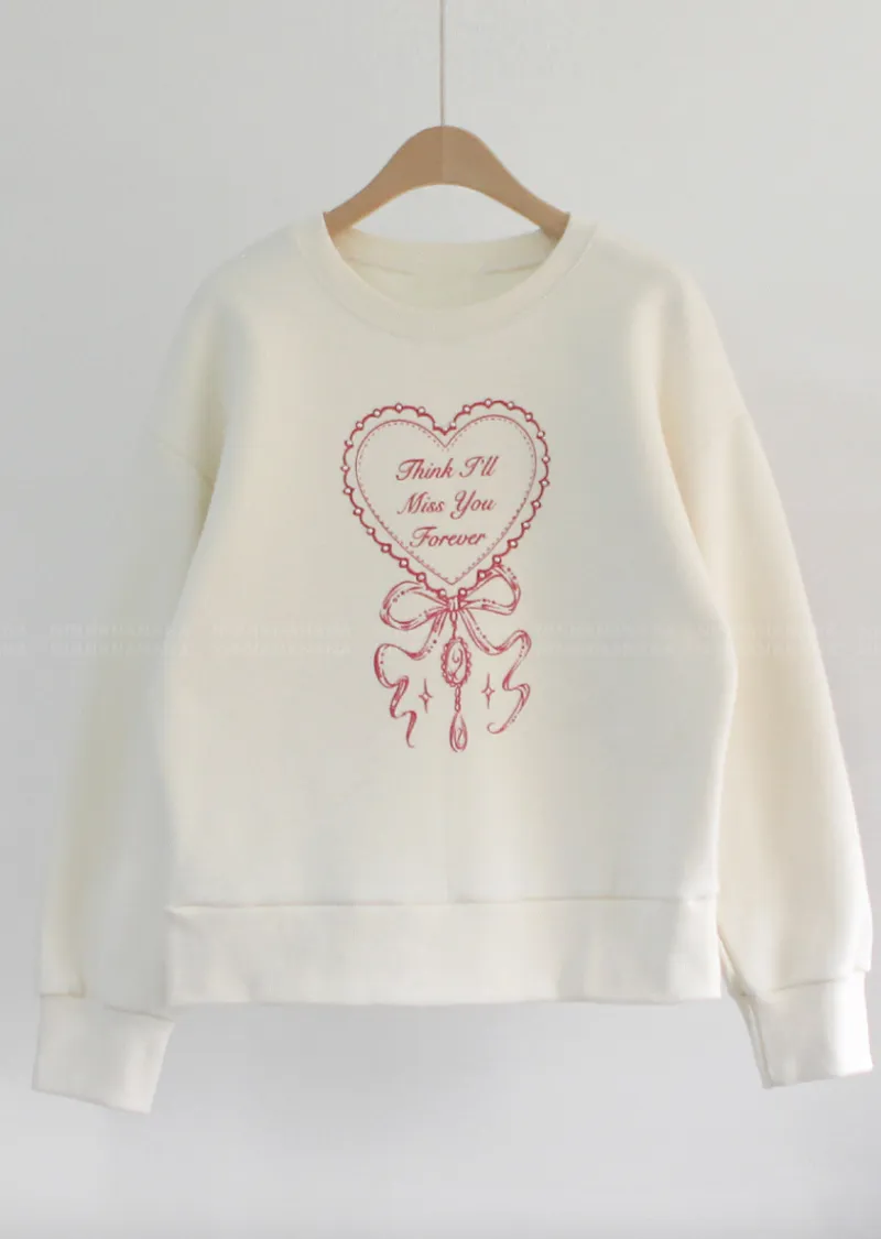 精緻心形緞帶印花點綴珍珠裝飾穿搭上衣