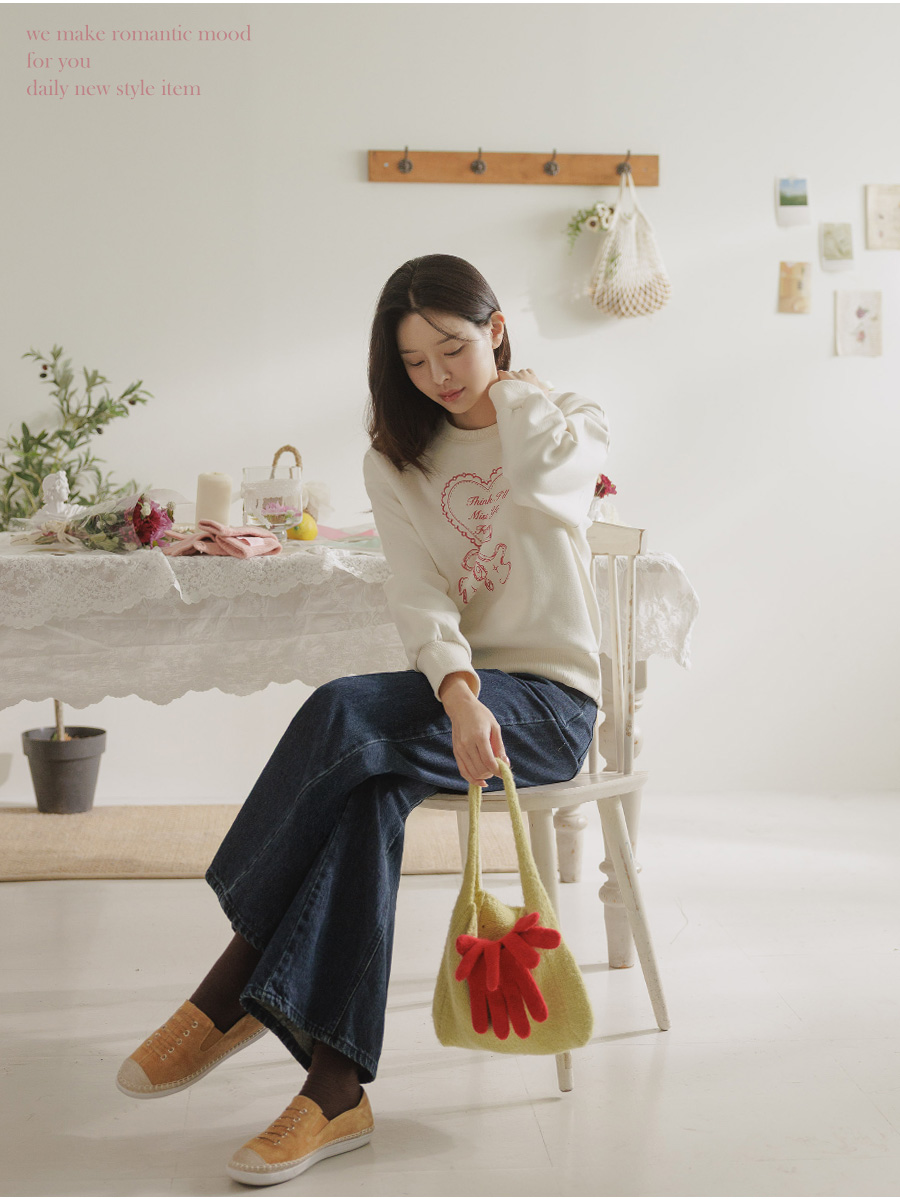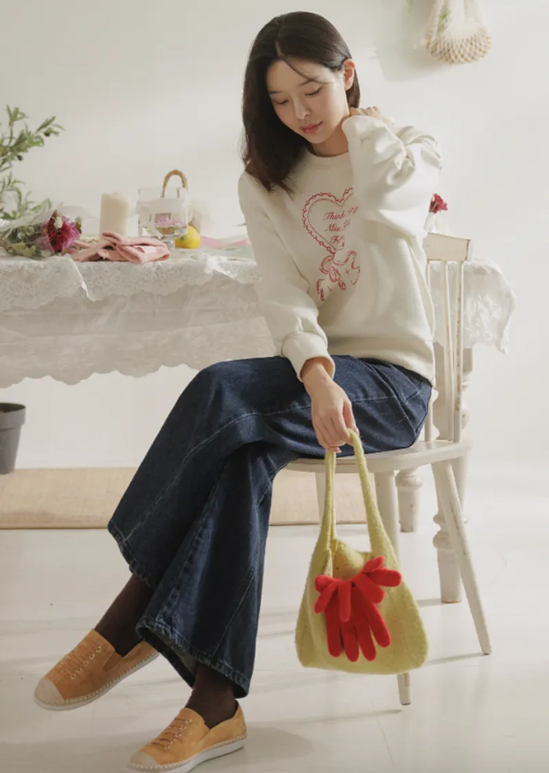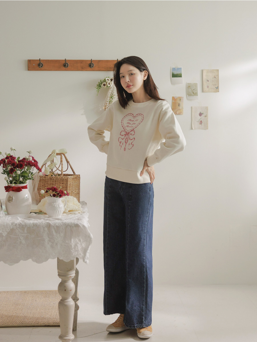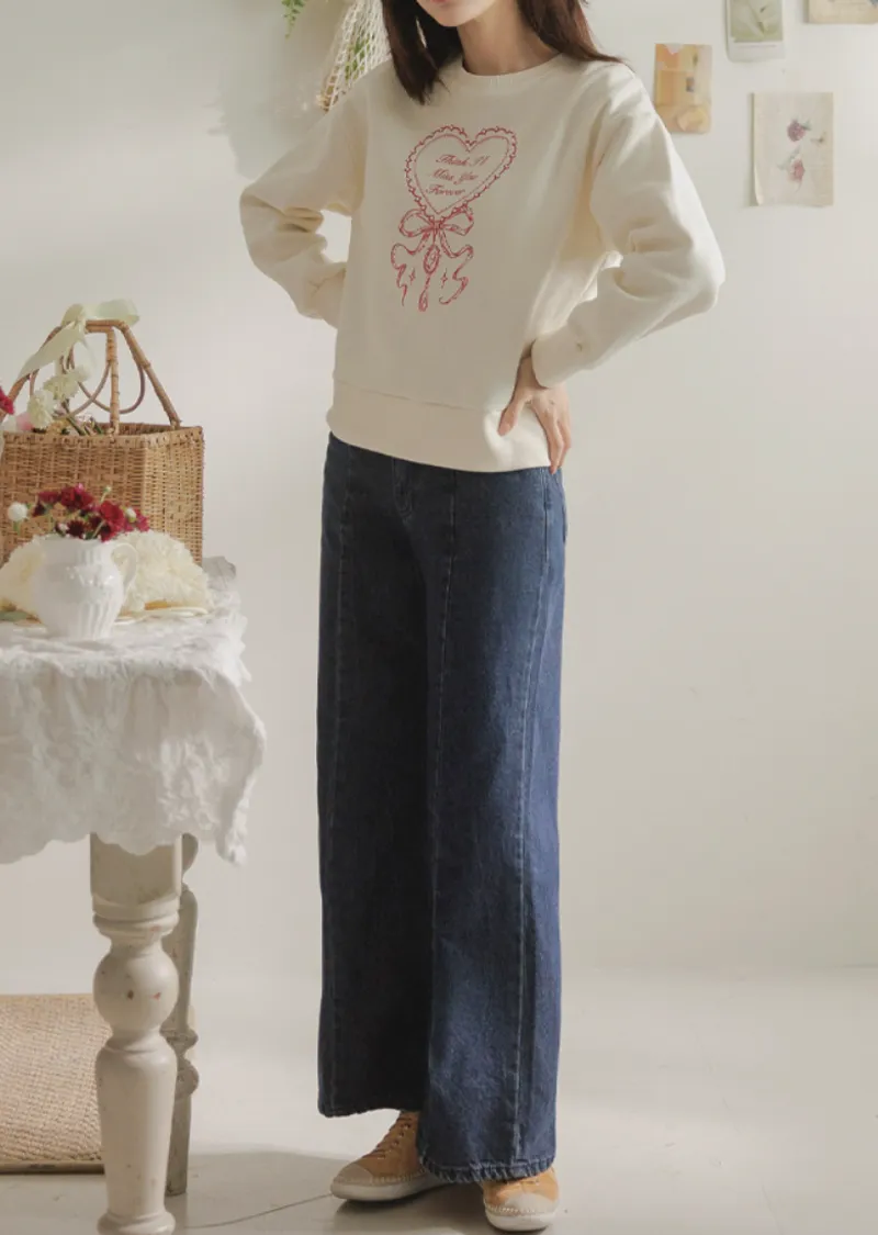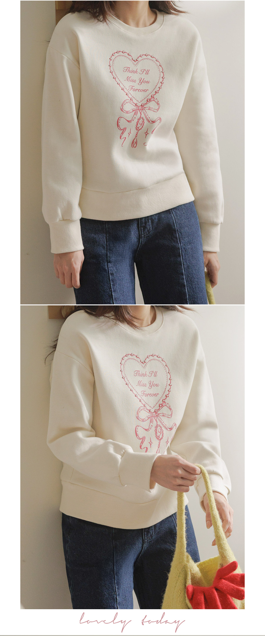 精緻心形緞帶印花點綴珍珠裝飾穿搭上衣