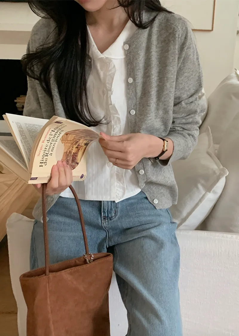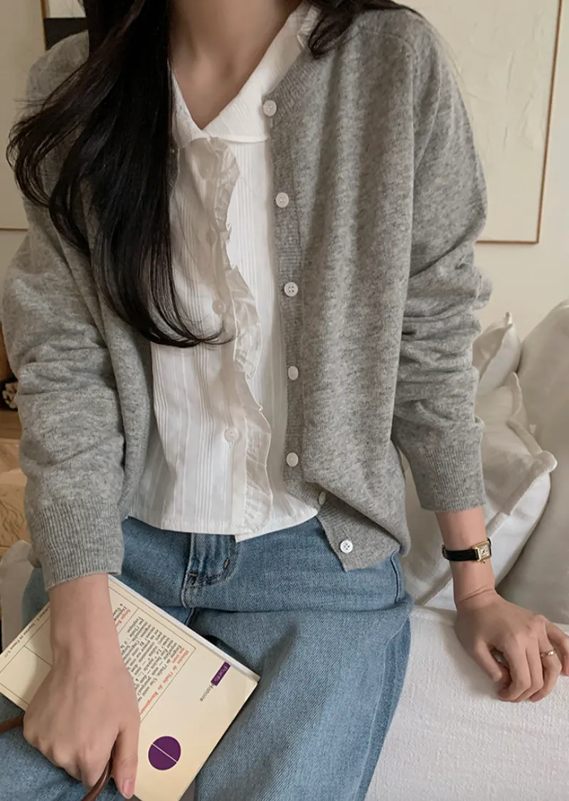 材質:55% 精紡羊毛 + 20% 尼龍 + 5% 羊絨。輕盈開襟衫