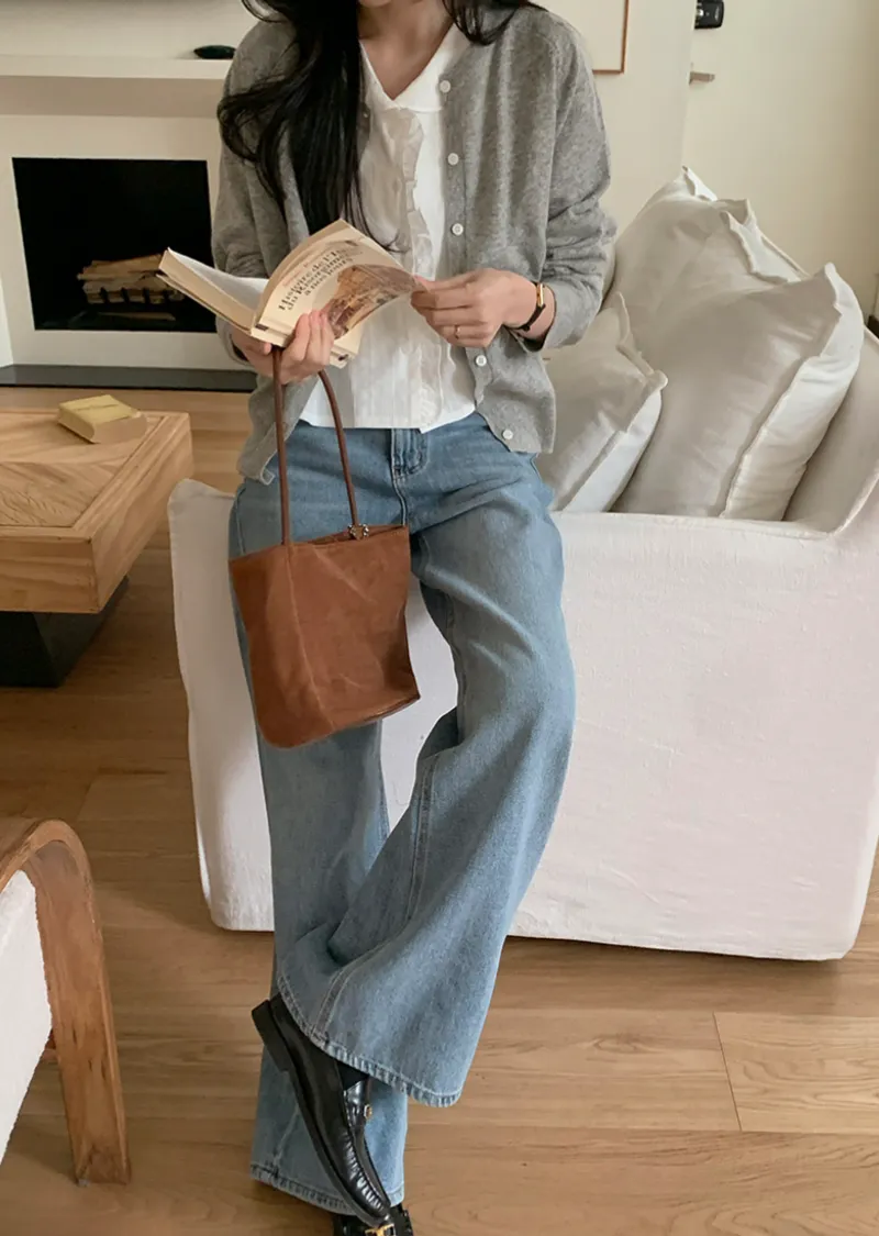 清新舒適百搭半寬靴型剪裁牛仔褲