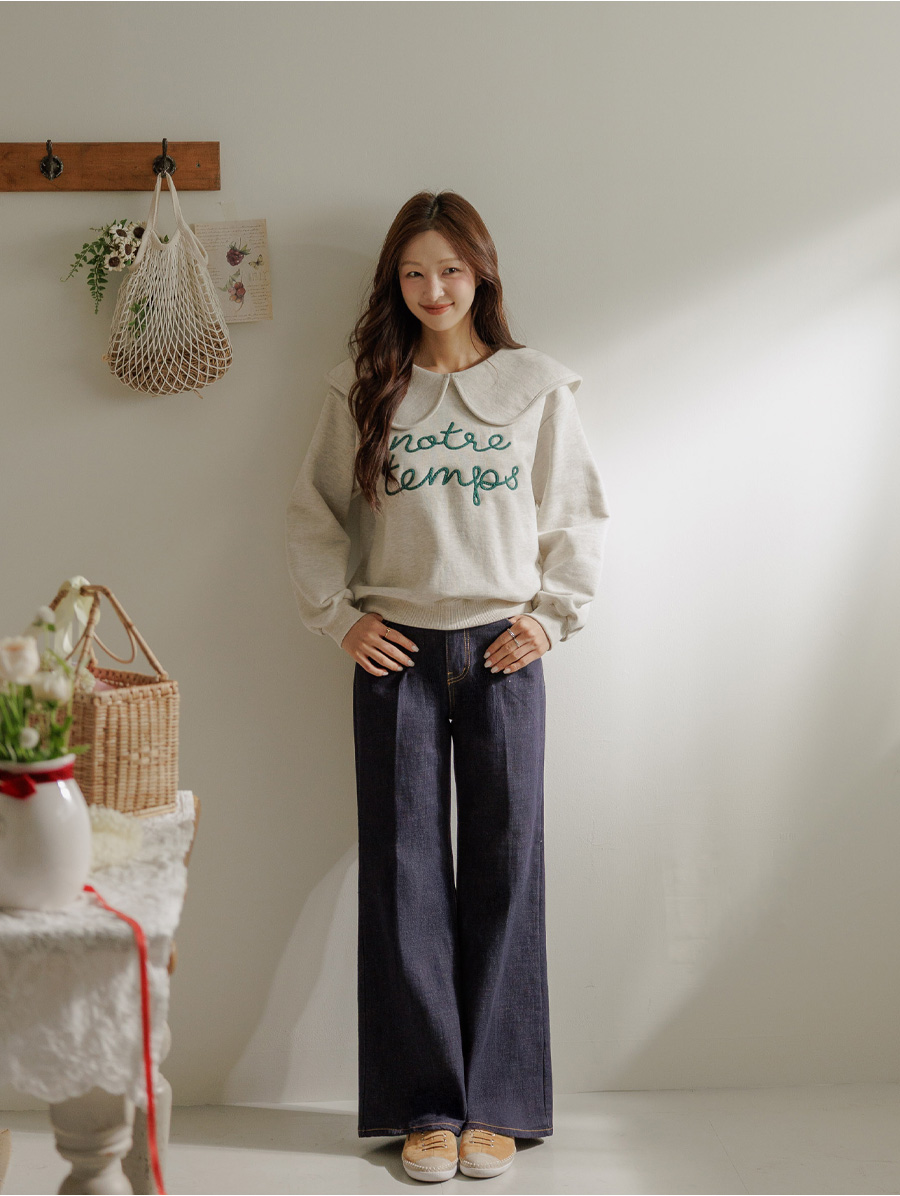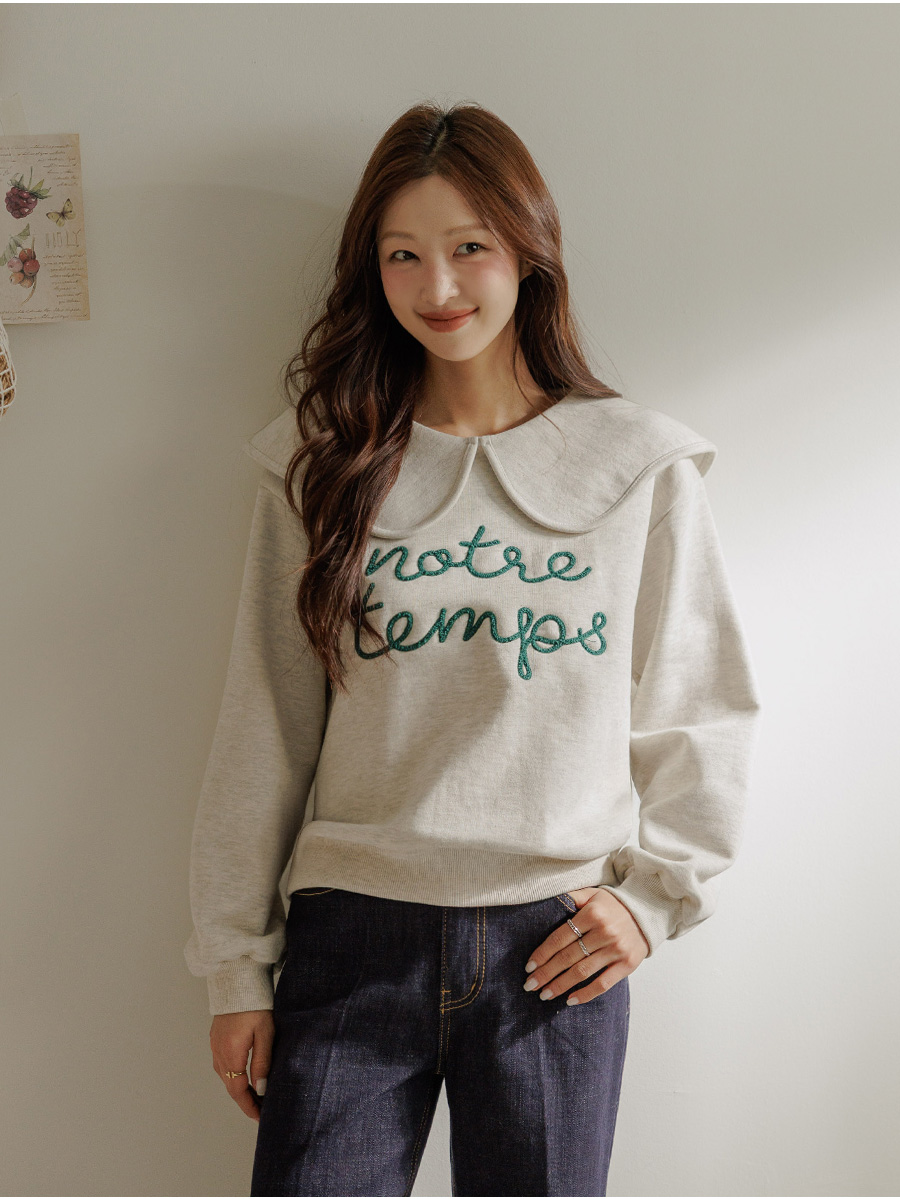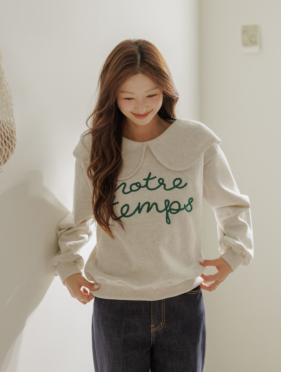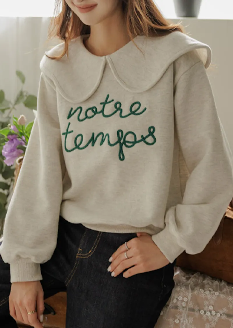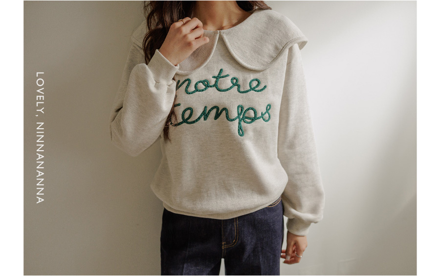 寬大水手領修飾線條字母刺繡穿搭上衣