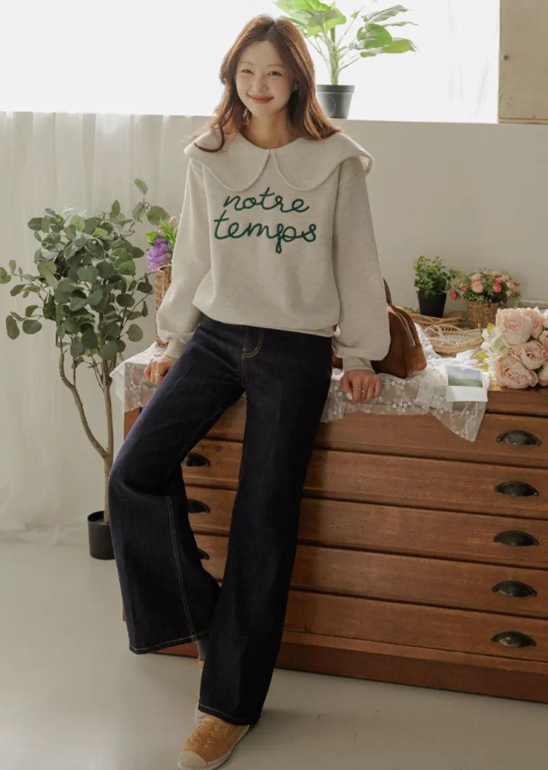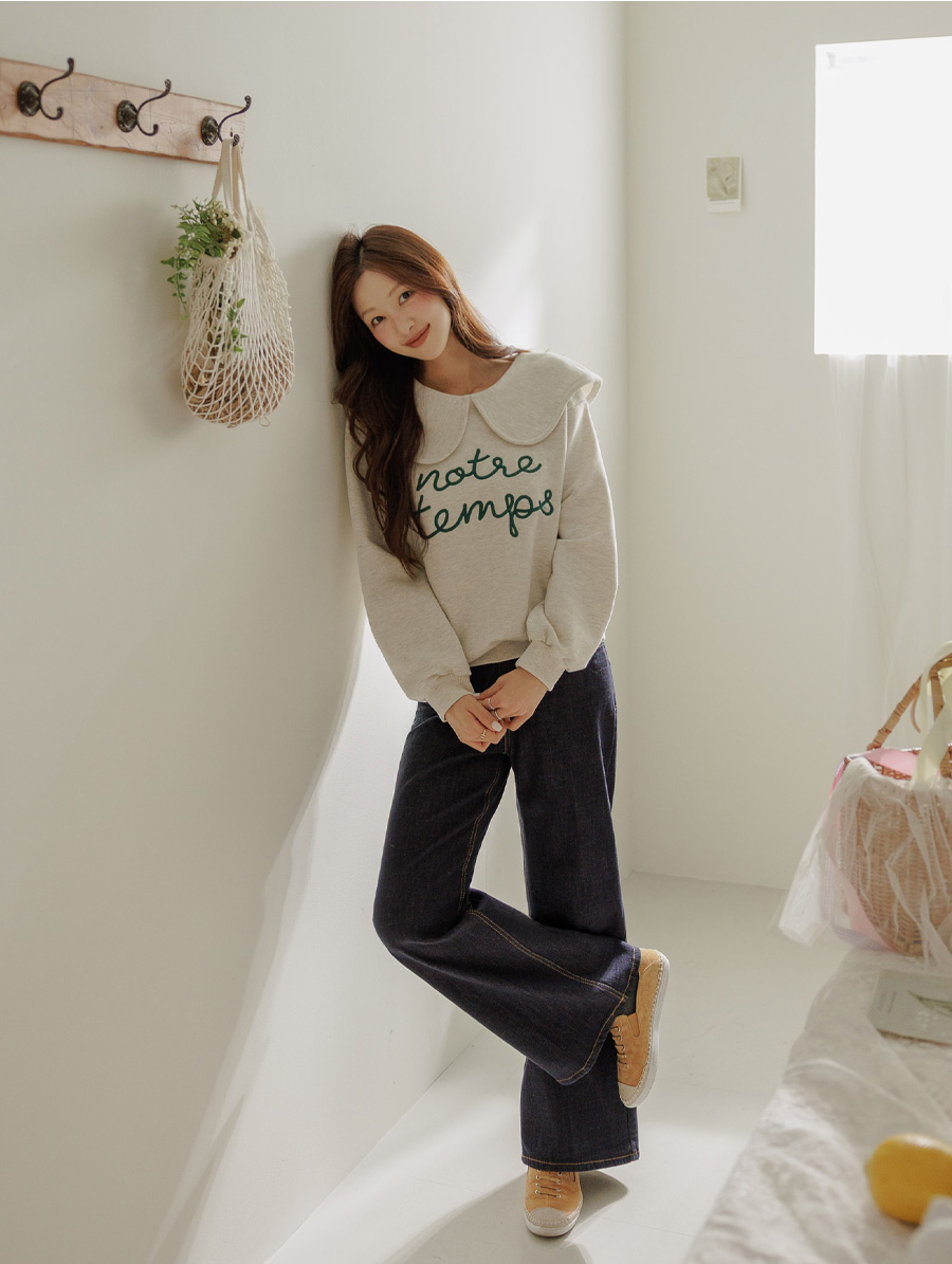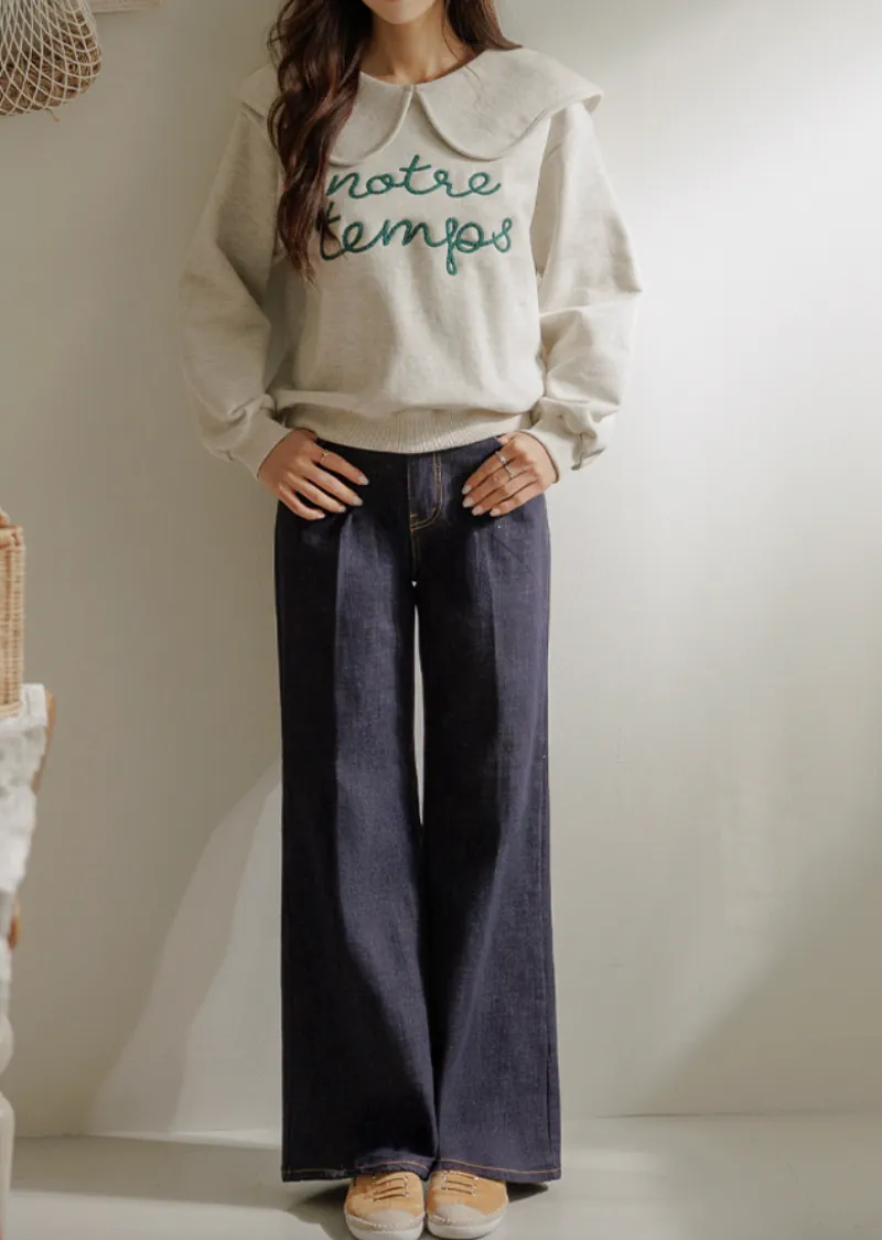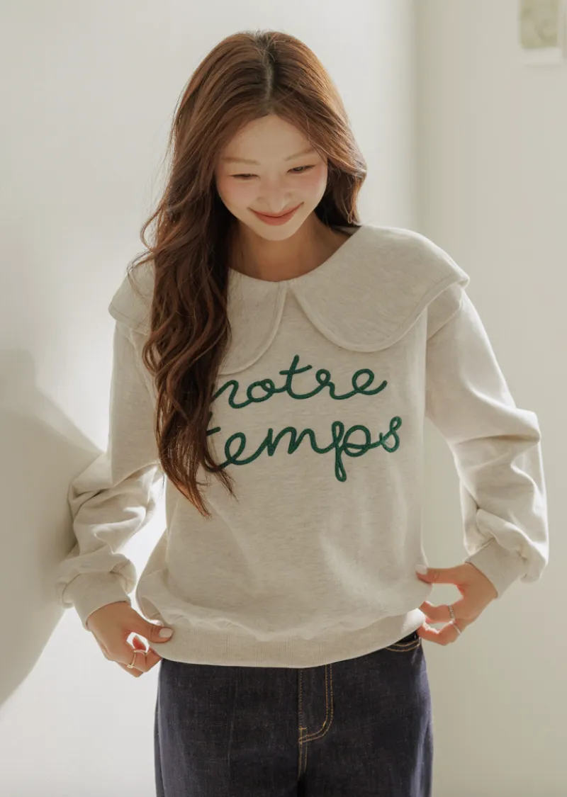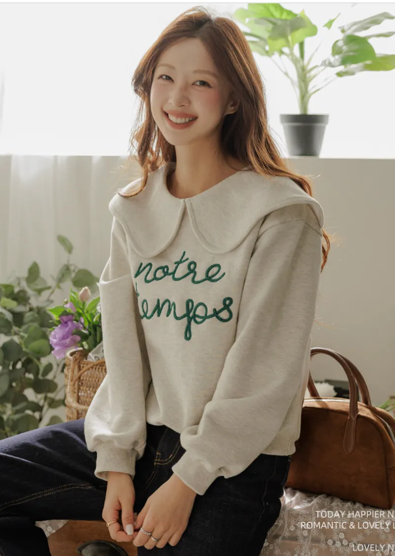 寬大水手領修飾線條字母刺繡穿搭上衣