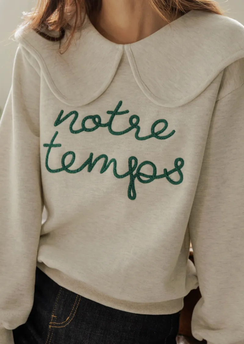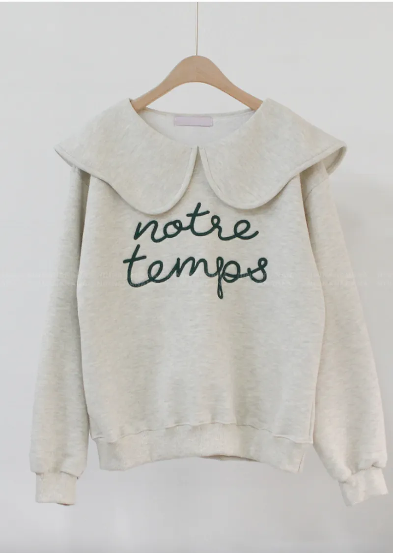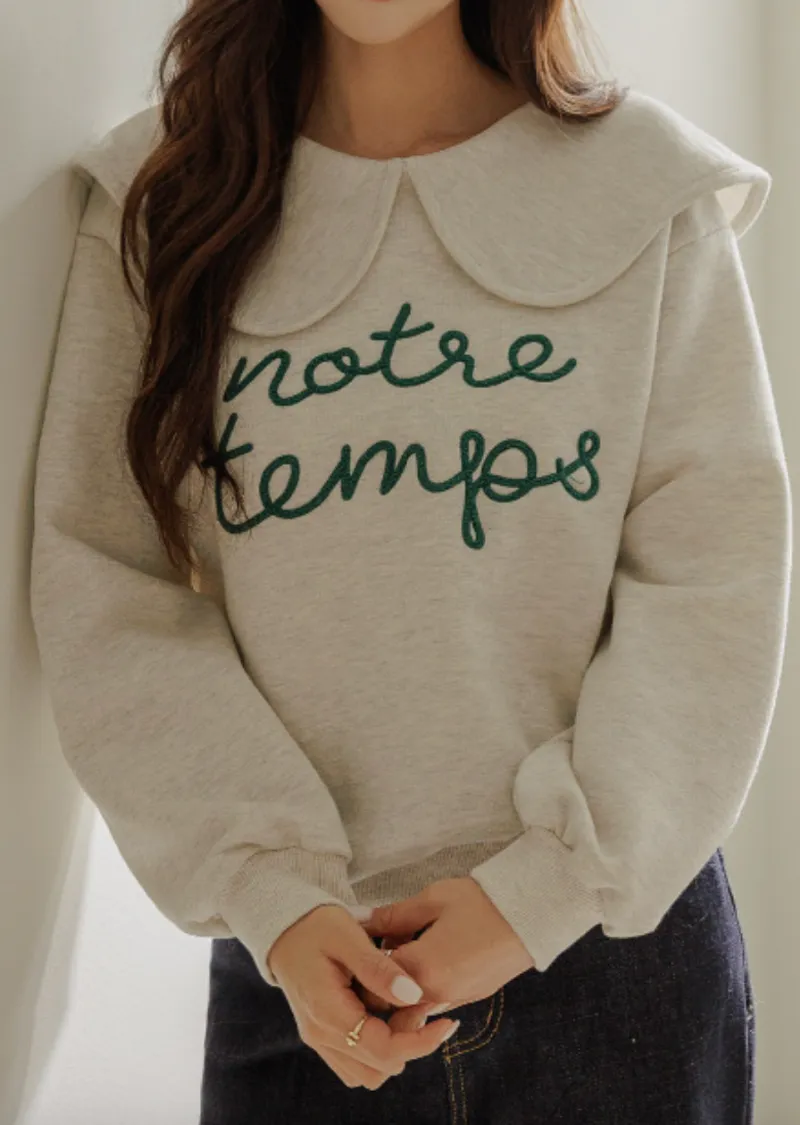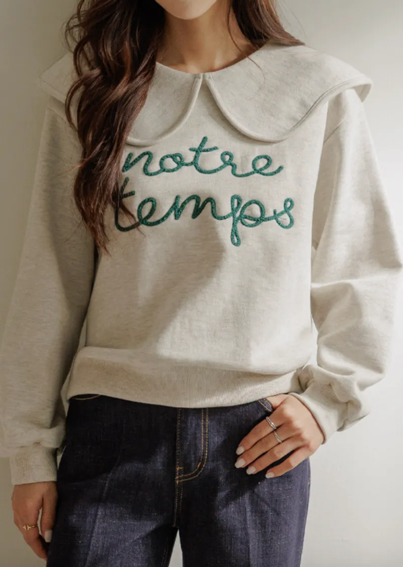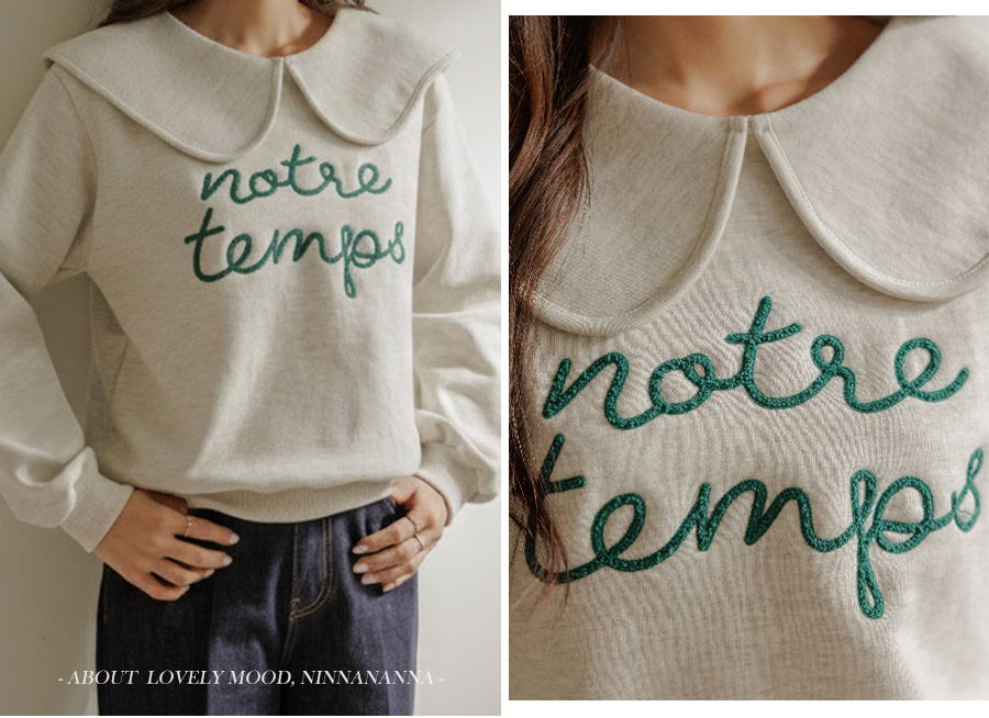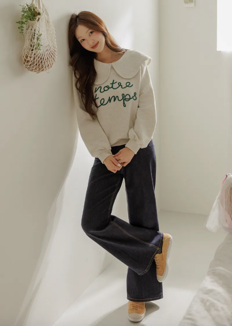 寬大水手領修飾線條字母刺繡穿搭上衣
