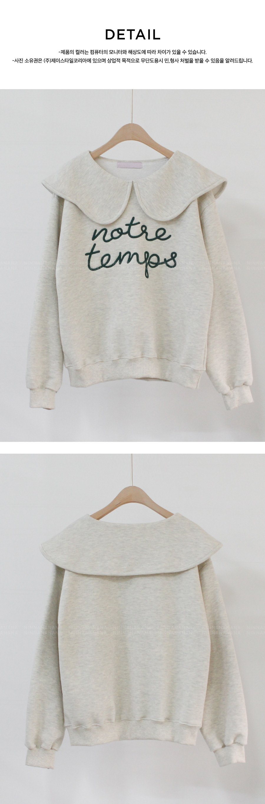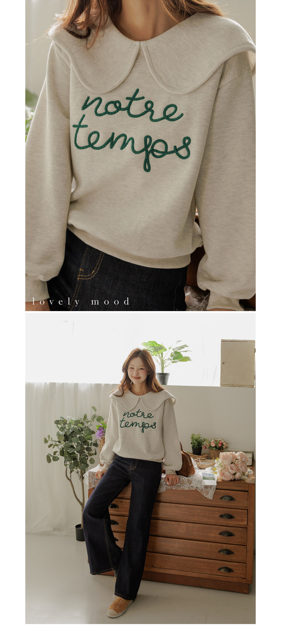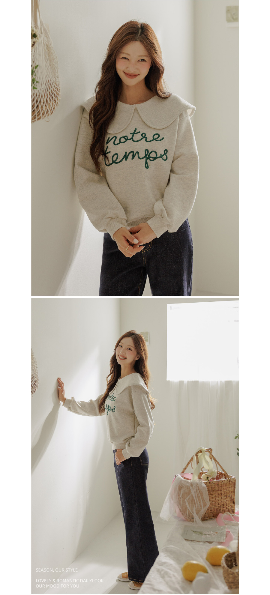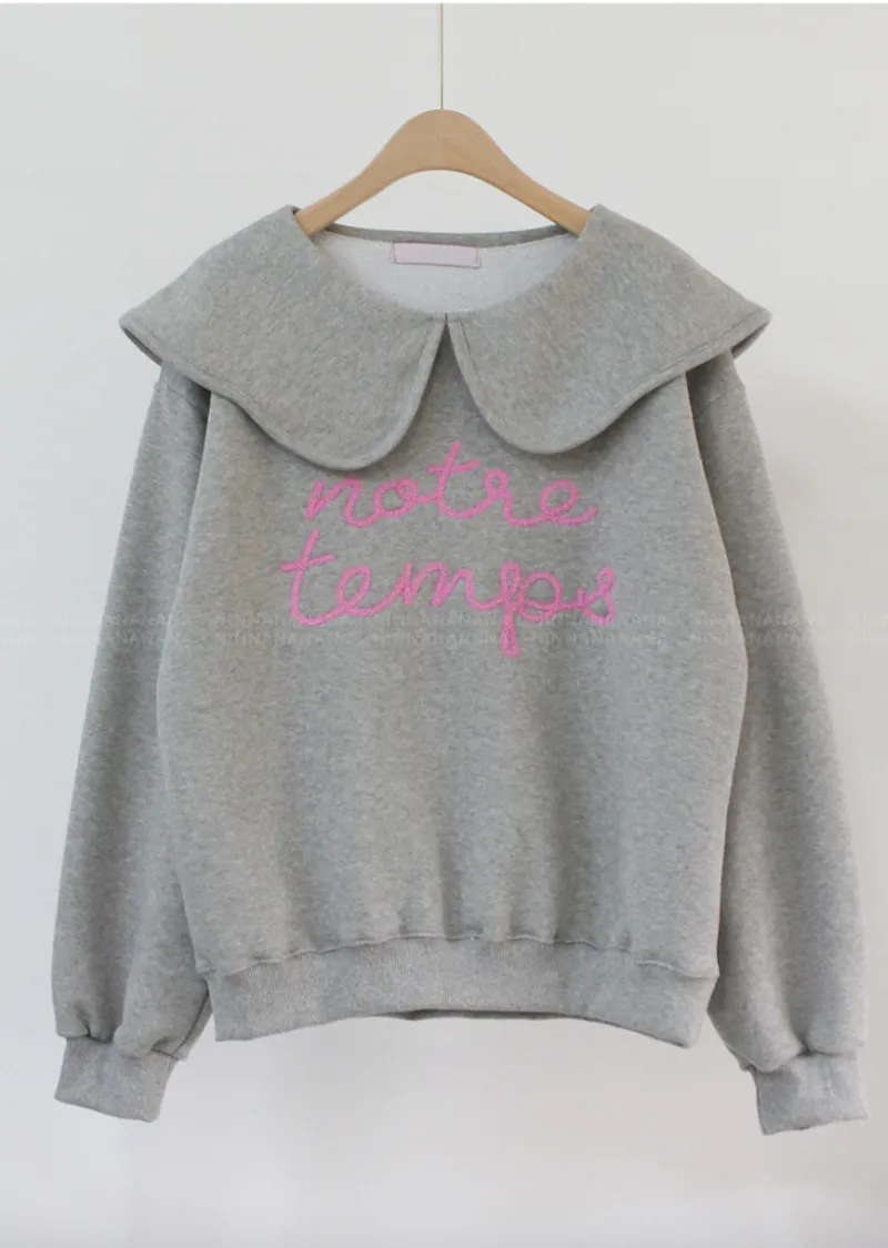 寬大水手領修飾線條字母刺繡穿搭上衣